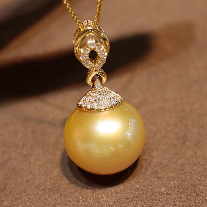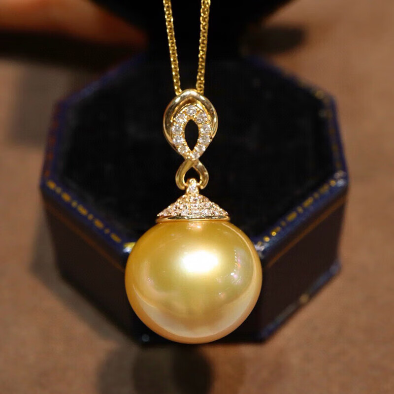 Zheng Xingya South Sea Gold Pearl Pendant Seawater Necklace Gold Diamond Temperament Clavicle Chain for Birthday Gift 16.2mm 6.2mm