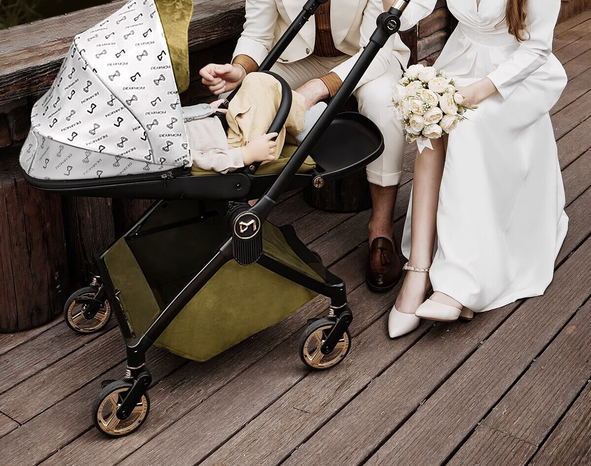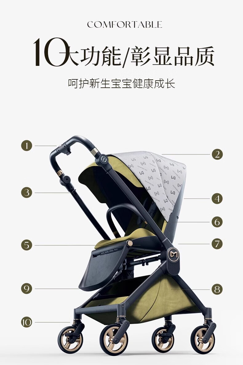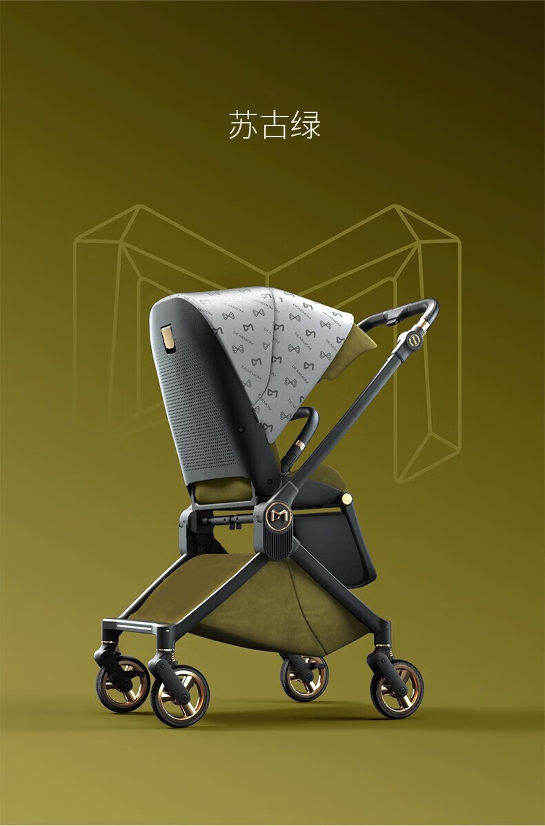 DearMom Ximojinger Lightweight Two-way High View Stroller Stroller Can Sit and Lie Folding Sugu Green Beanie Blanket + Ice Mat + Mosquito Net