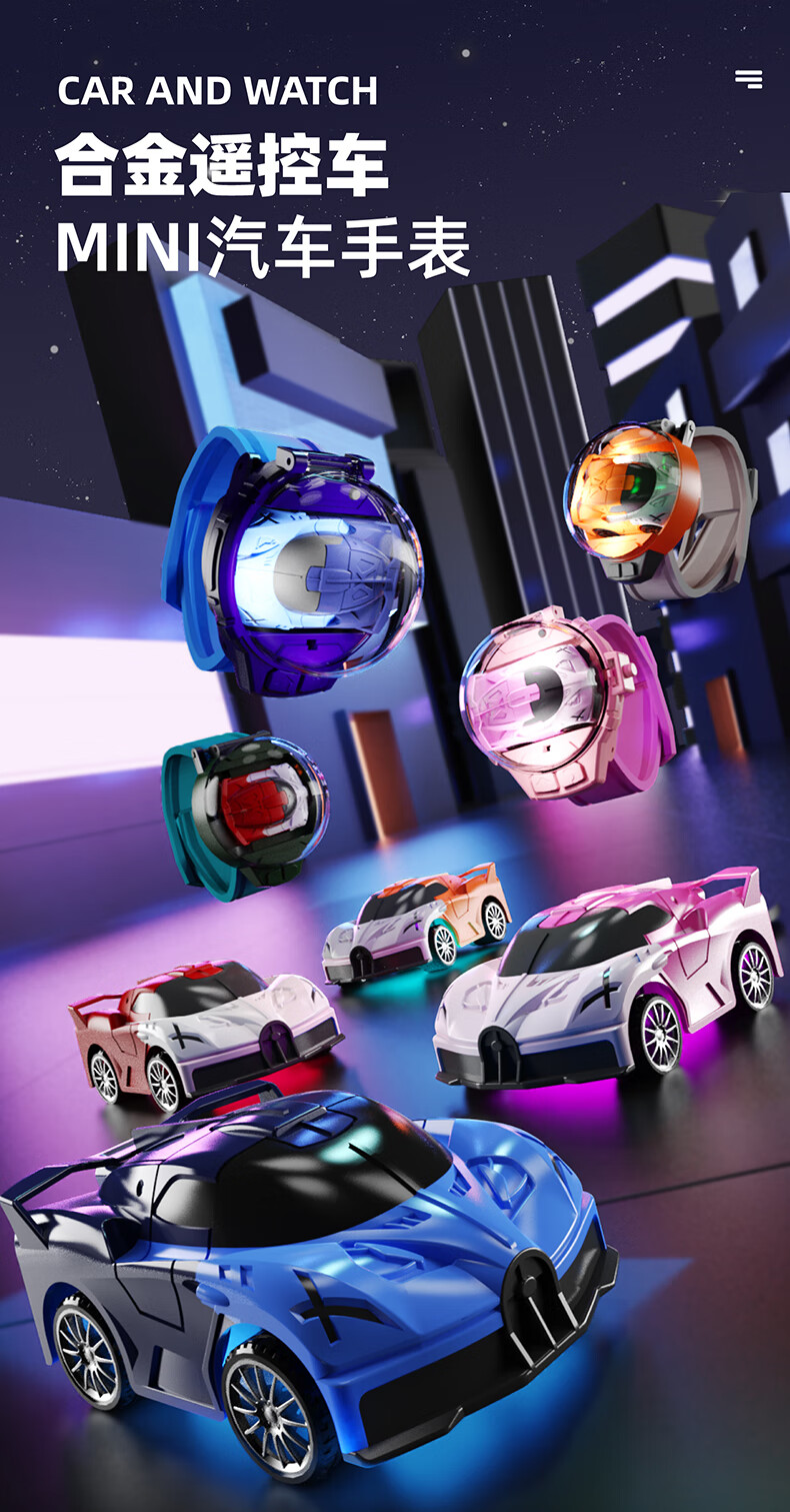 Shantou Lincun Black Technology Watch Remote Control Car Mini Alloy Racing Birthday Gift Boy Electric Children's Toy Car 5.5G Alloy_Cartoon Blue Mustang with a battery life of 6-8 hours