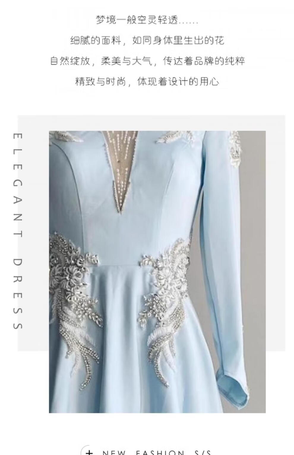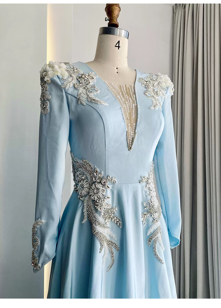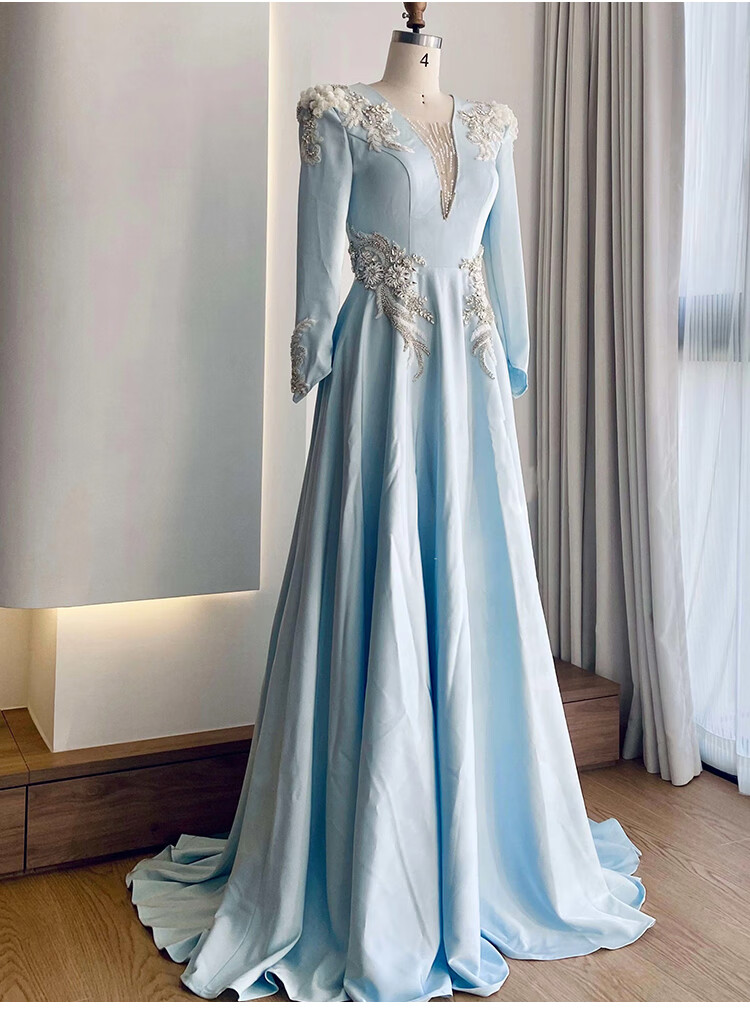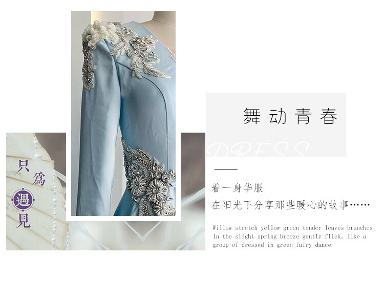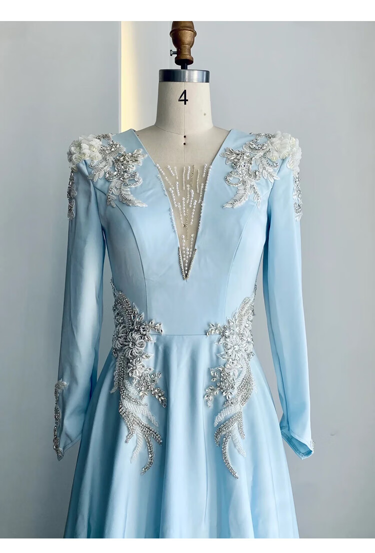 High-end host performance evening dress female dignified atmosphere evening party chorus guzheng long skirt vocal music test dress light blue 2XL
