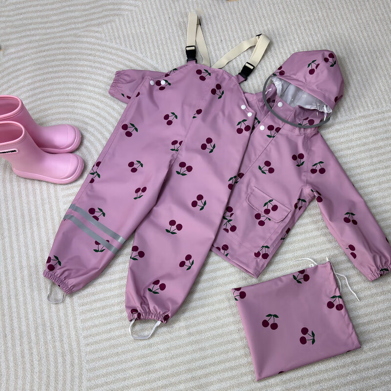 Children's raincoat kindergarten 36 years old 2024 split children's raincoat male and female baby waterproof overalls raincoat small Cherry S