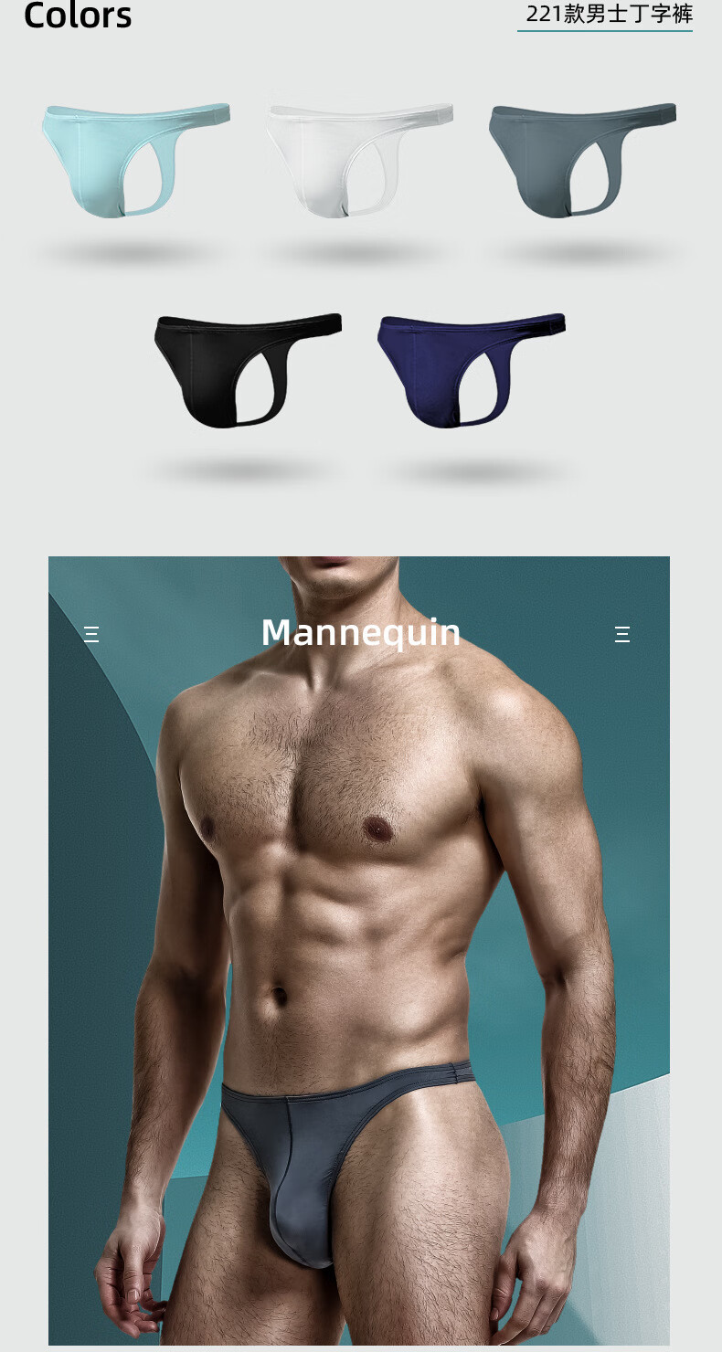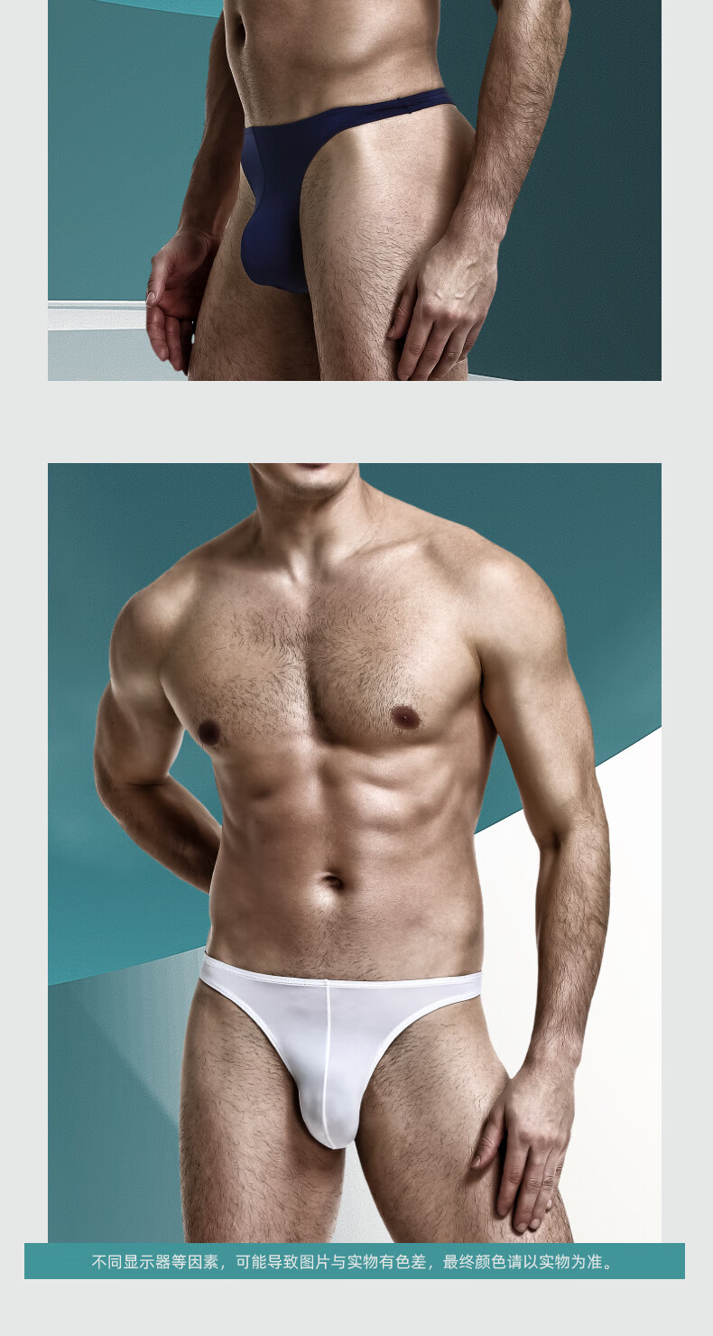 Men's thong low waist U convex elastic tight summer sexy T underwear for men ice silk cool breathable T pants sports black L