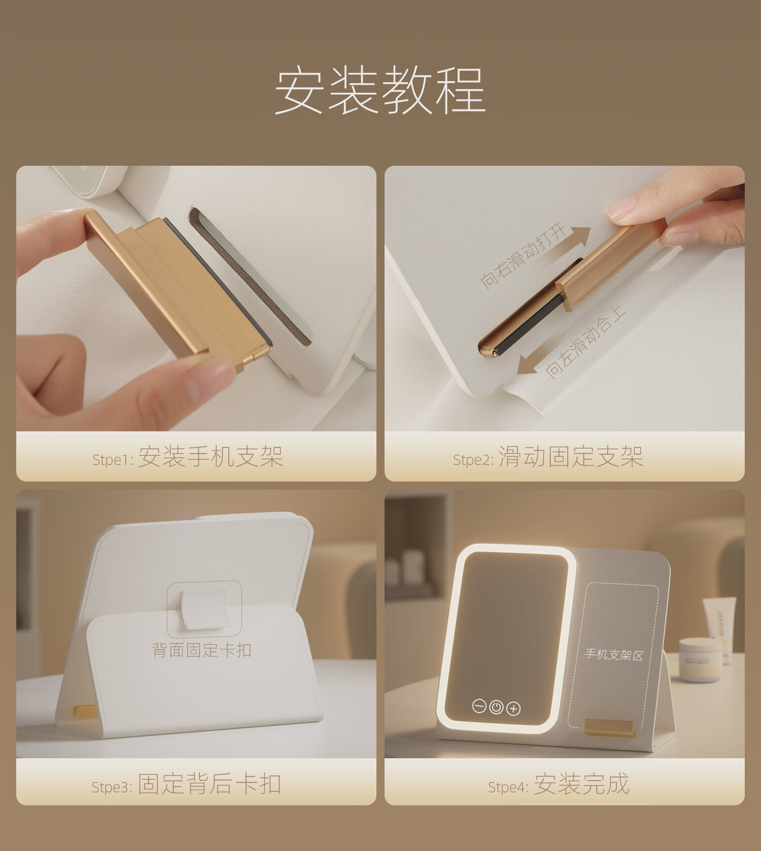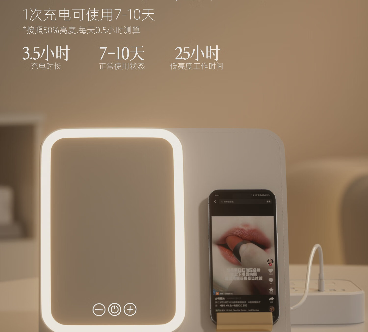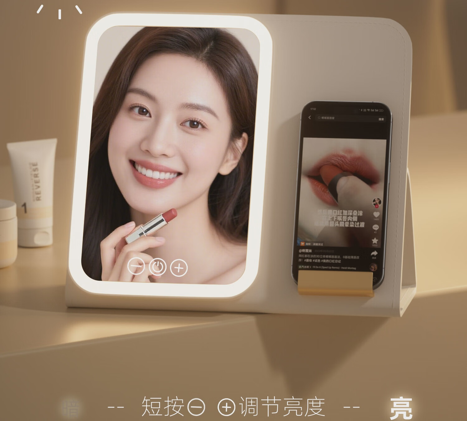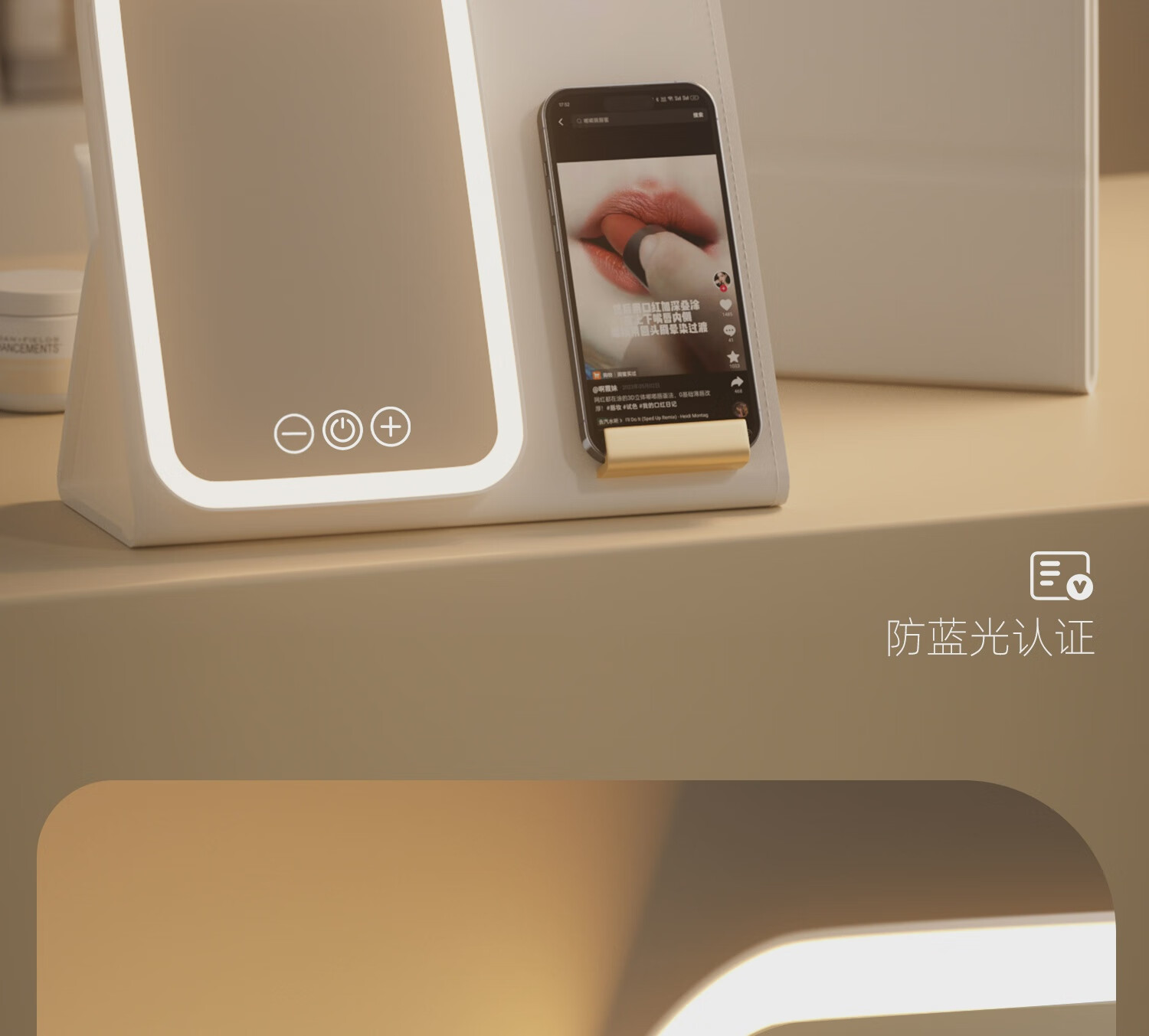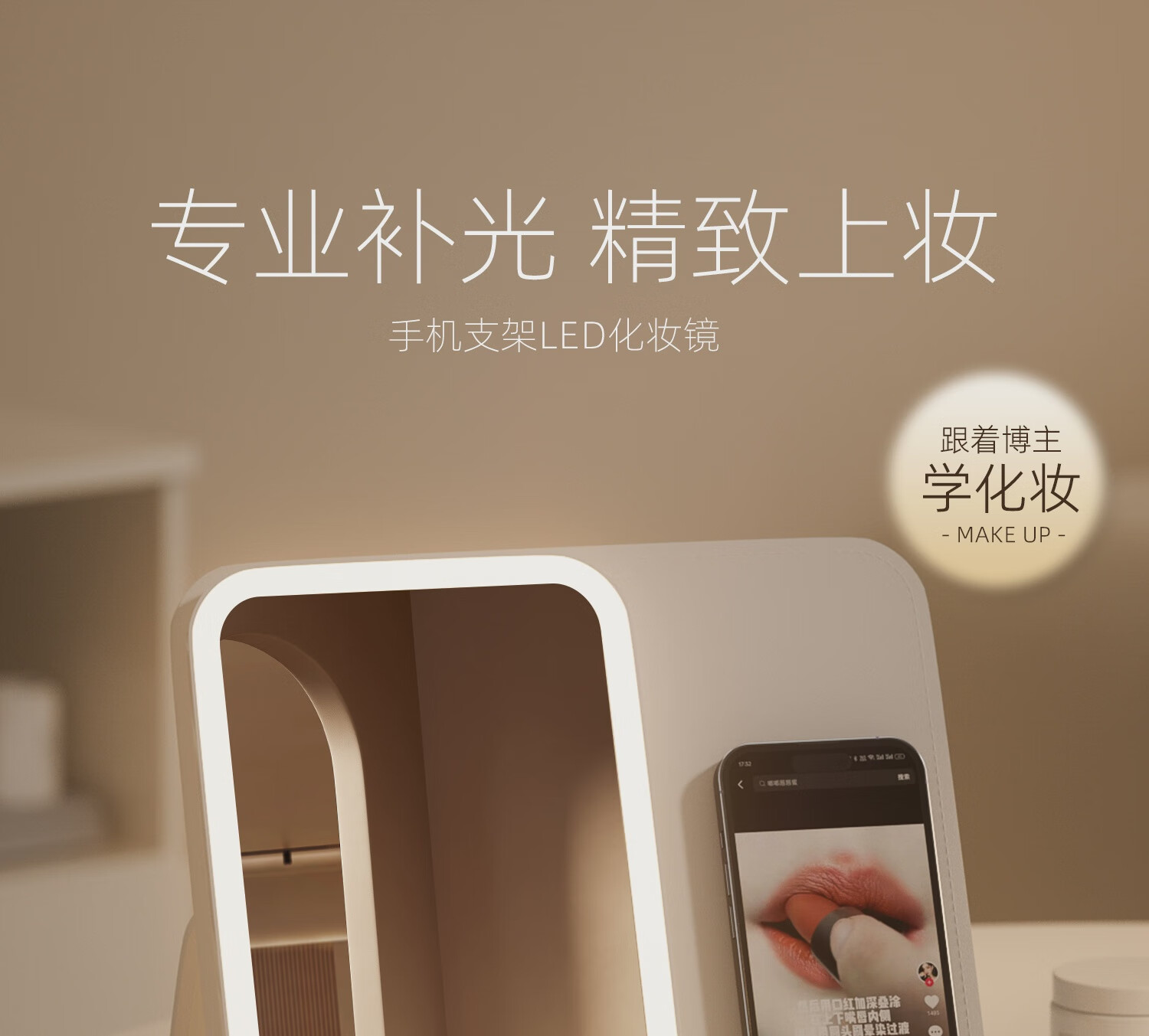 Mirror makeup mirror LED with light portable folding desktop desktop student dormitory home travel white large size three-button control folding portable -4800AH