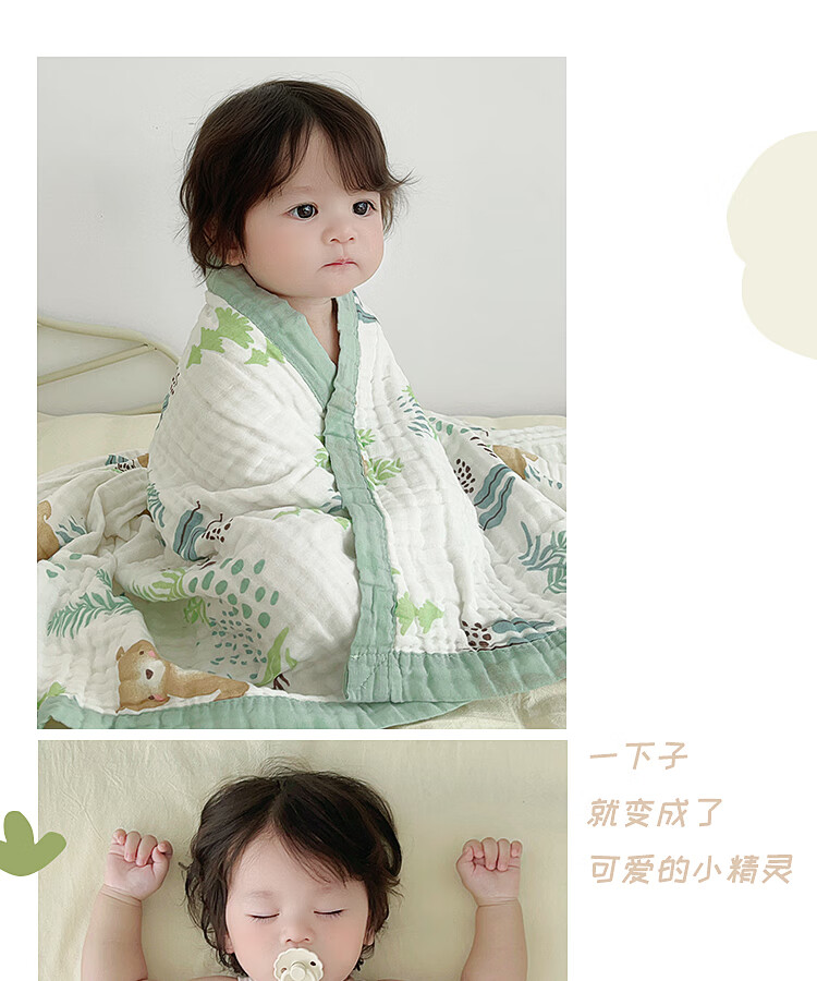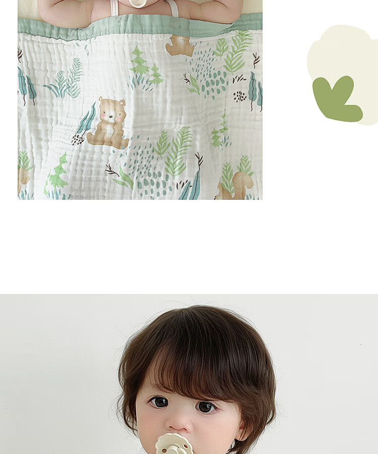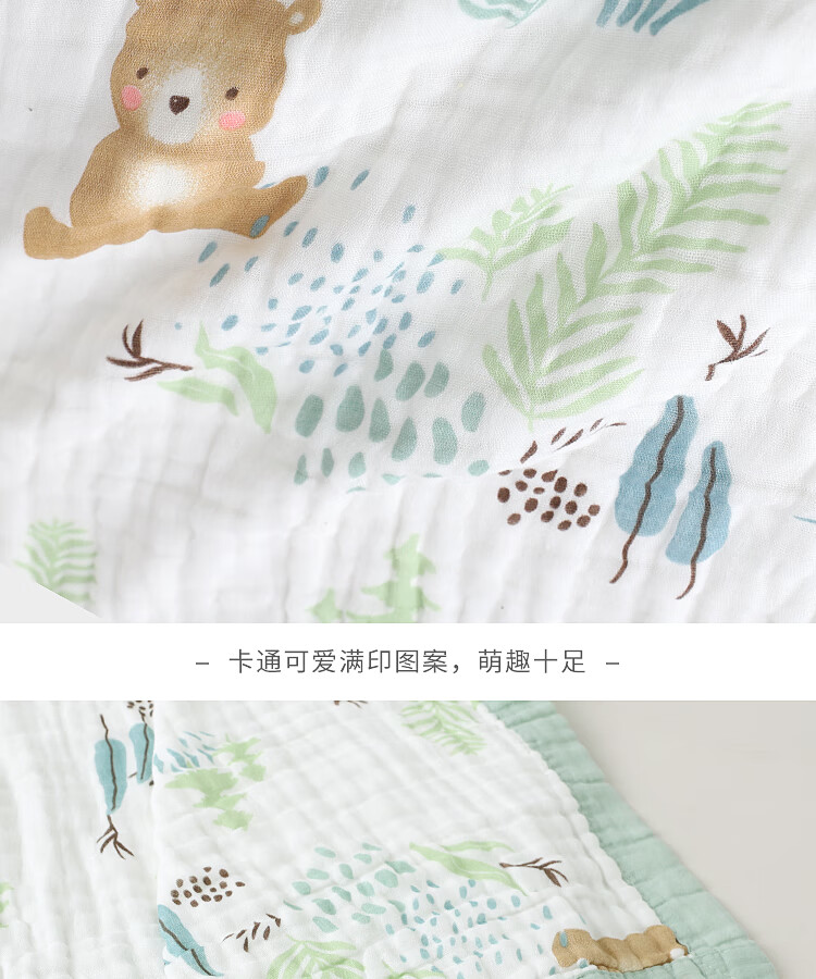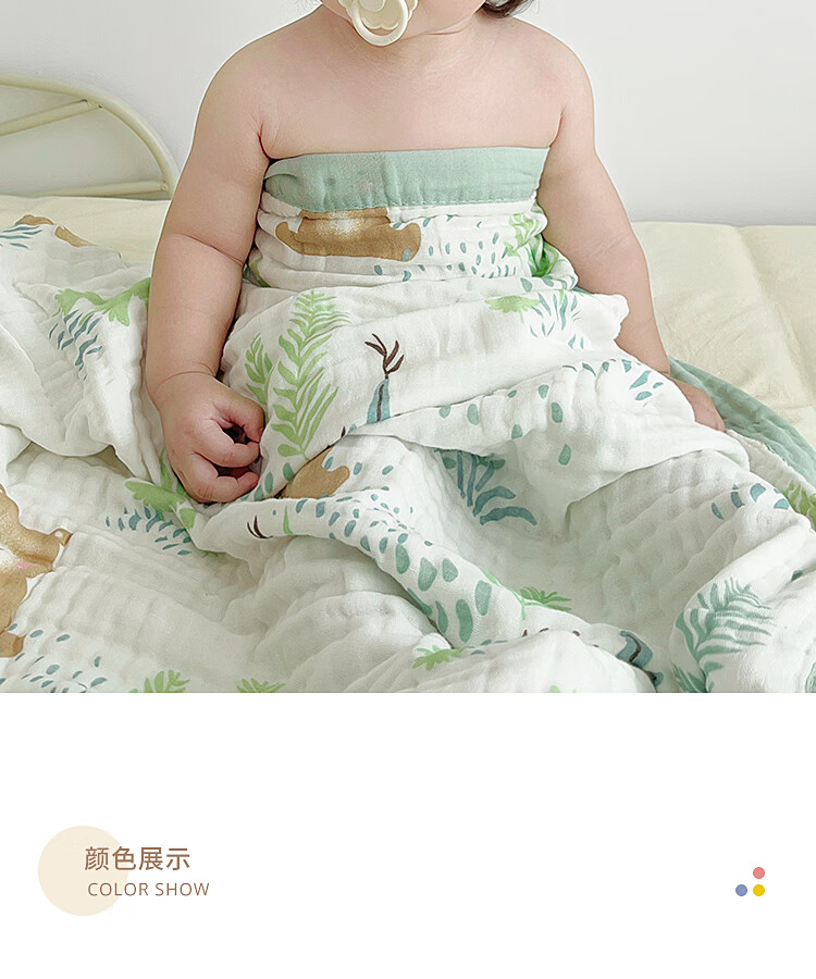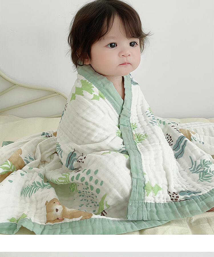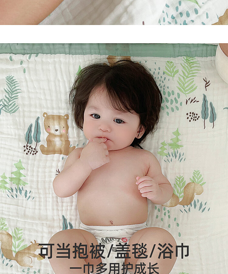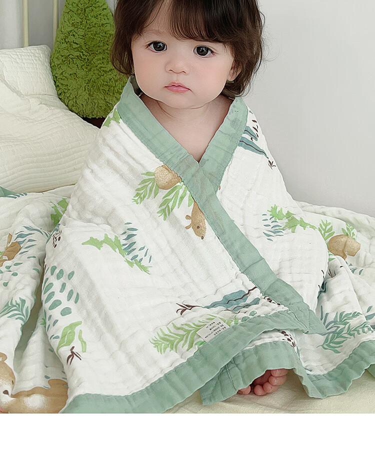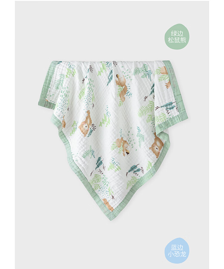 Qile Bean Baby Gauze Bathrobe Pure Cotton Throw Blanket Baby Newborn Bath Towel Large Size Bath Absorbent Cotton Quick-drying No Shedding Green Edge Squirrel Bear No Specifications