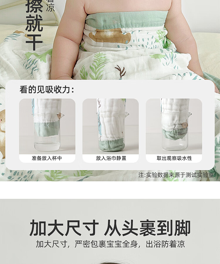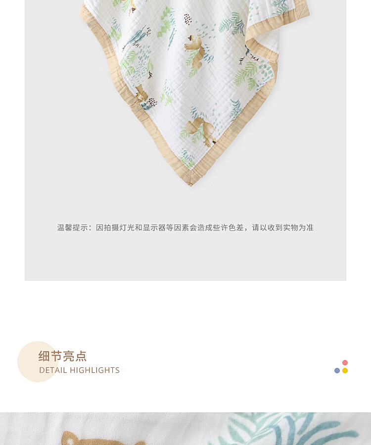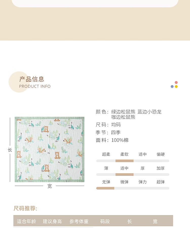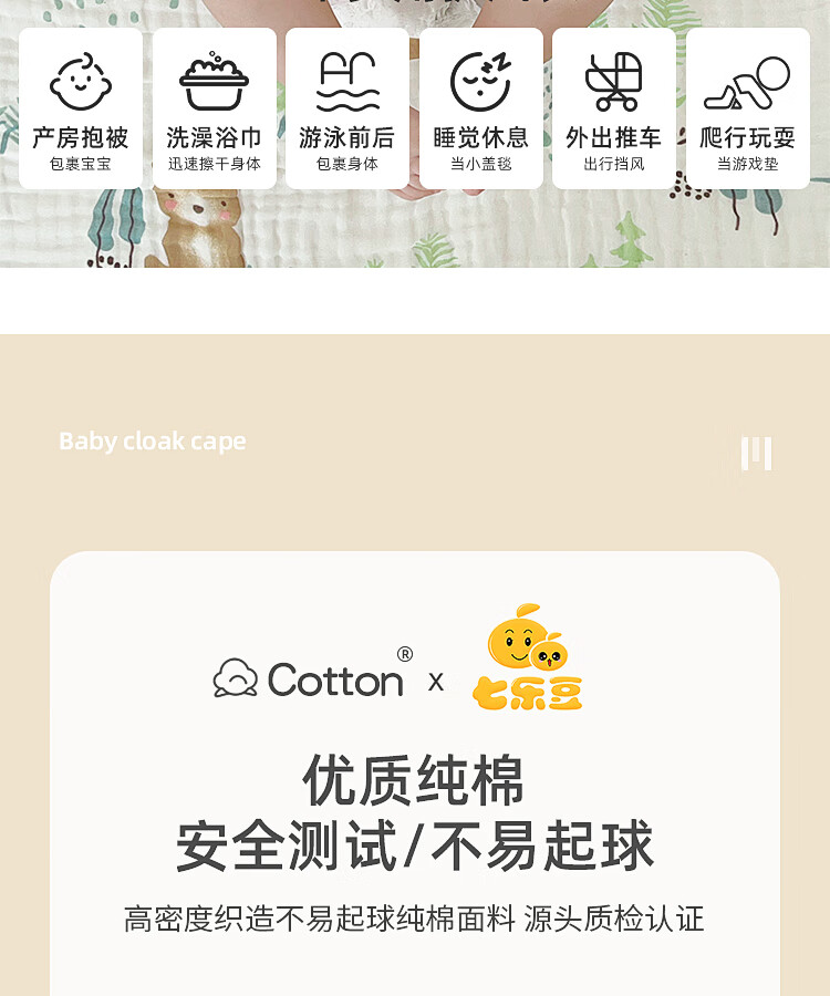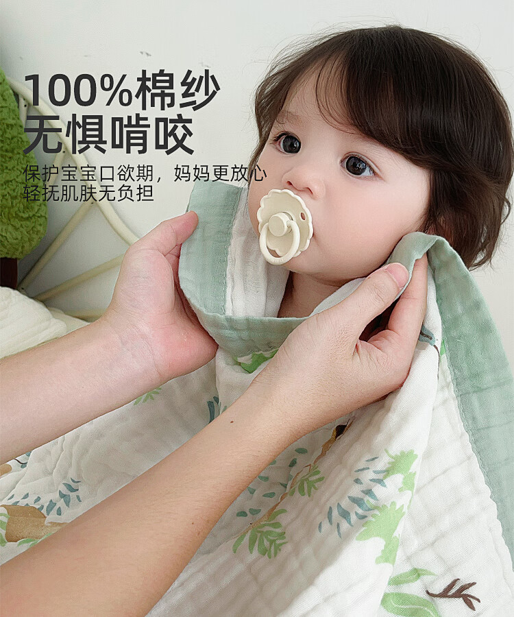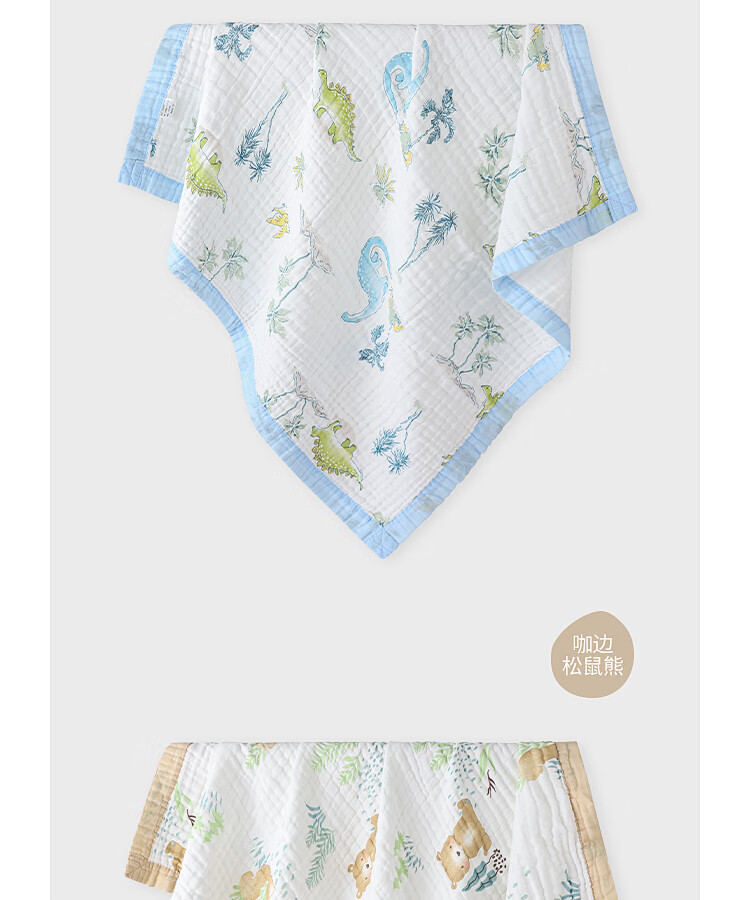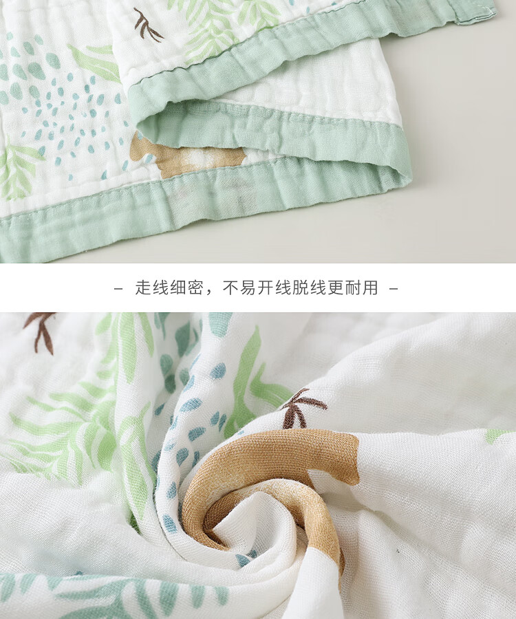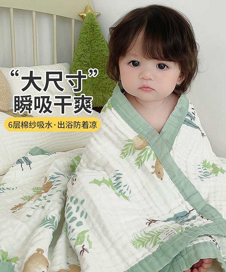 Qile Bean Baby Gauze Bathrobe Pure Cotton Throw Blanket Baby Newborn Bath Towel Large Size Bath Absorbent Cotton Quick-drying No Shedding Green Edge Squirrel Bear No Specifications