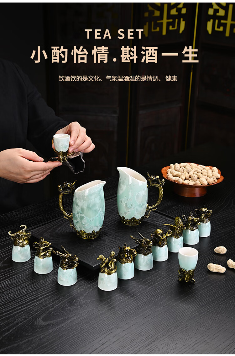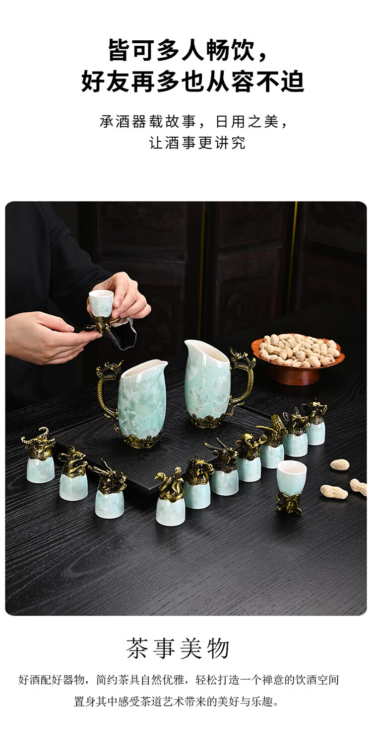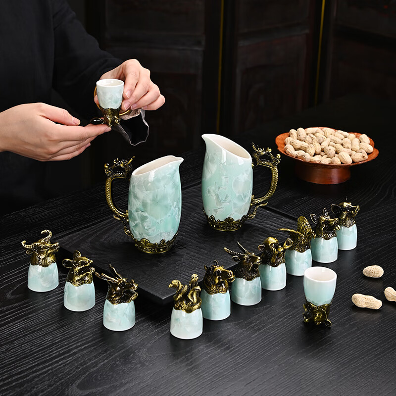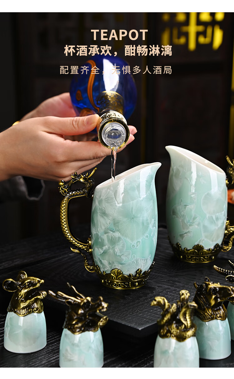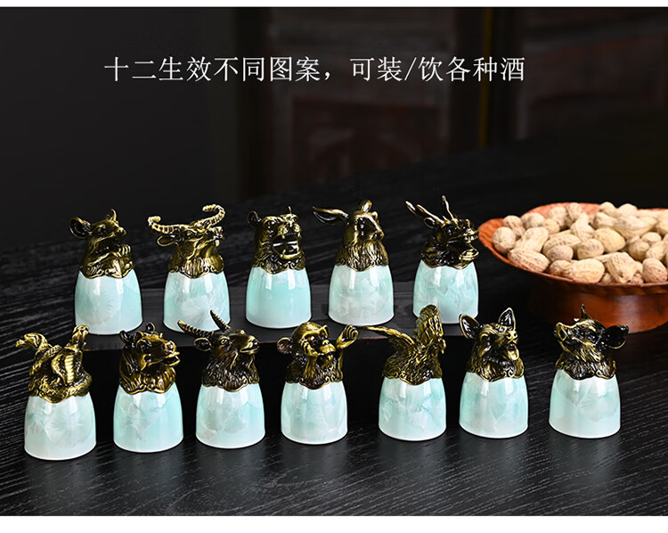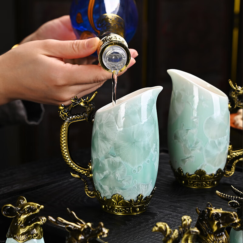 Creative zodiac gilt cup, household spirit cup, white wine, small wine glass, wine set, high-end business gift, zodiac cyan crystal glaze--complete gift box