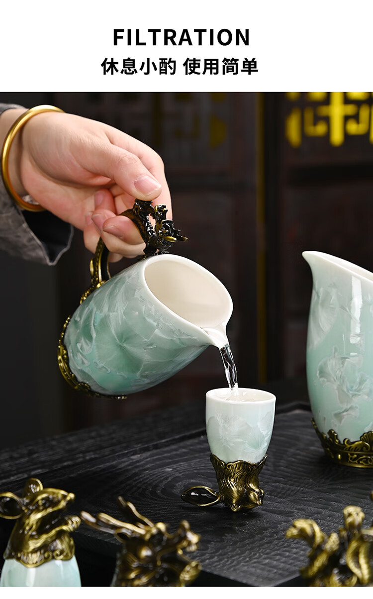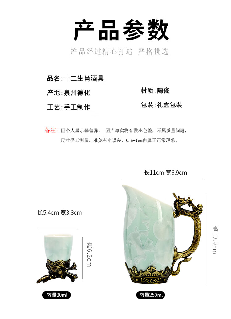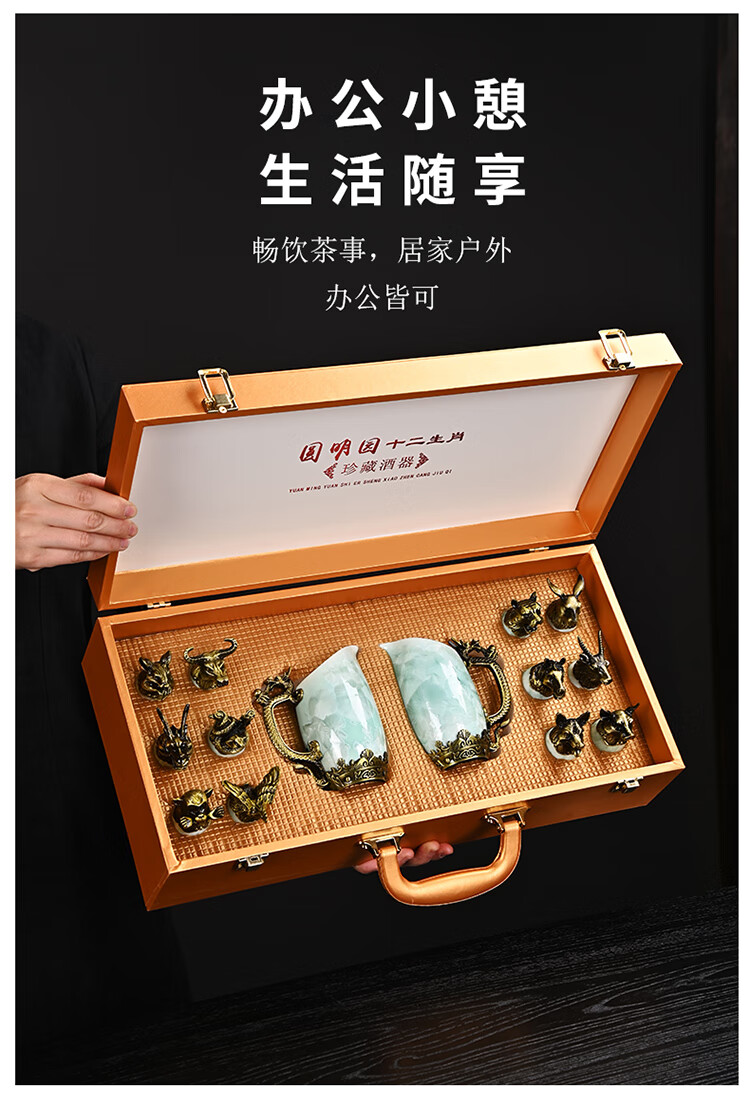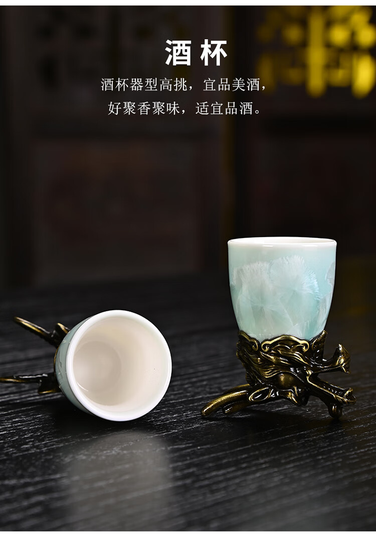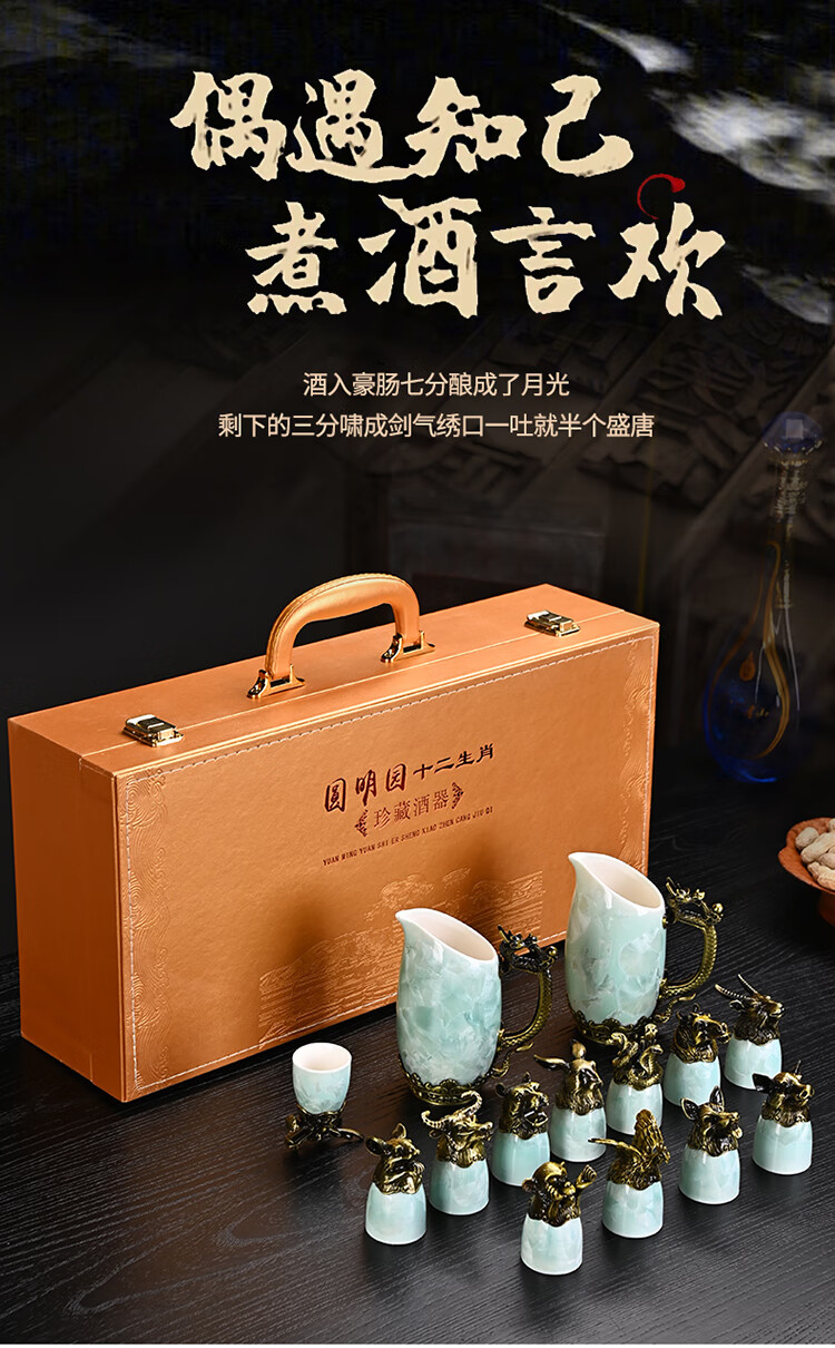 Creative zodiac gilt cup, household spirit cup, white wine, small wine glass, wine set, high-end business gift, zodiac cyan crystal glaze--complete gift box