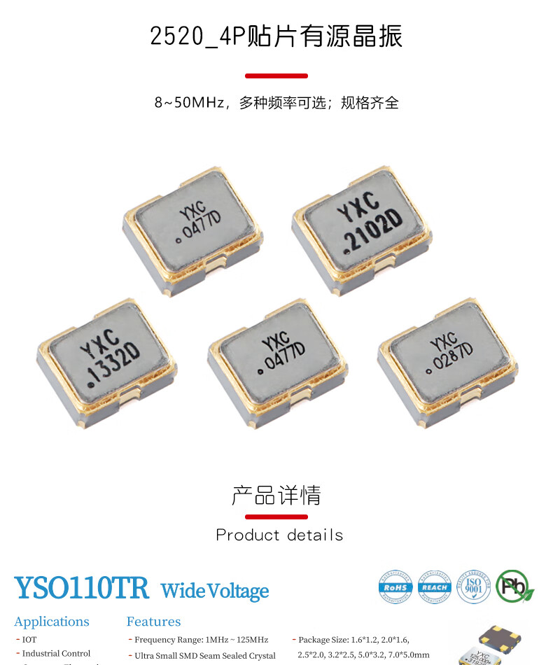 YourCee2520_4P SMD active crystal oscillator series 8/12/16/20/24/25/26/27/30/40/48/50MHz 12MHz No Specifications