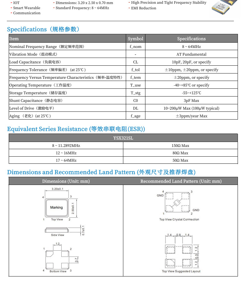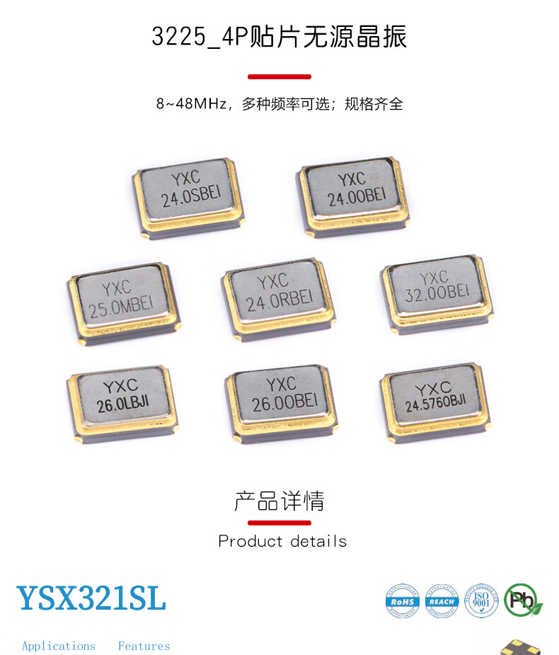 YourCee3225_4P SMD passive crystal oscillator series 8/12/13.56/16/20/24/25/26/32/40MHz 8MHz 10ppm 12pF No Specifications