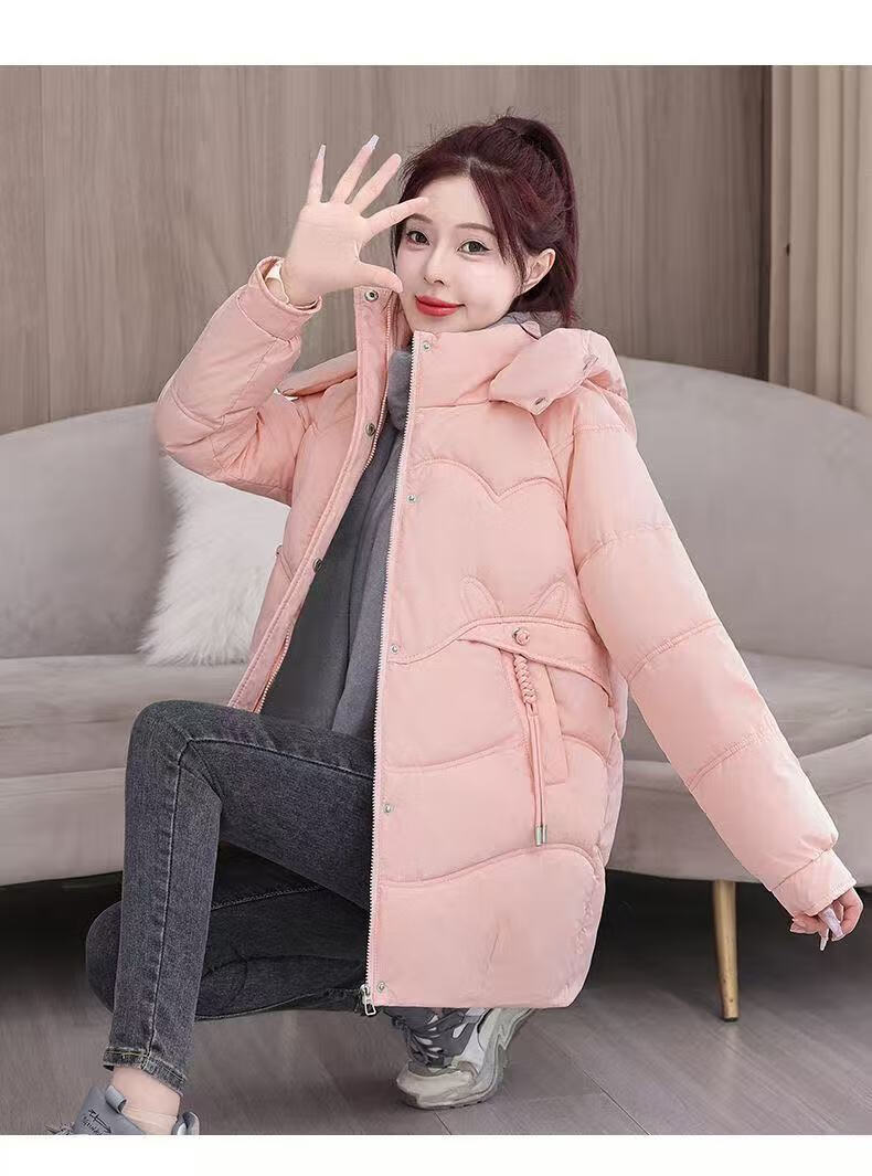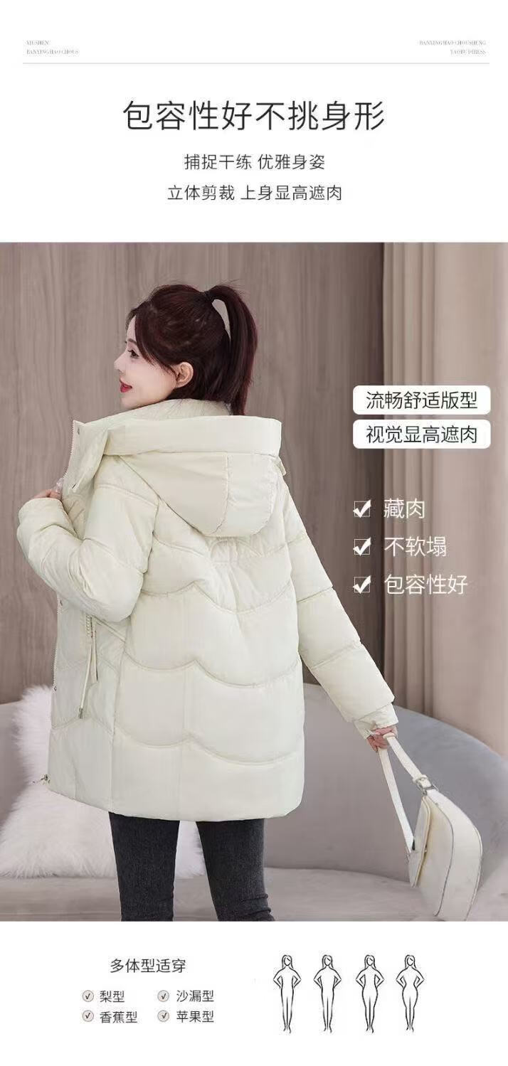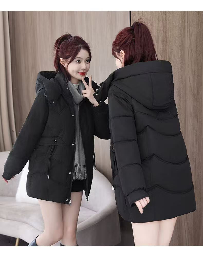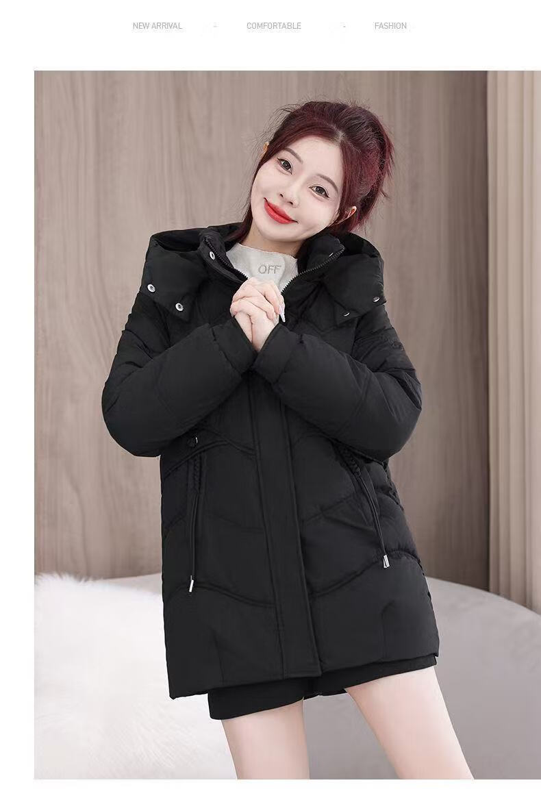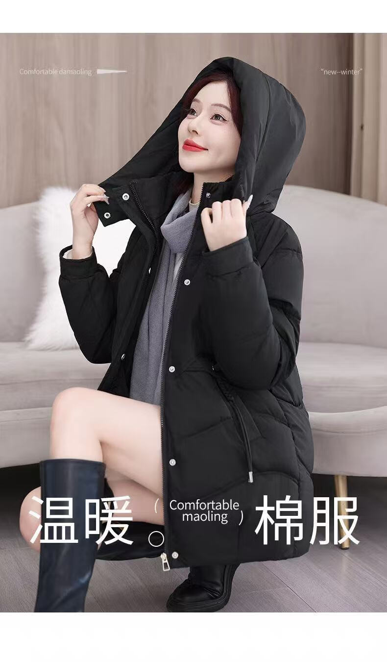 2025 new cotton-padded jacket, super good-looking, thickened cotton-padded jacket, Korean version, light and not bulky, down cotton mid-length winter jacket, black XL 115-130Jin Jin is equal to 0.5 kg