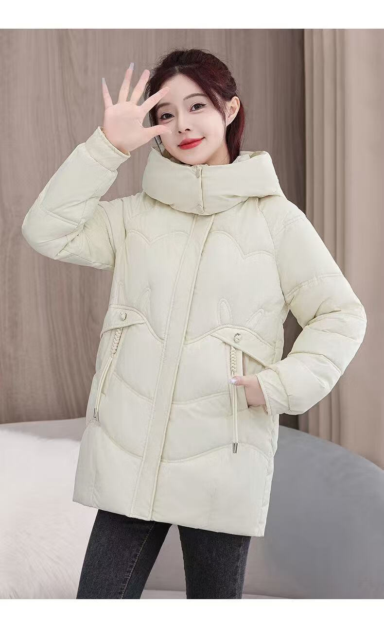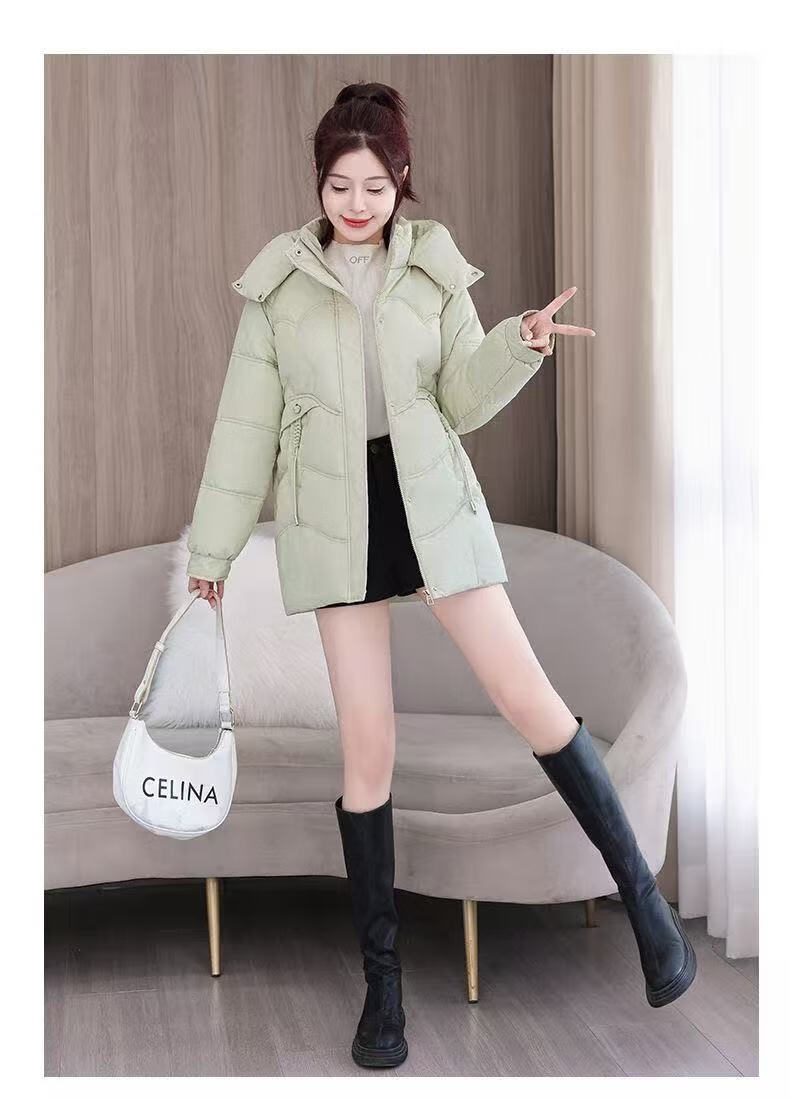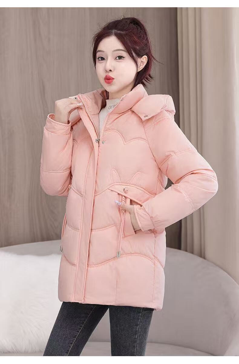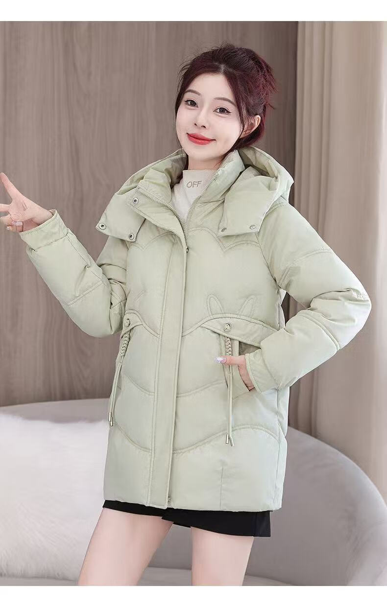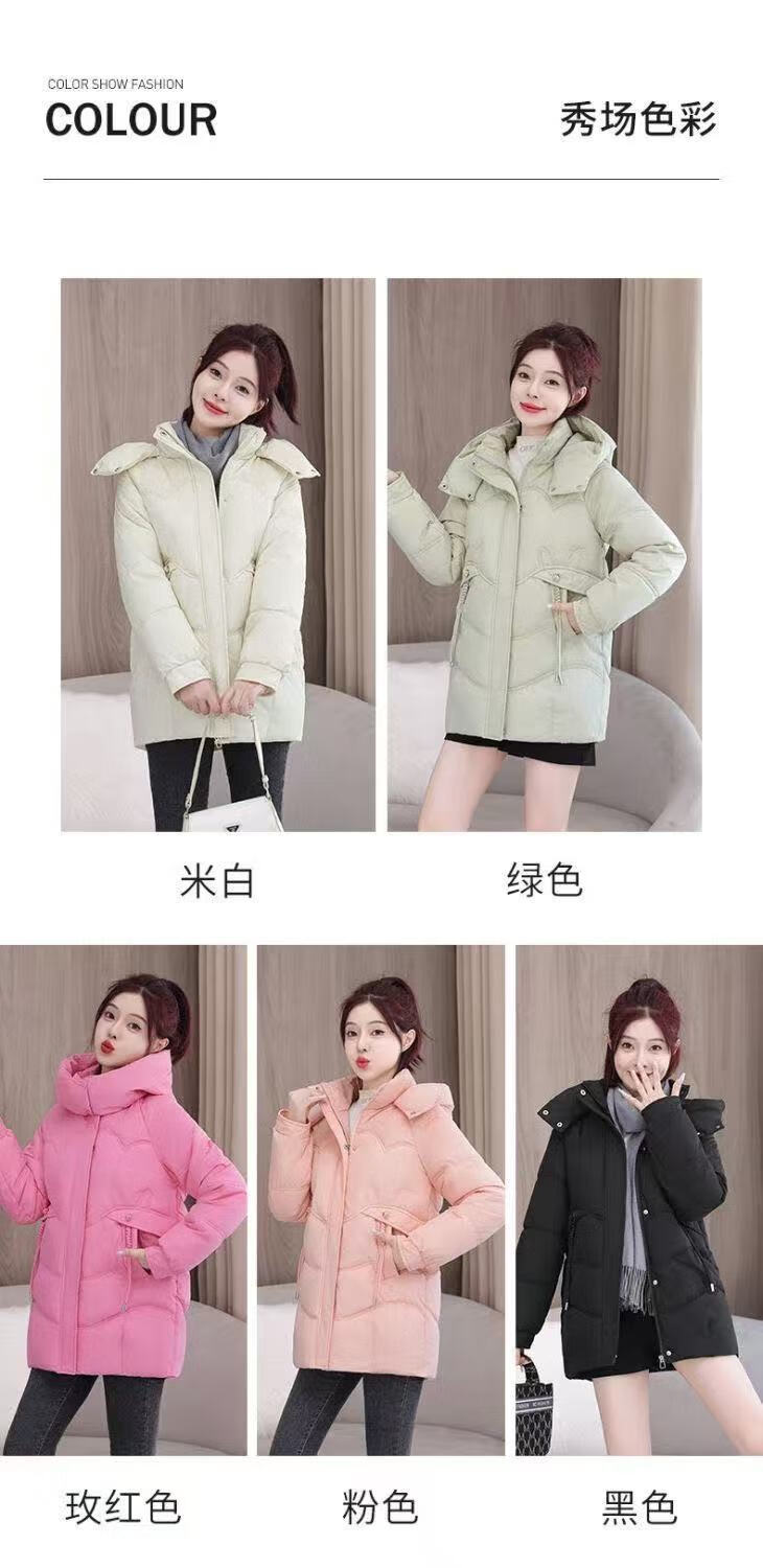 2025 new cotton-padded jacket, super good-looking, thickened cotton-padded jacket, Korean version, light and not bulky, down cotton mid-length winter jacket, black XL 115-130Jin Jin is equal to 0.5 kg