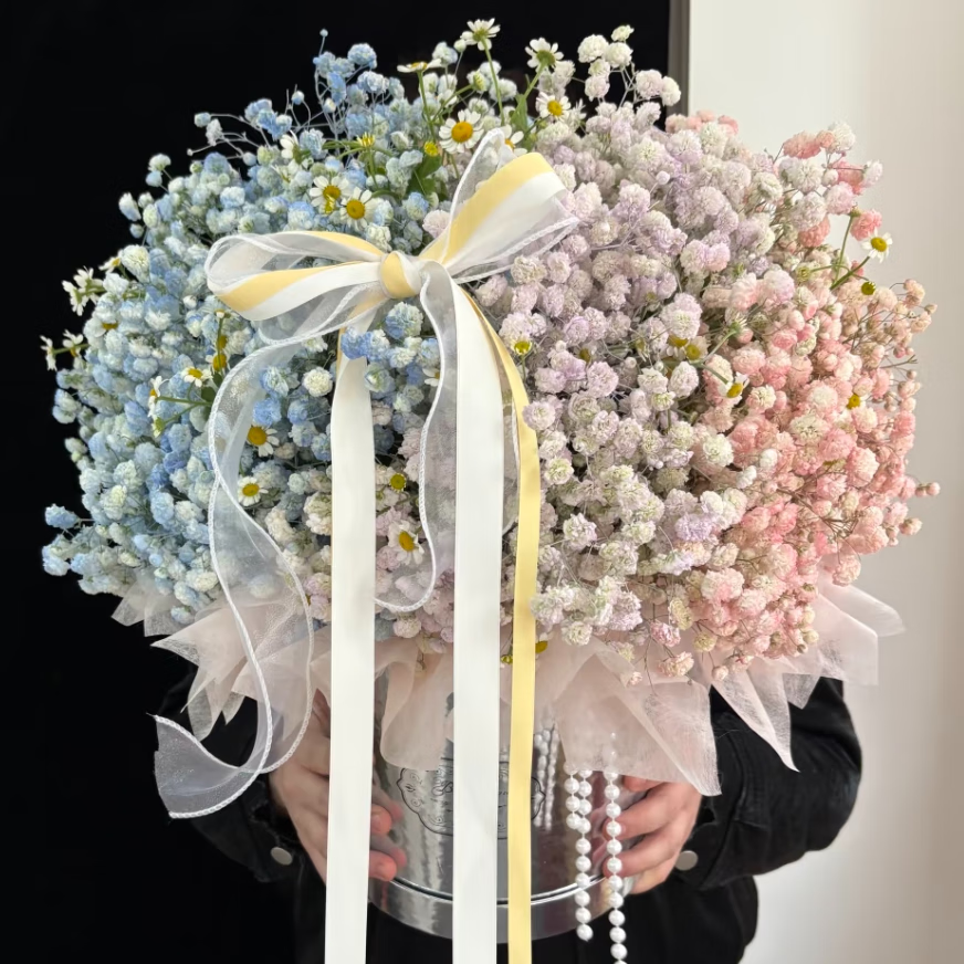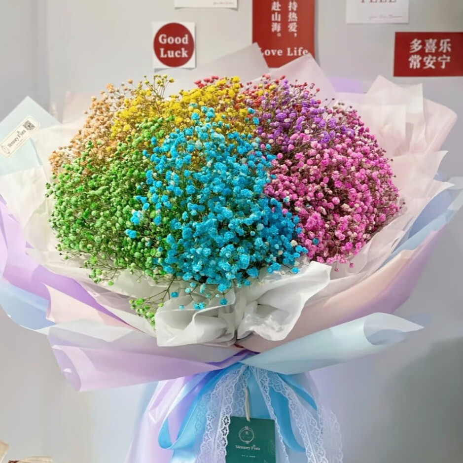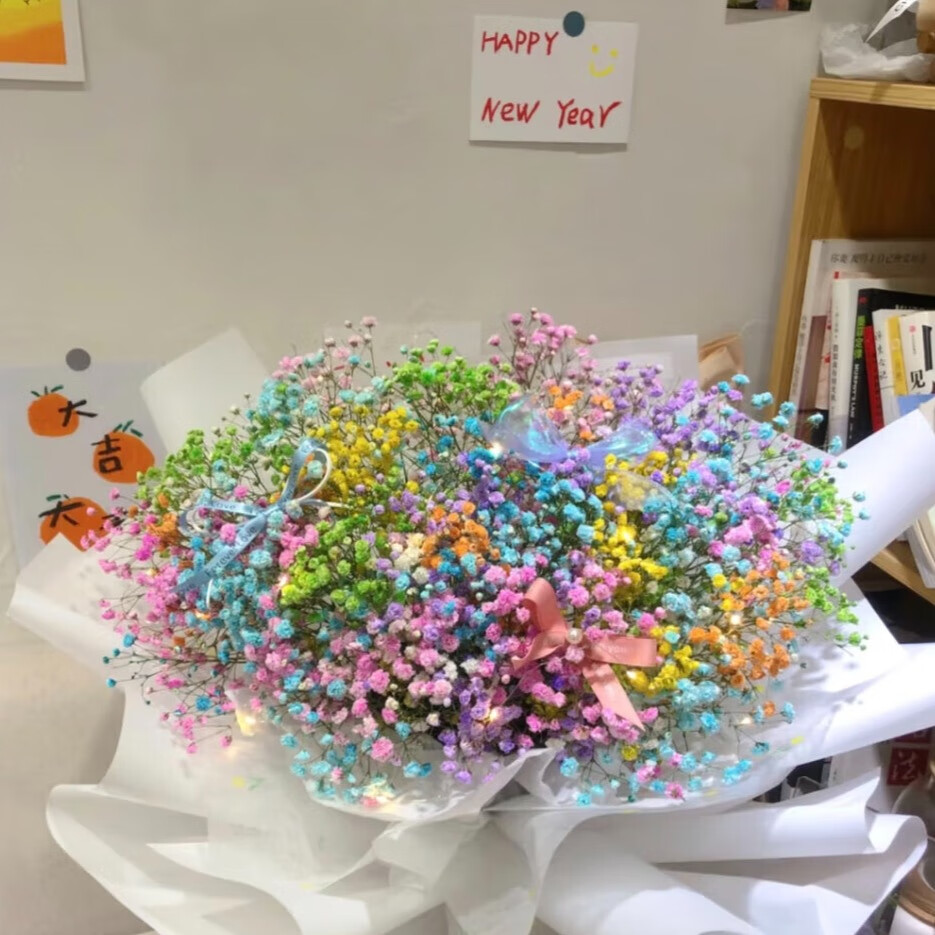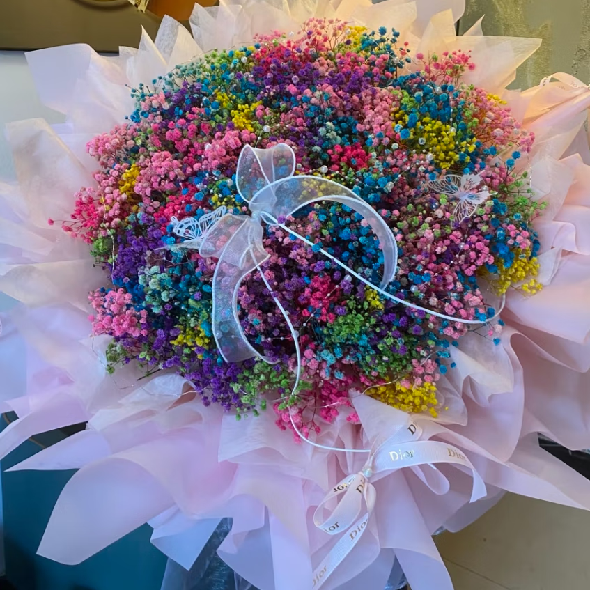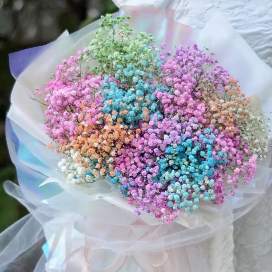 Colorful baby's breath, random color primary color, mixed color, fresh cut flowers, can be used as dried flower base, straight hair, long flowering period, purple baby's breath 100g