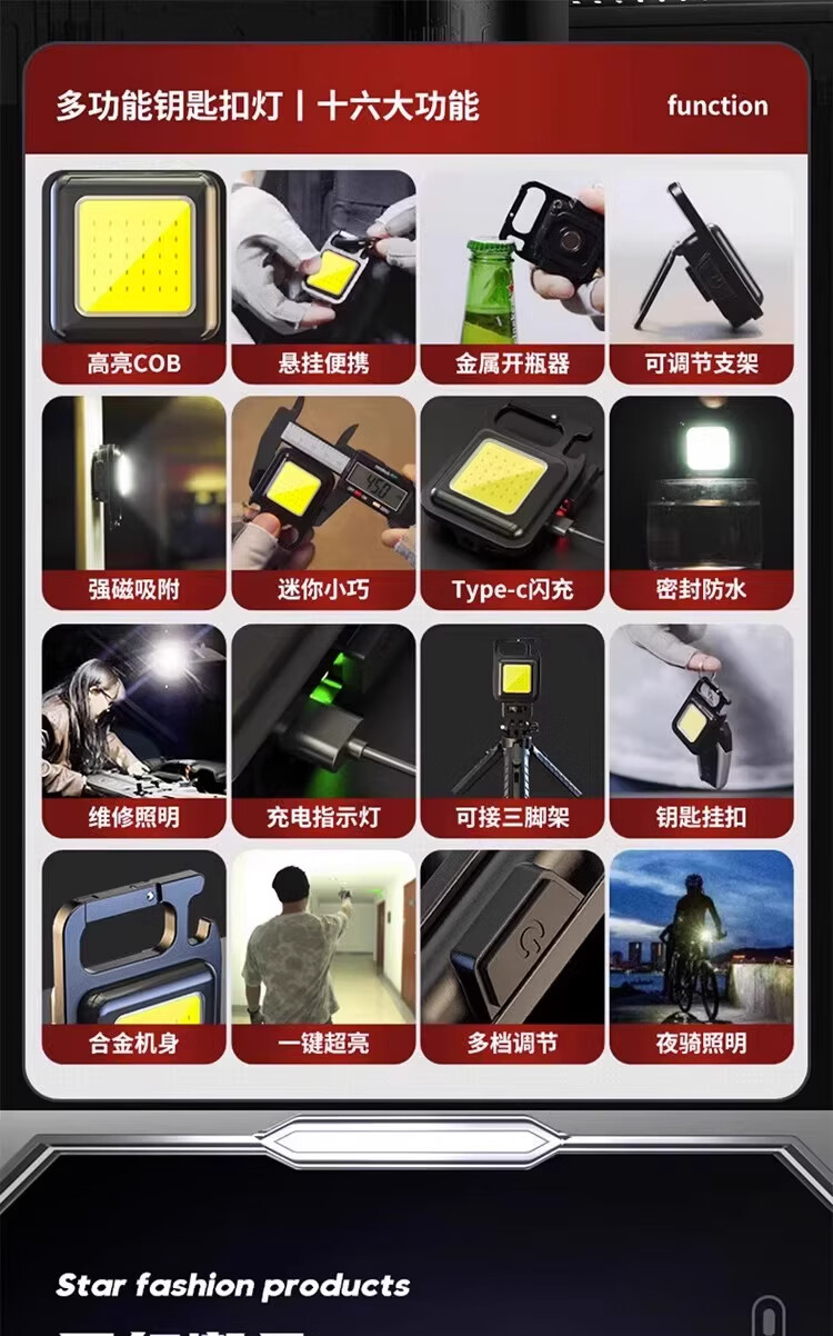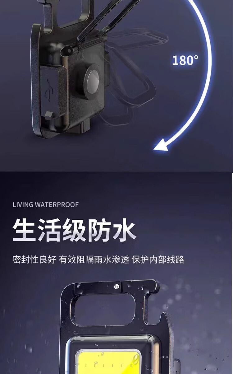 Keychain light flashlight strong light rechargeable ultra-bright outdoor mini portable work LED light keychain night light (two pack)