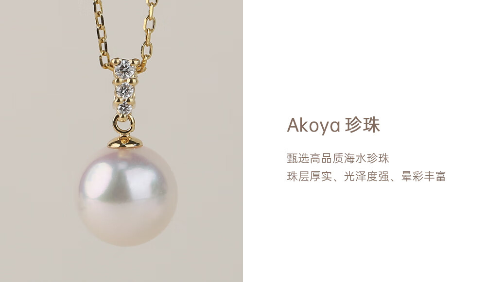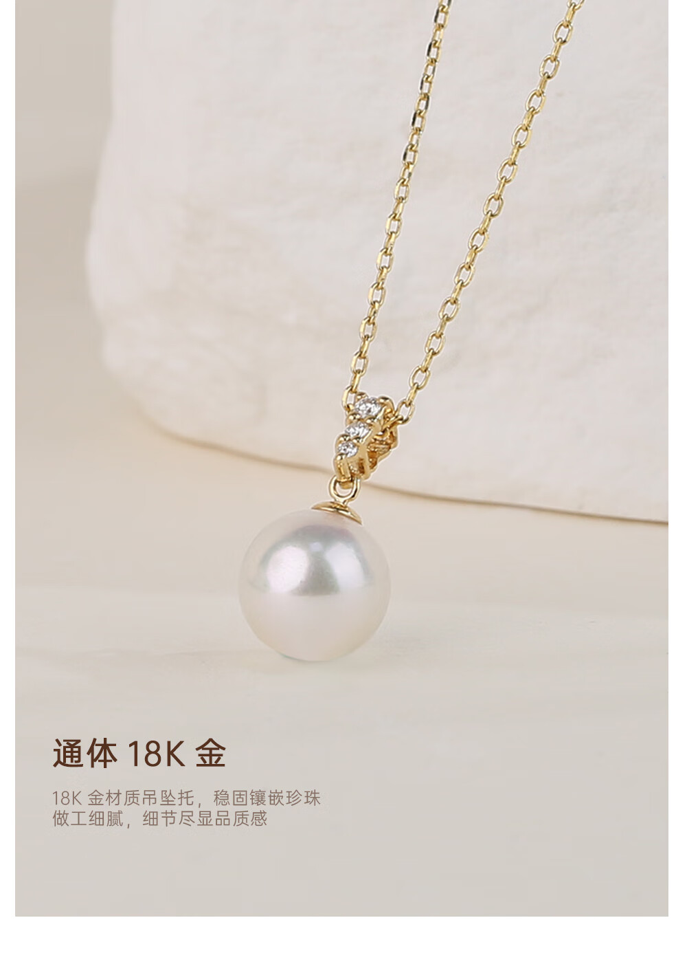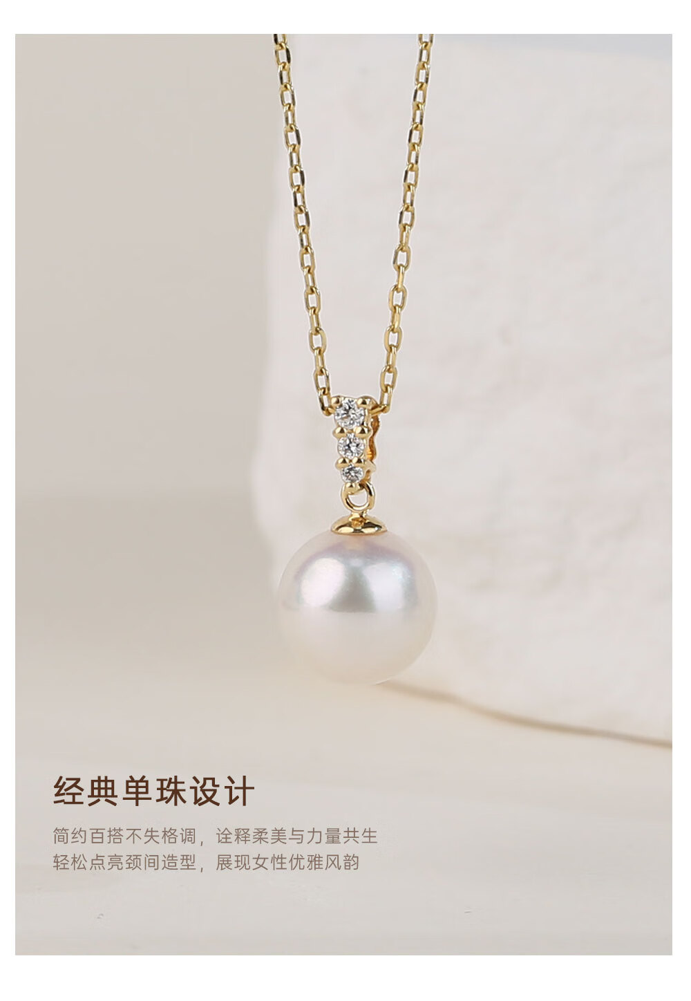 Fortunate pearl pendant 18K gold Akoya seawater pearl 9-9.5mm three-diamond pendant neck piece for girlfriend’s birthday gift 18K gold three-diamond Akoya pearl 9-9.5mm round/strong light free silver chain
