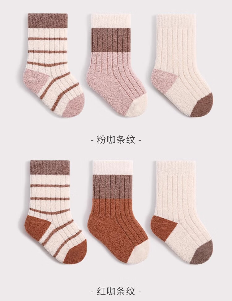 BIBK Newborn Baby Socks Winter Thickened and Velvet Warm Newborn Baby 0-3 Months and 6 Autumn and Winter Fetal Socks that Do Not Restrict the Legs in the Tube Pink Combination Series 0-1 Years Old (S)