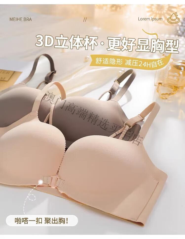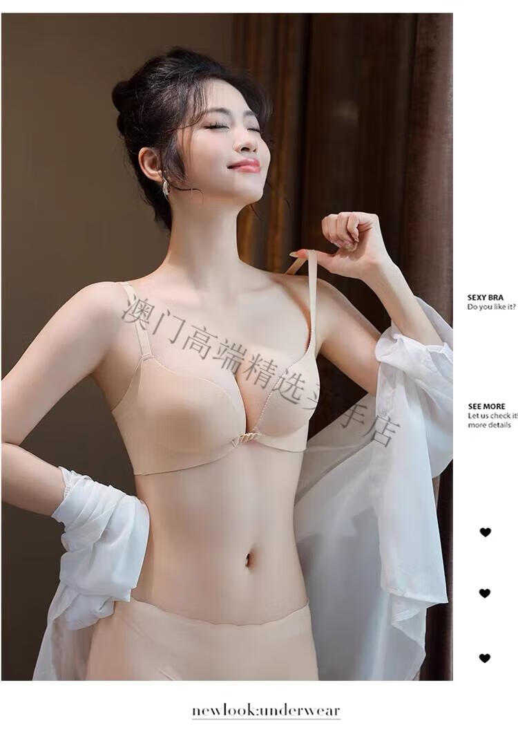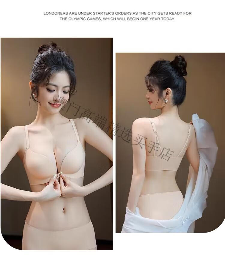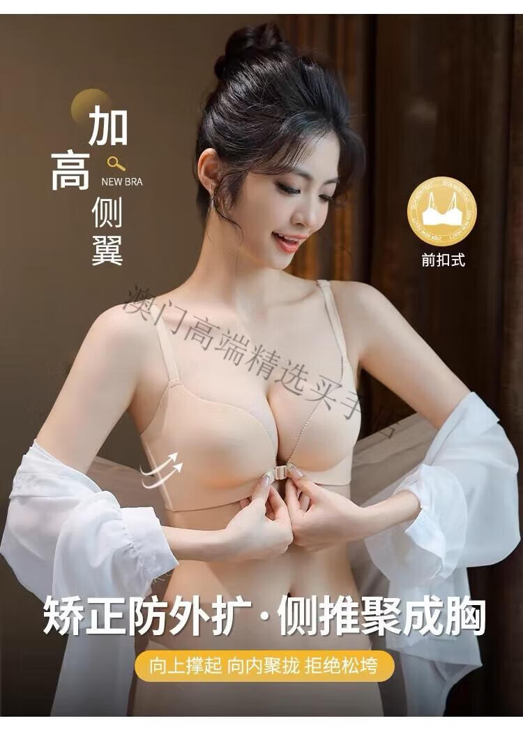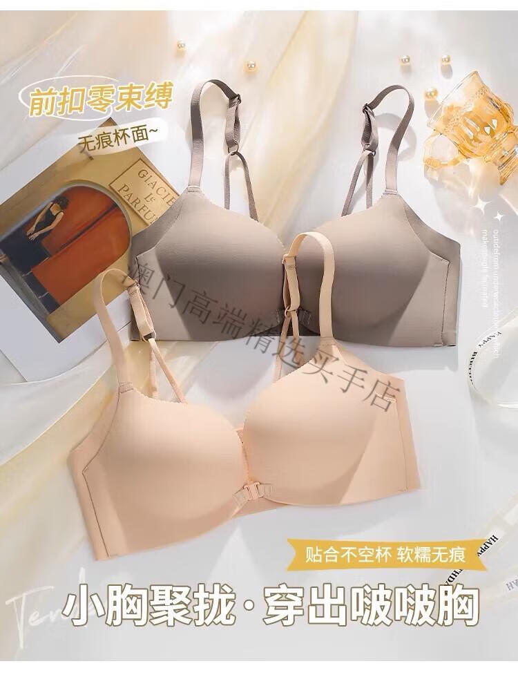 Oein Light Luxury Brand Women's Underwear Women's Small Breasts Gather Up to Show Bigger Sexy Seamless Breast Reduction Front Button Beautiful Back Bra Pink Skin 70A/32A