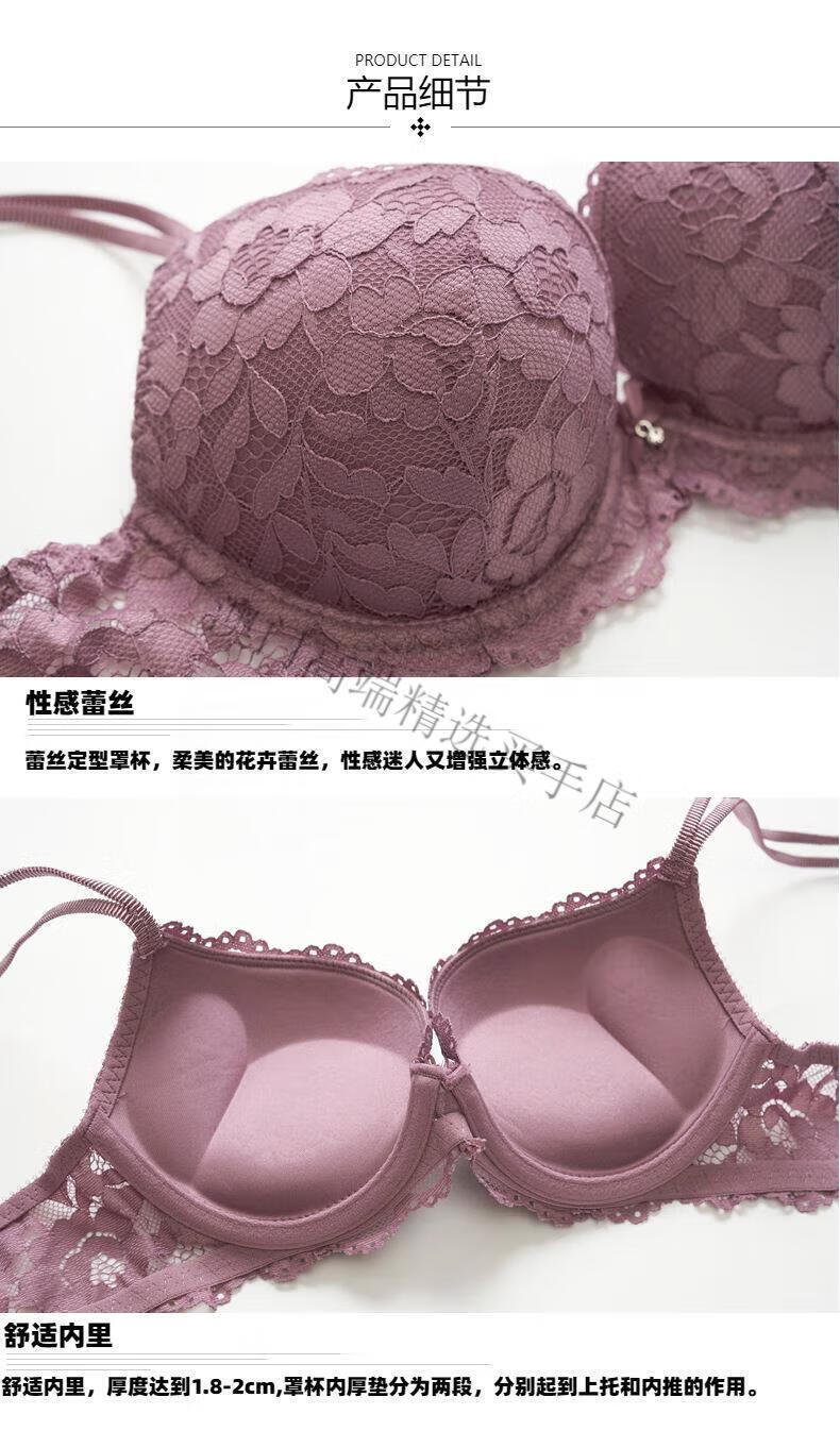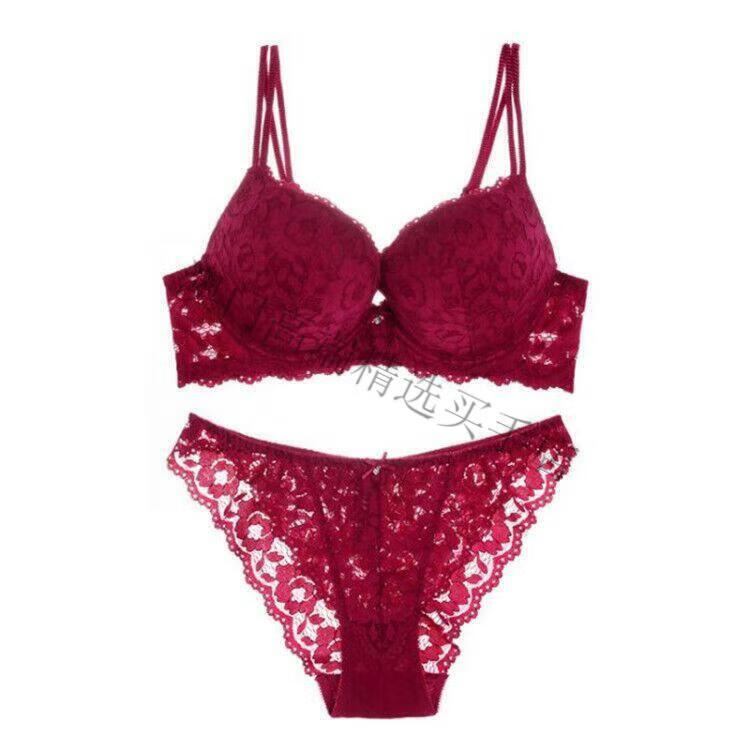Oein, ropa interior ligera de lujo para mujer, conjunto de sujetador push-up sexy de encaje para mujer, pechos pequeños engrosados, sujetador grande para mujer, Borgoña 80B