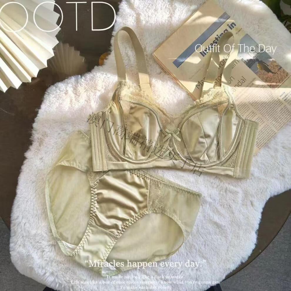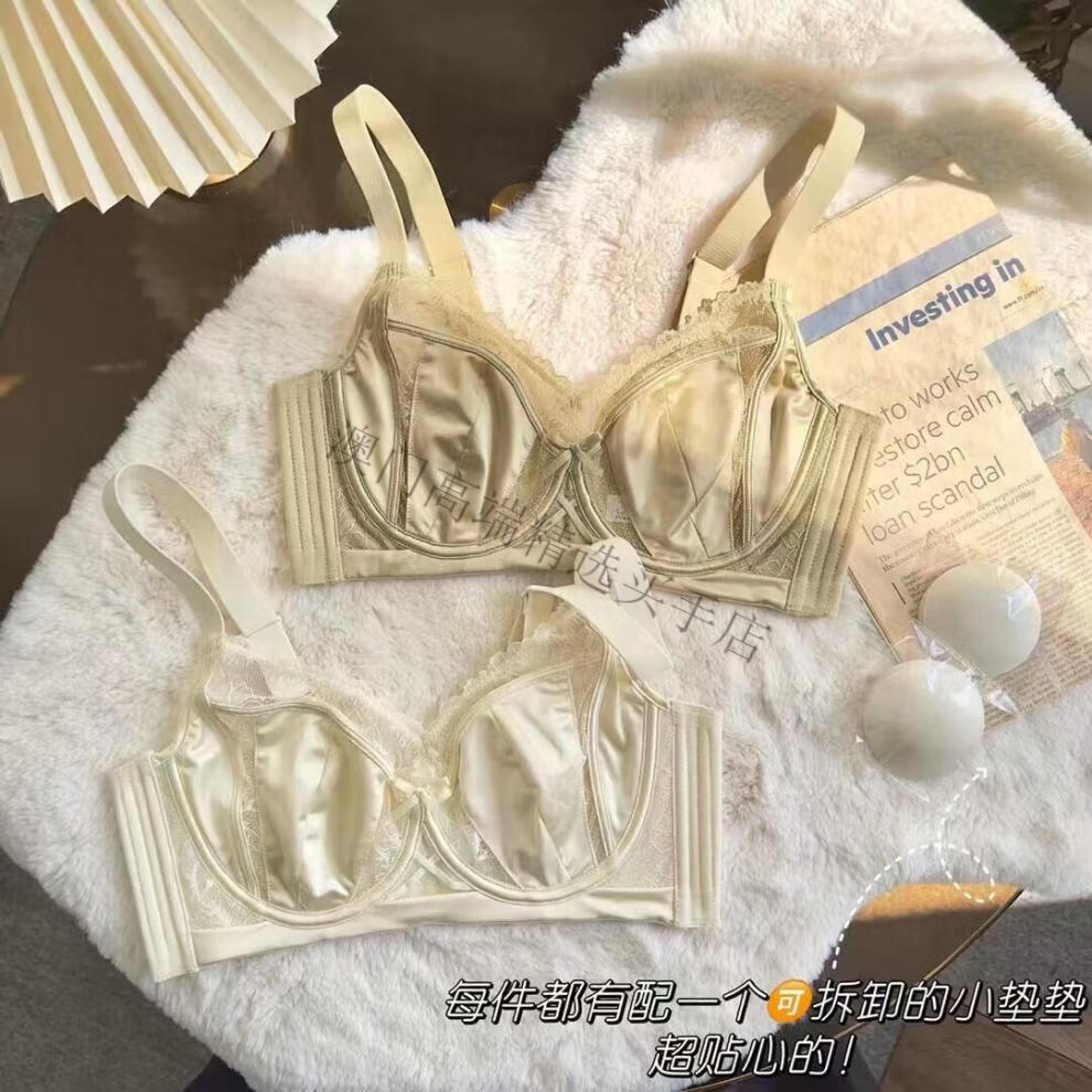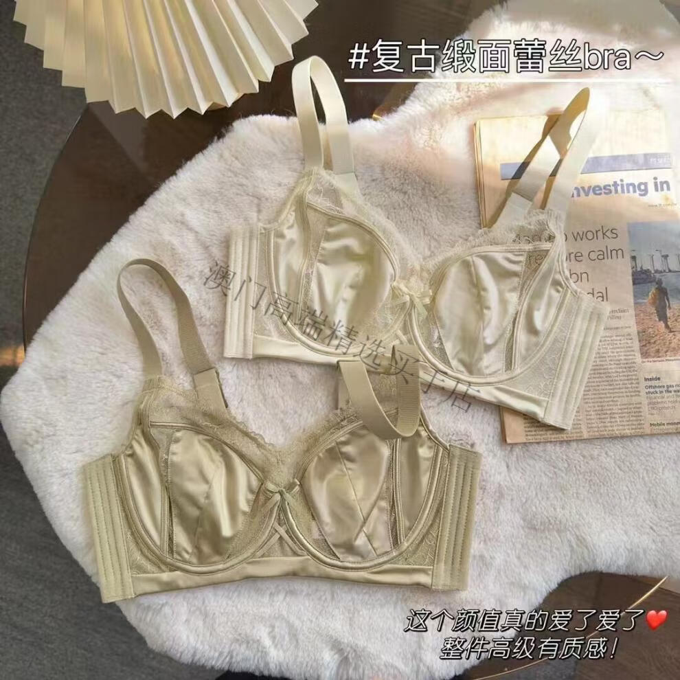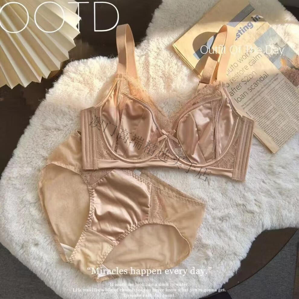 Oein Light Luxury Brand Women's Underwear Feminine Lace Soft Steel Ring Support Secondary Breast Anti-Sagging Bra Apricot M Suitable for 34/75BCD