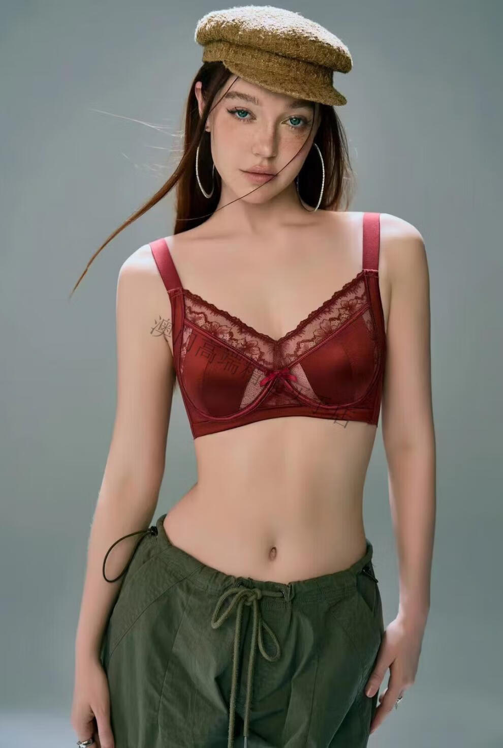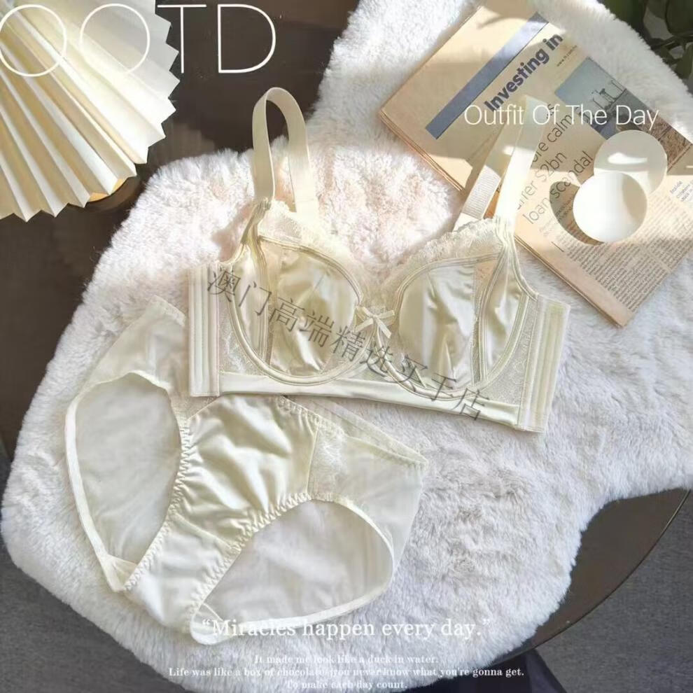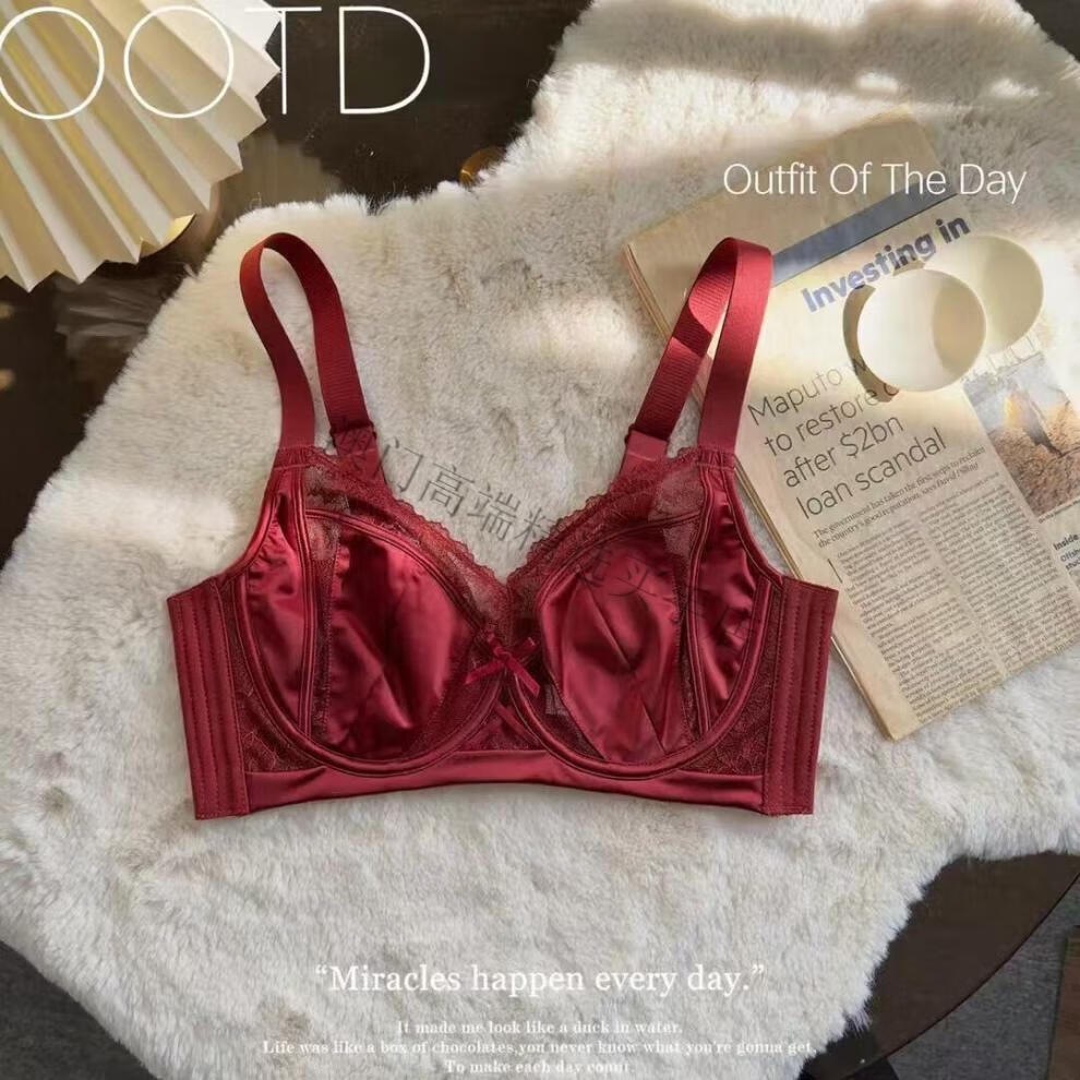 Oein Light Luxury Brand Women's Underwear Feminine Lace Soft Steel Ring Support Secondary Breast Anti-Sagging Bra Apricot M Suitable for 34/75BCD