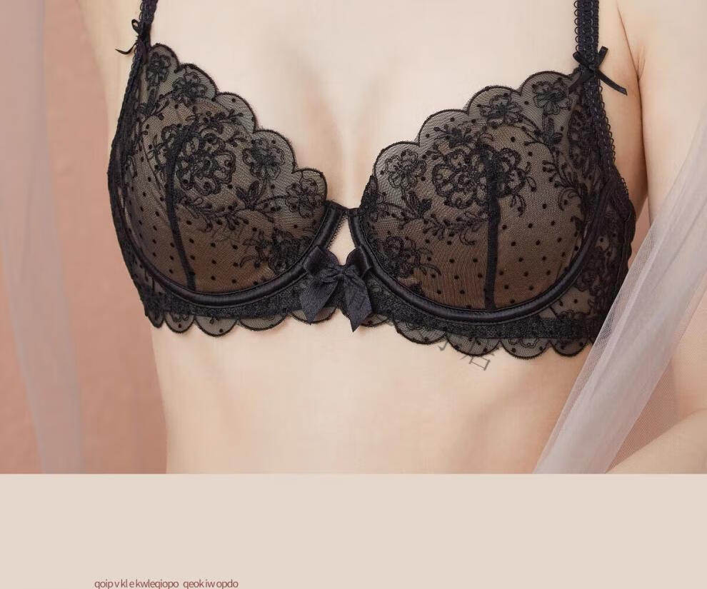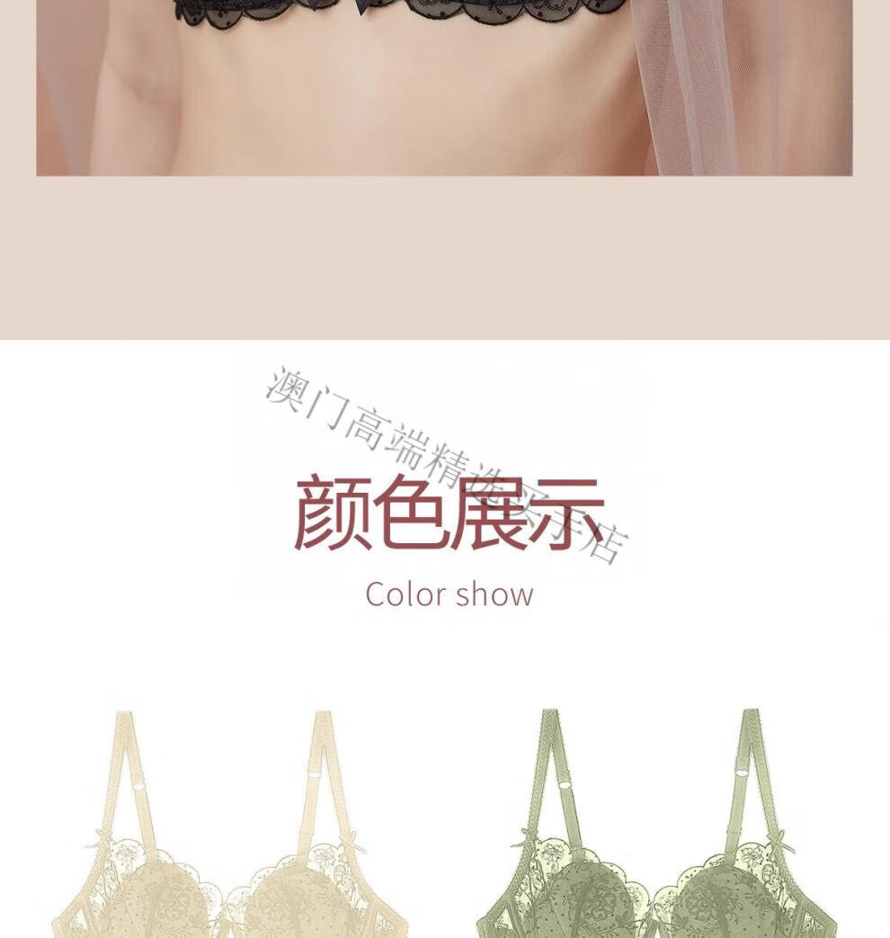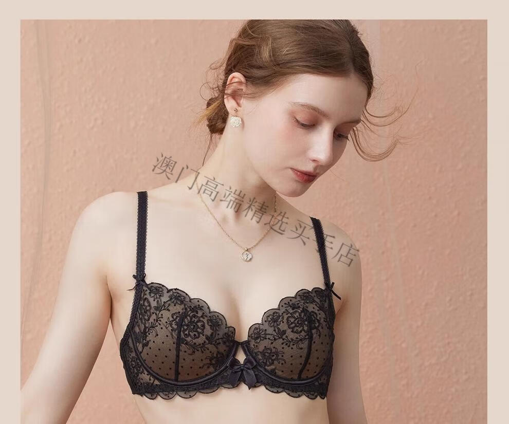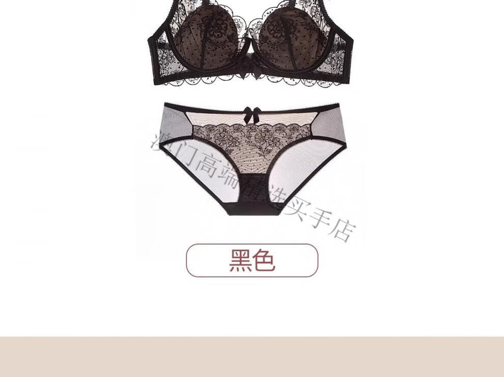 Oein Light Luxury Brand Women's Underwear Summer Thin Sexy Big Breast Showing Small Lace Soft Wire Bra Set Black Apricot Set 70A