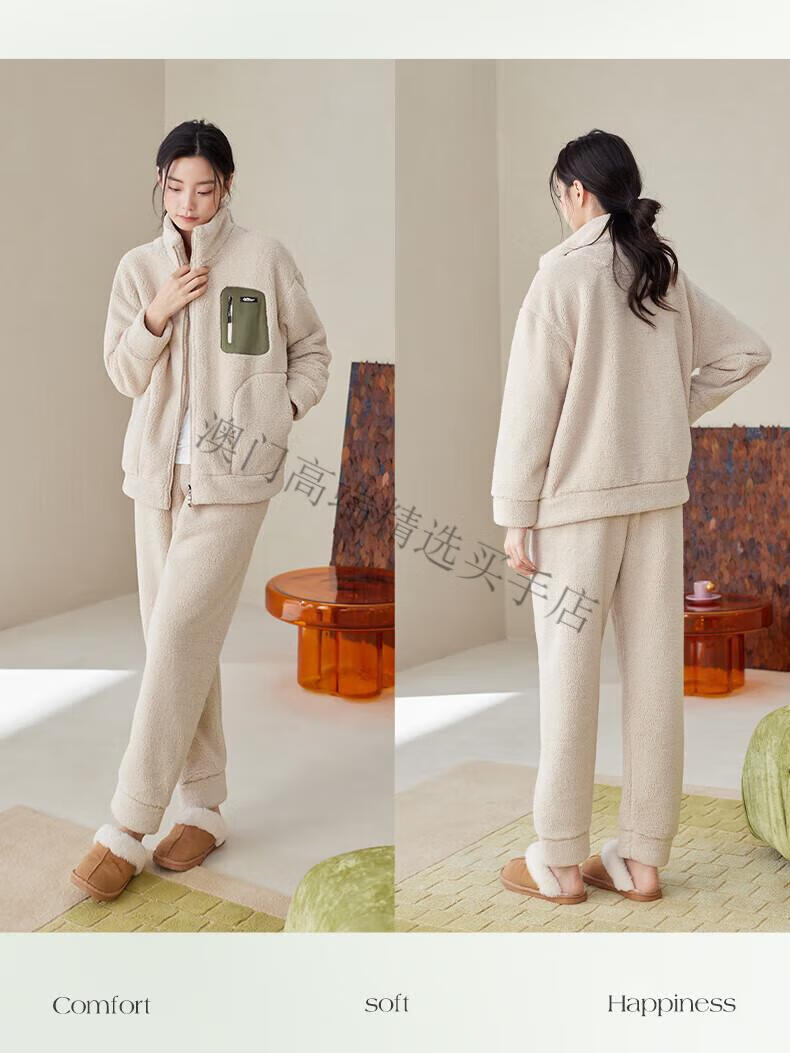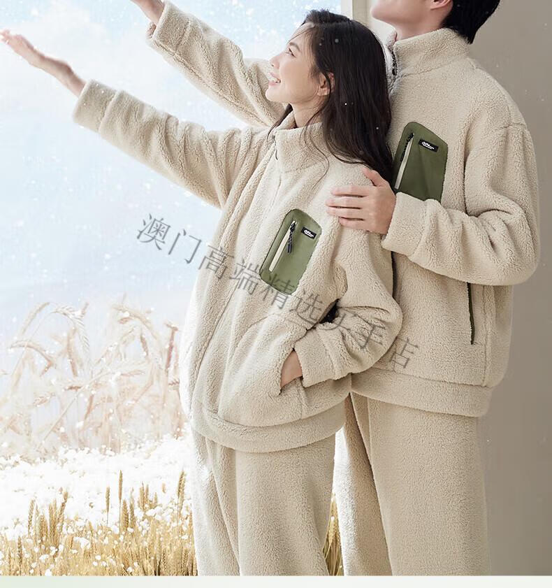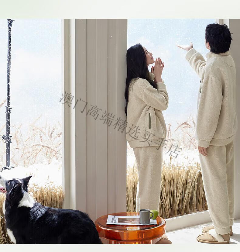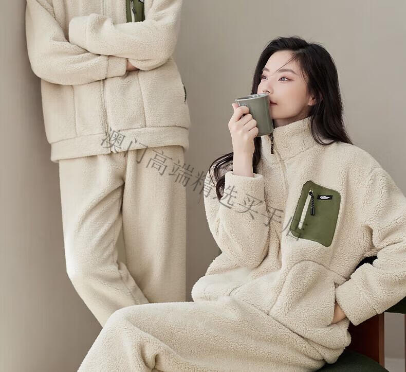 GUYN Antistatic Couple Pajamas Women's Autumn and Winter Thickened Imitation Lamb Velvet Men's Home Clothing Set 62786 Mi Xing-Female M