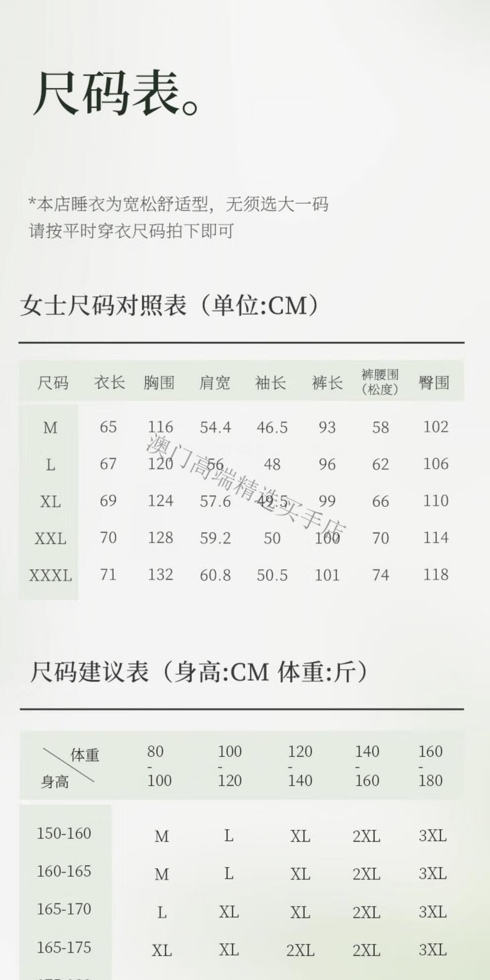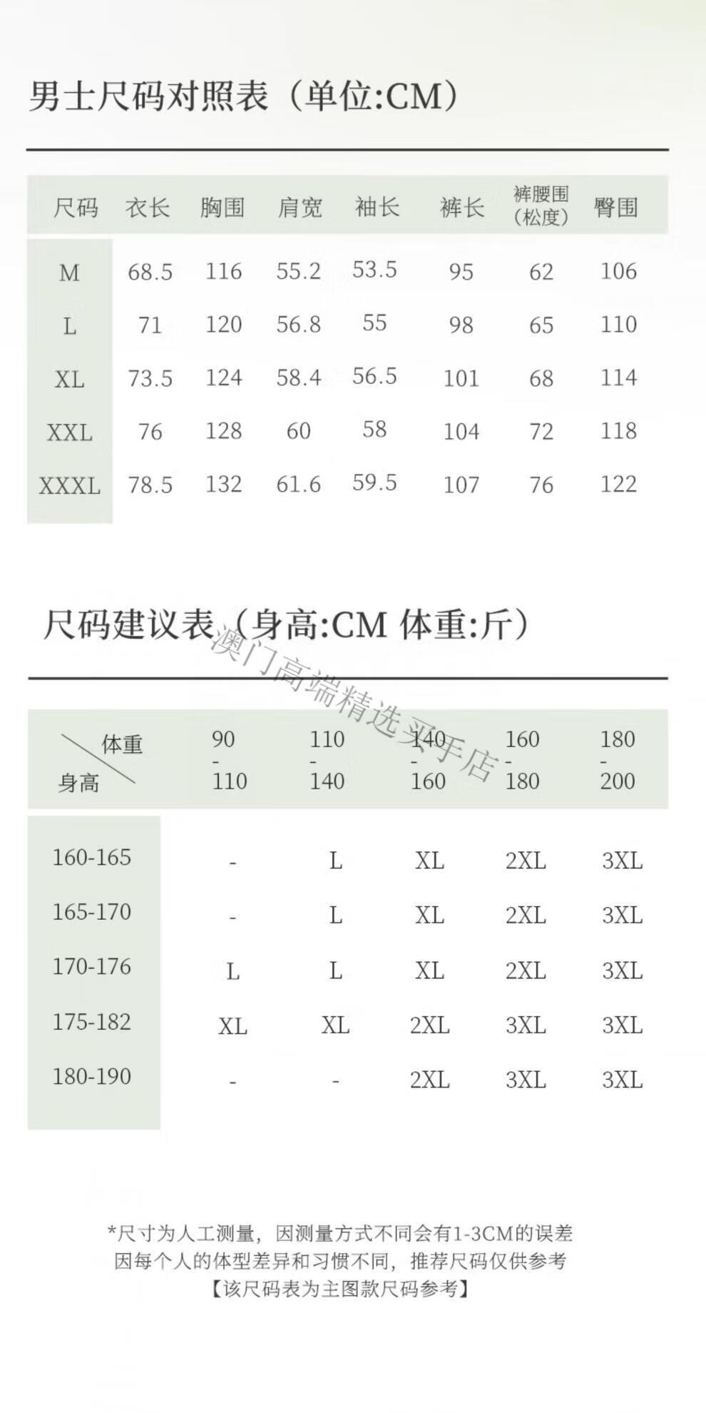 China (cm) 160-165/84-86 165-170 / 88-90 167-172 / 92-96 168-173 / 98-102 170-176 / 106-110