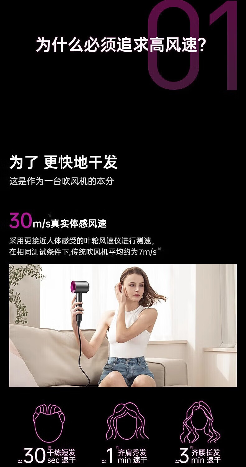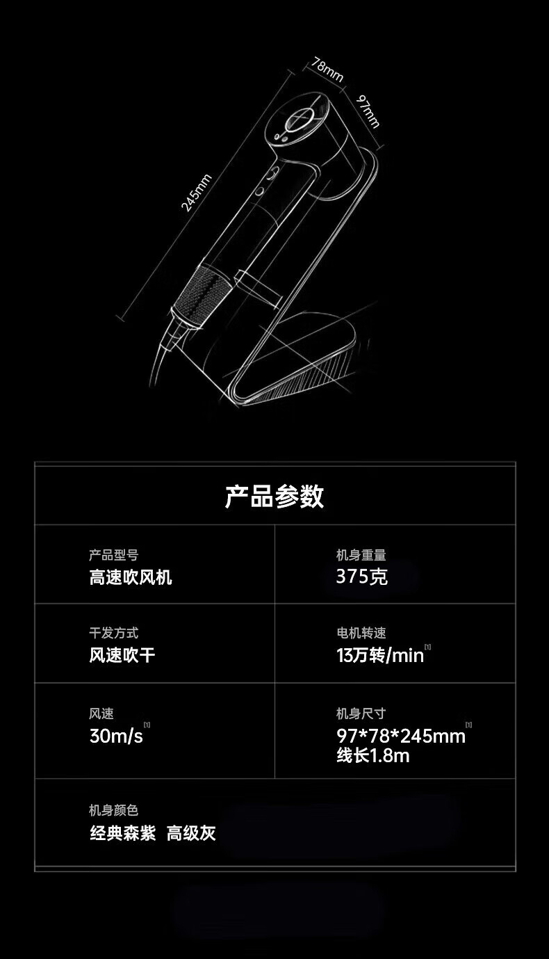 Dr. Lightspeed Super High-Speed Hair Dryer Home Silent Negative Ions High Power Does Not Harm Hair Special for Student Dormitories Constant Temperature Leafless Silent High Wind Quick-drying Hair Care New Gift Box Classic Purple 4.5 Billion Hydrating Negative Ions丨Nourishing Hair Care丨Quick-drying in 15 Seconds Upgraded Five Air Nozzles Set