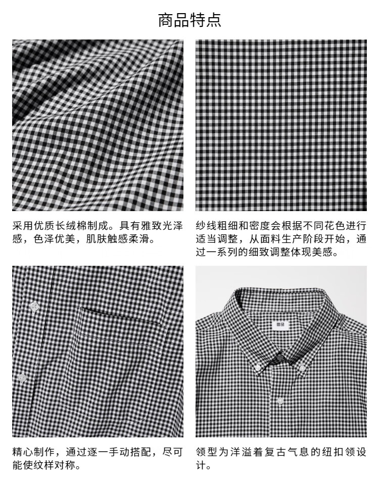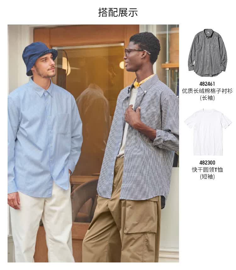 Uniqlo men's and women's high-quality long-staple cotton plaid shirt/long-sleeved shirt 26 spring and summer new style 482461 09 black M