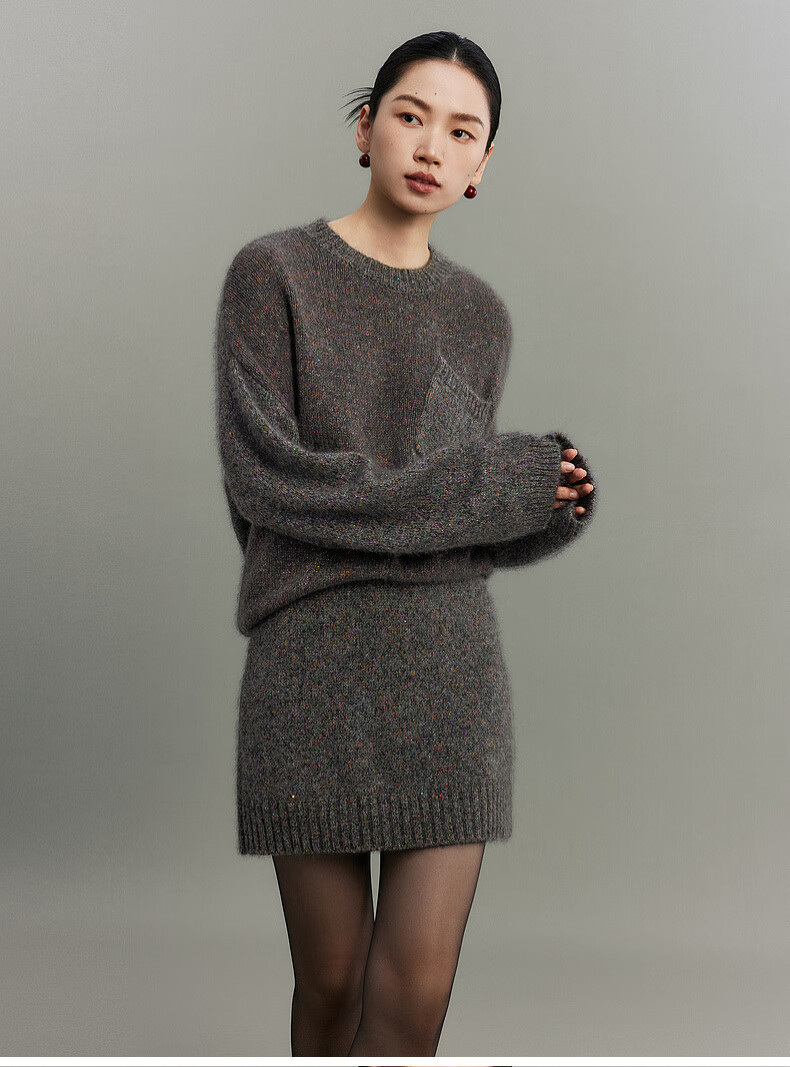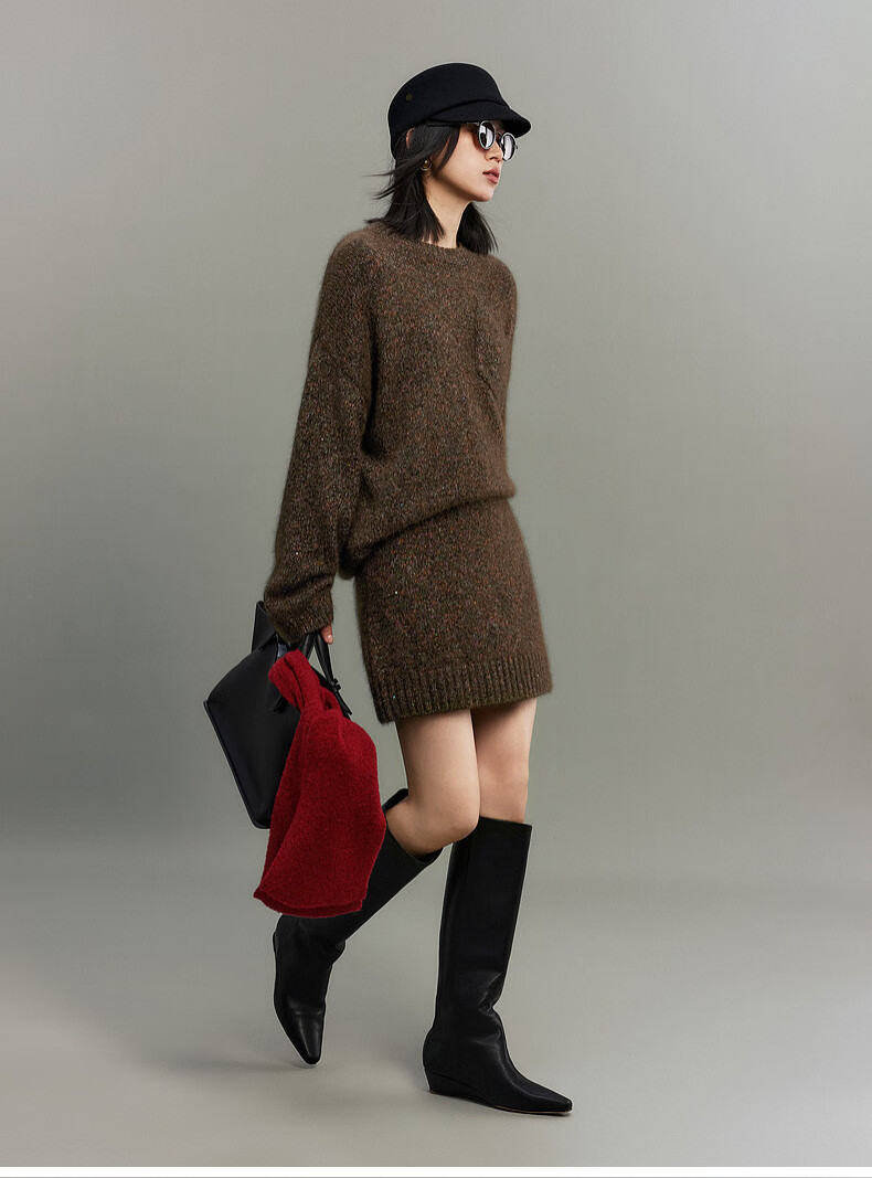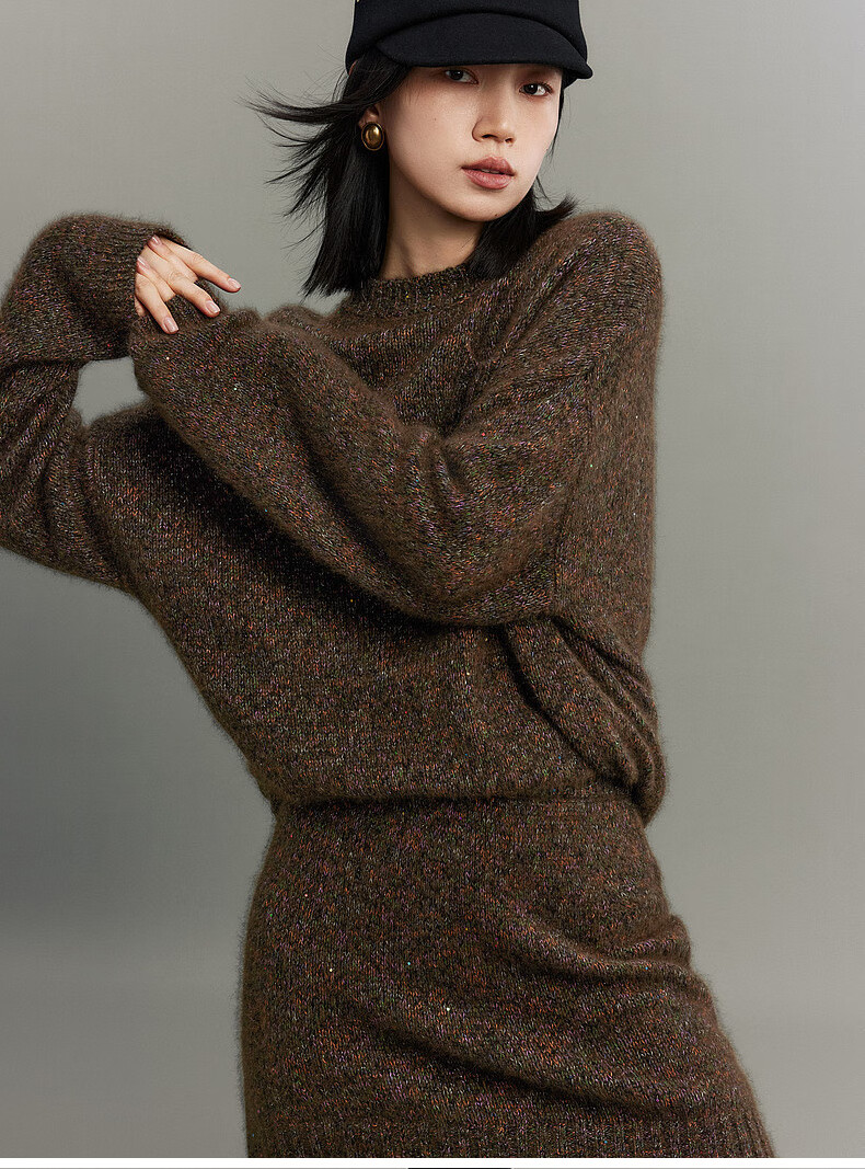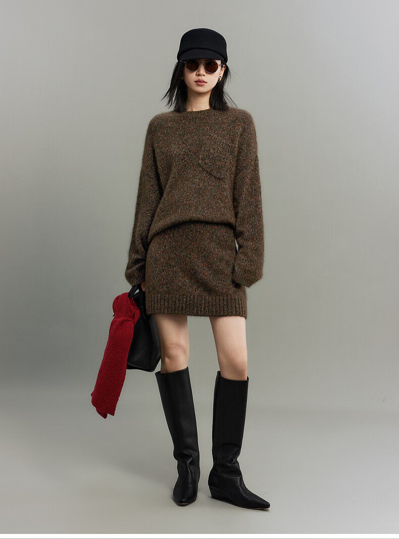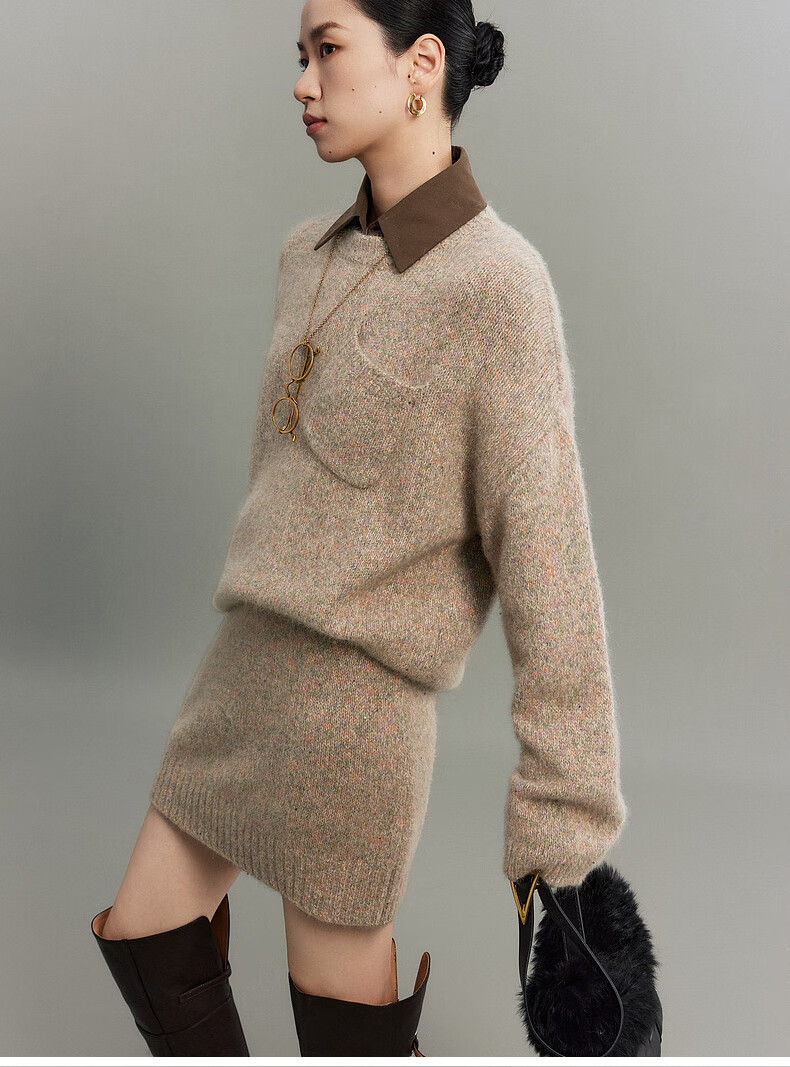 SUSHE Colorful French Elegant Wool Floral Atmosphere Sweater Skirt Knitted Suit for Women Lihongka-Top S