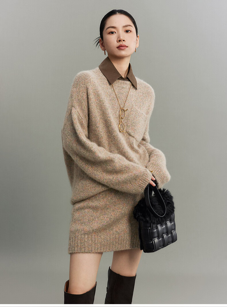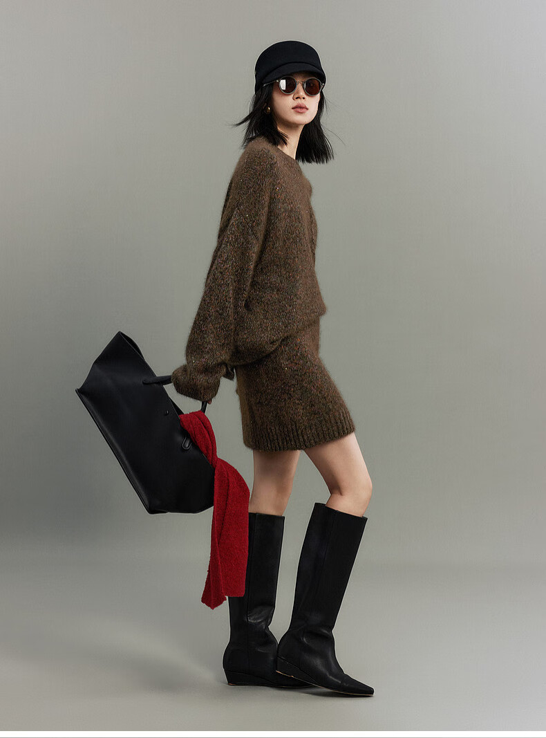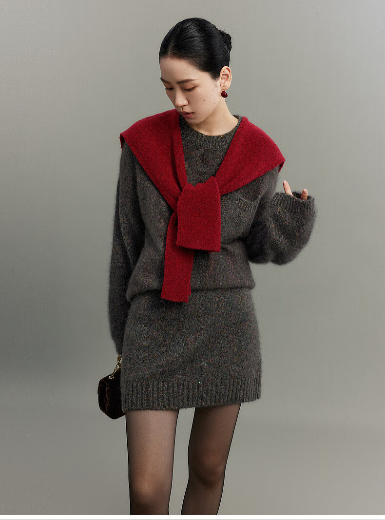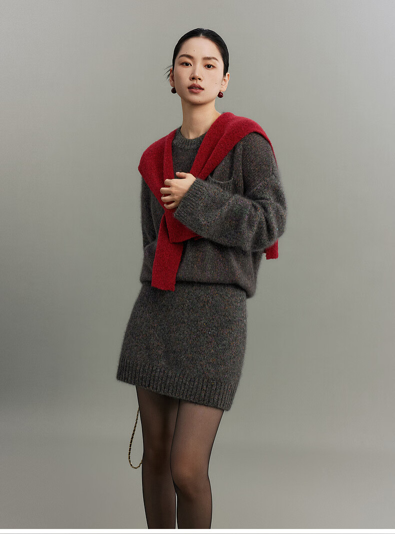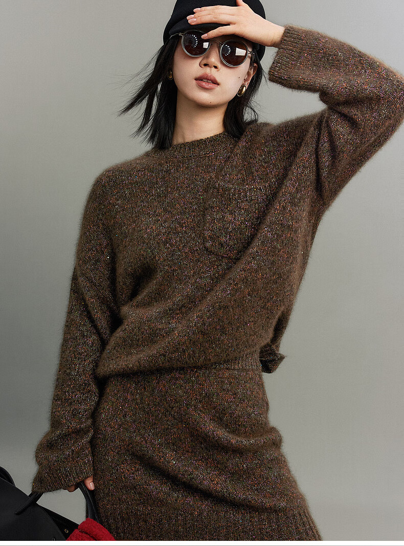 SUSHE Colorful French Elegant Wool Floral Atmosphere Sweater Skirt Knitted Suit for Women Lihongka-Top S
