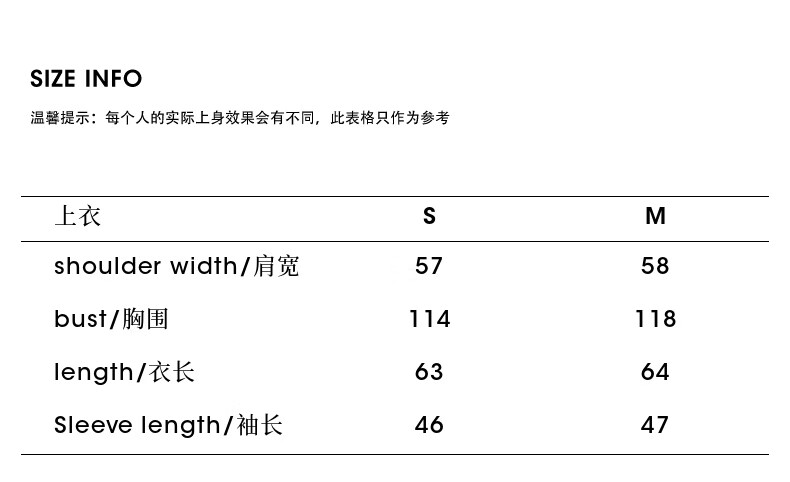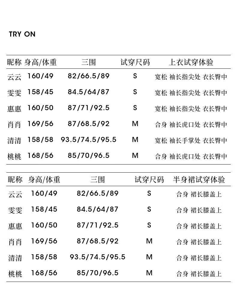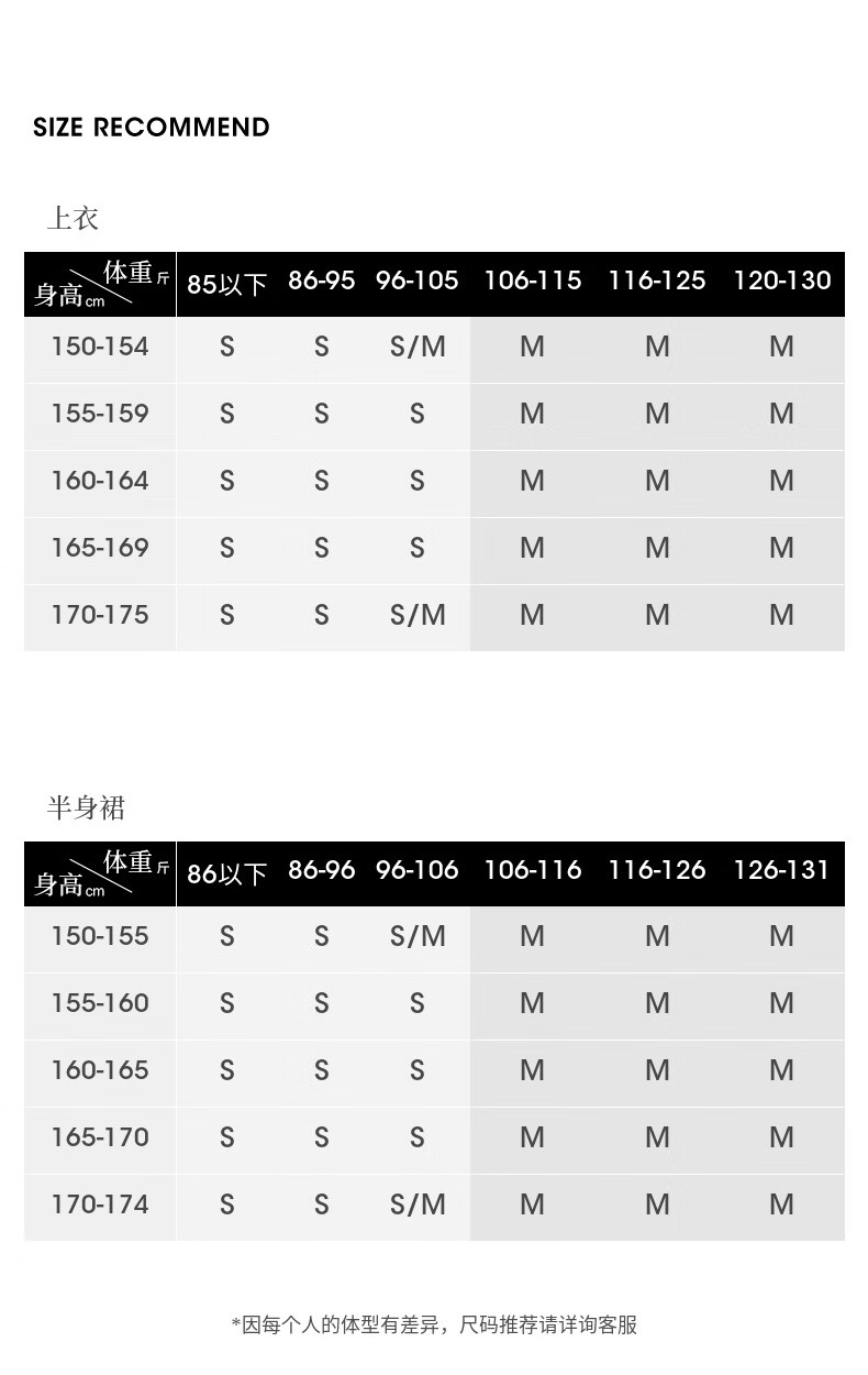 China (cm) 160-165/84-86 165-170 / 88-90 167-172 / 92-96 168-173 / 98-102 170-176 / 106-110