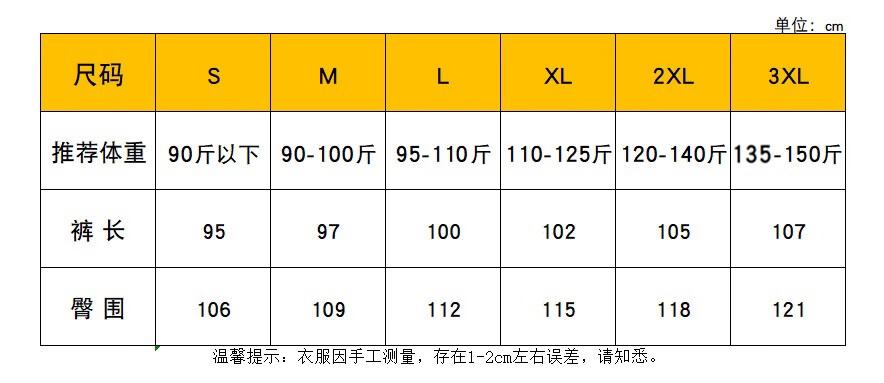 Outseam (cm) 99 cm 101.5 cm 104 cm 106.5 cm 109 cm
