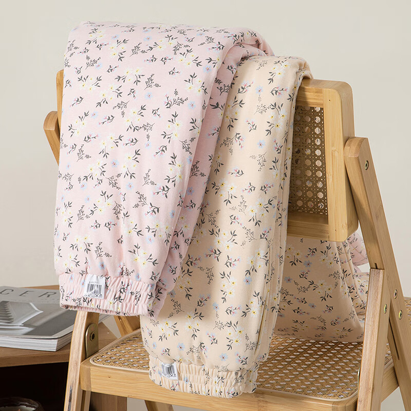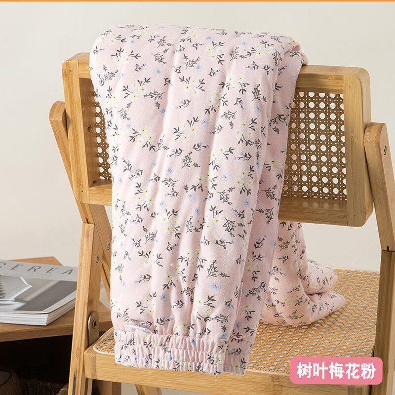 Cotton chant pure cotton handmade cotton trousers thick high waist elastic band home cotton trousers women's winter warm quilted cold-proof trousers leaf plum powder M recommended 90-100Jin Jin equals 0.5 kg