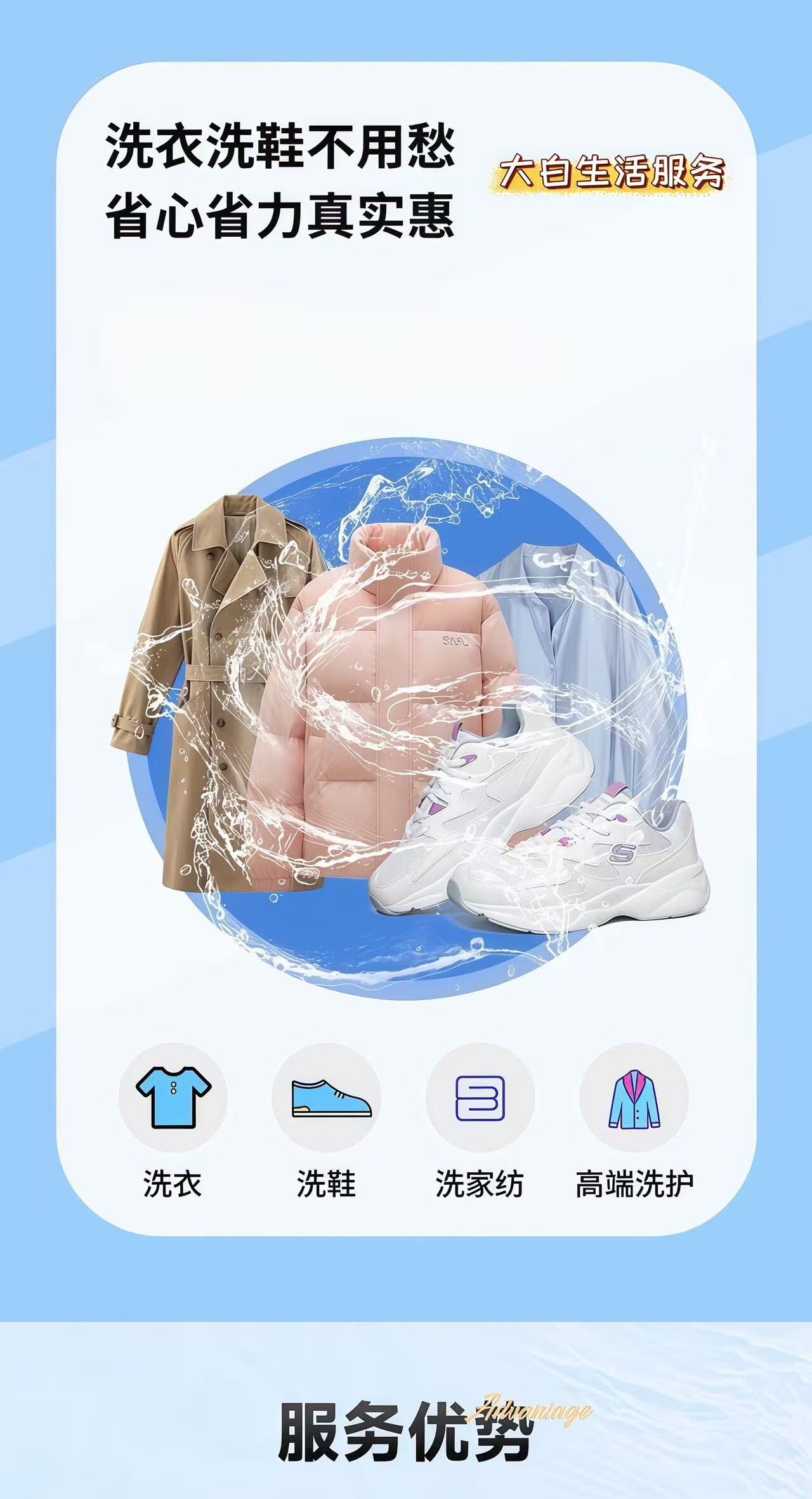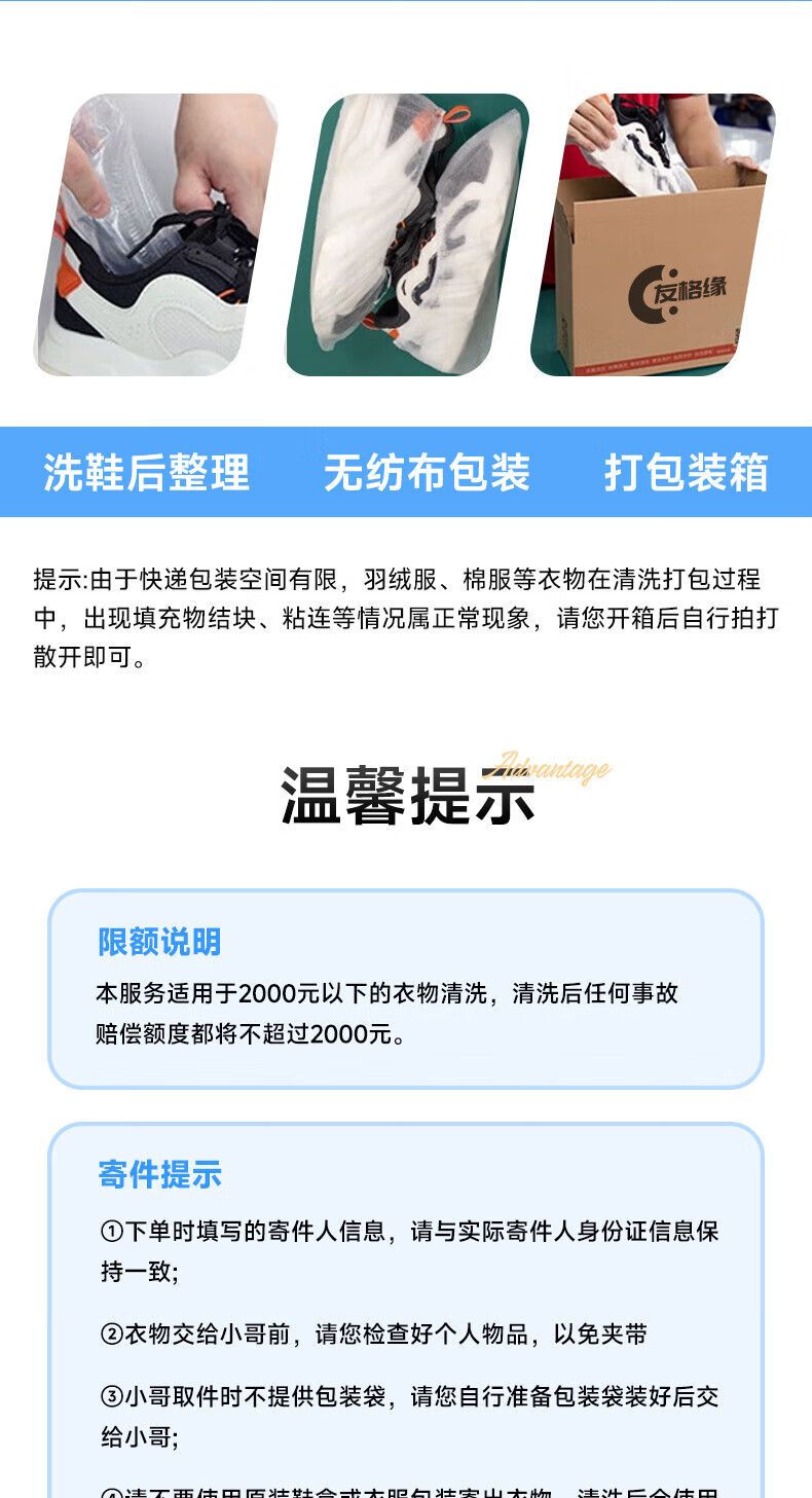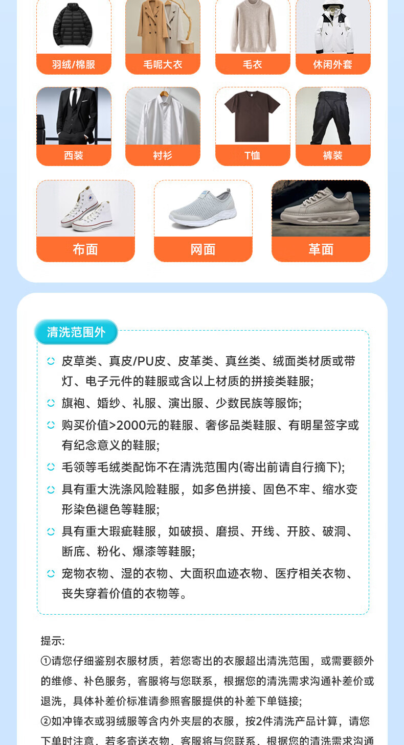 Door-to-door pickup of shoes and clothes Laundry service Shoe cleaning service Dry-cleaning door-to-door service Dry-cleaning down jackets and cotton clothes Free door-to-door pickup Sterilization, disinfection, mite removal, ironing 2 pieces Any two pieces of clothing Washable shoes Contact the customer to make an appointment for pickup after placing the order