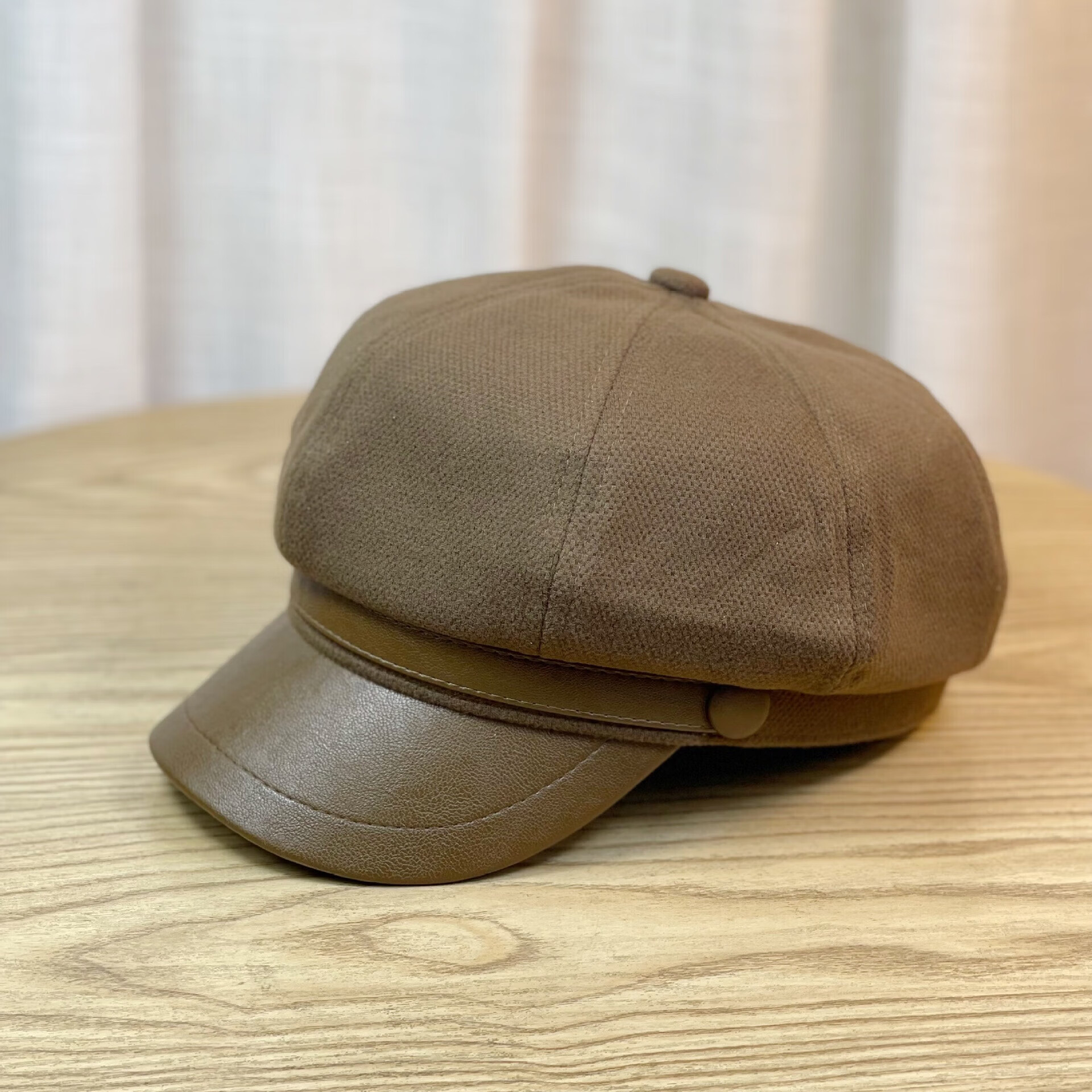 SASOCD autumn and winter duck-tongued hat for women Japanese casual retro painter's hat beret showing face little British all-match octagonal hat black one size fits all adult 54-58 adjustable