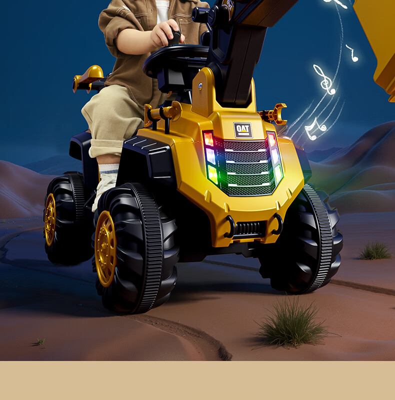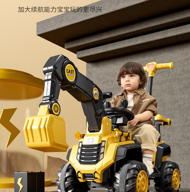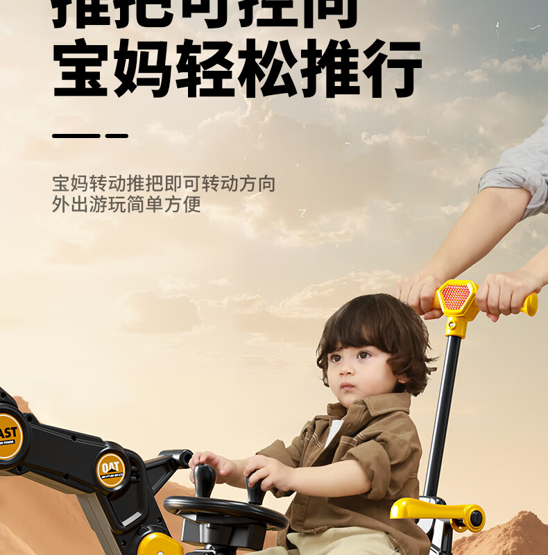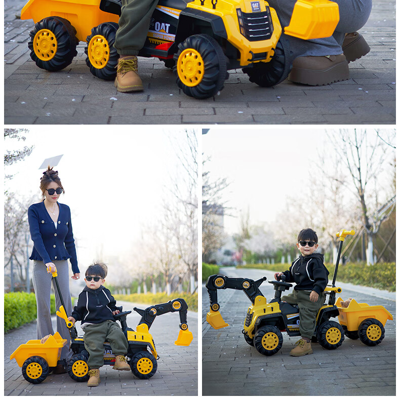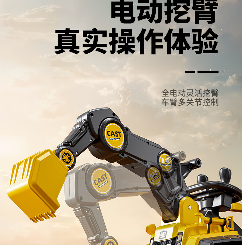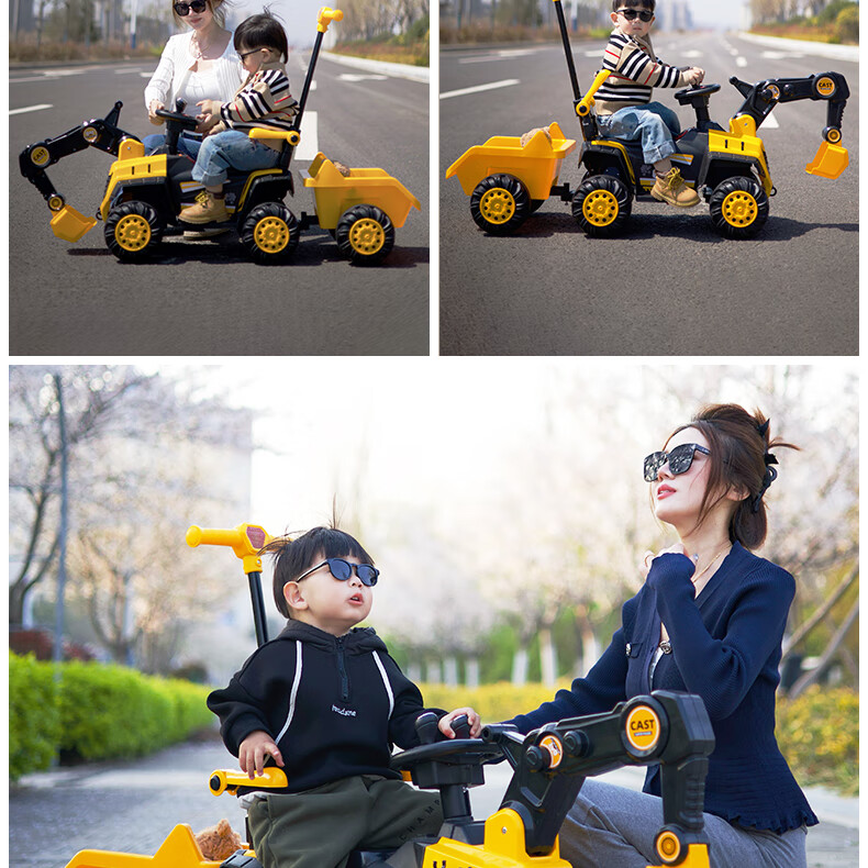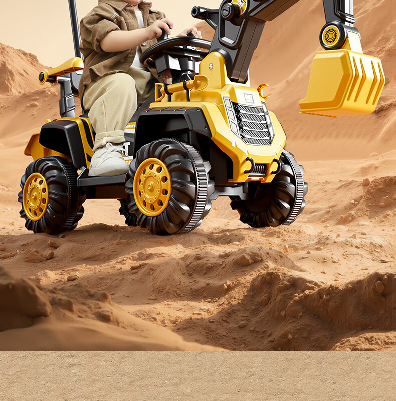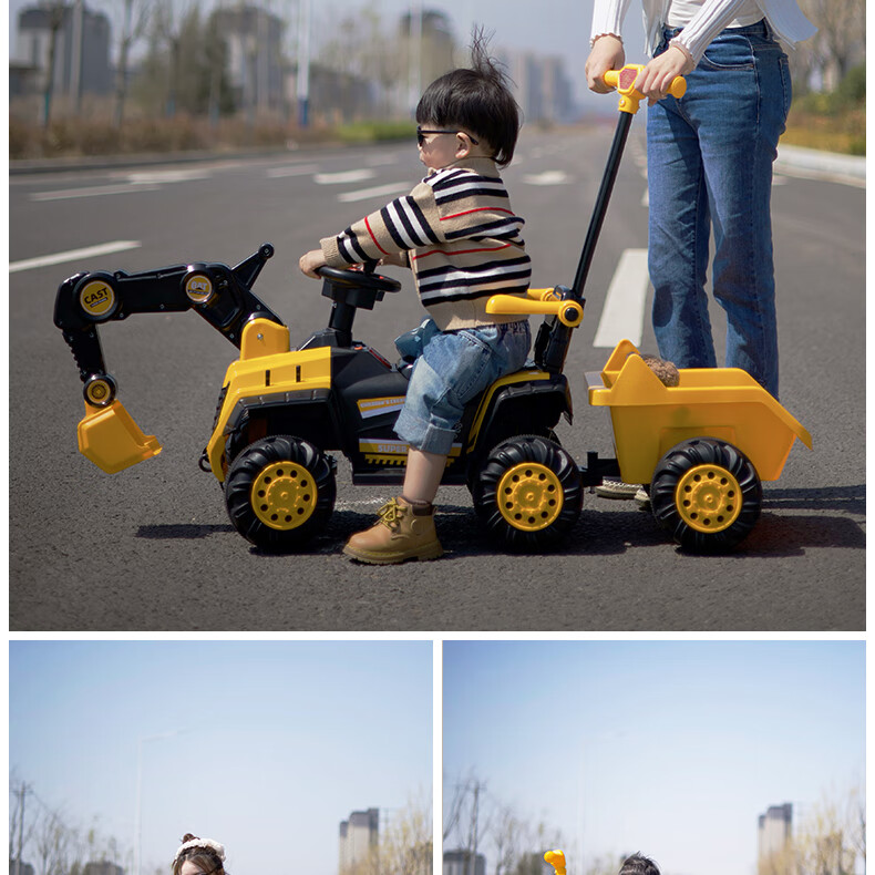 Yuezhan Kyoto children's excavator can sit on a person's remote control electric car baby excavator can ride and dig large engineering vehicle excavator yellow dual-drive remote control model electric digging arm + music + tow bucket + steering push handle + gift bag