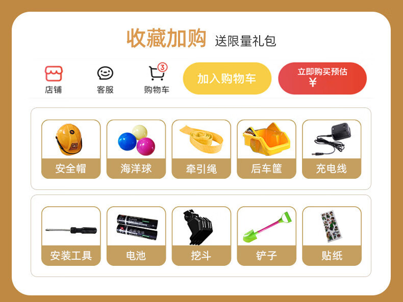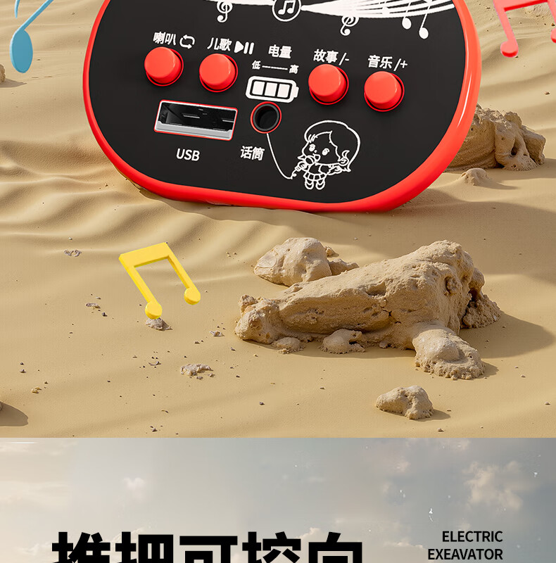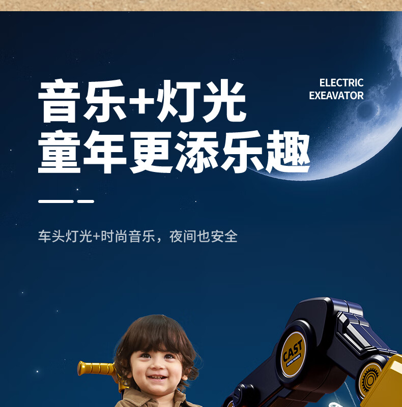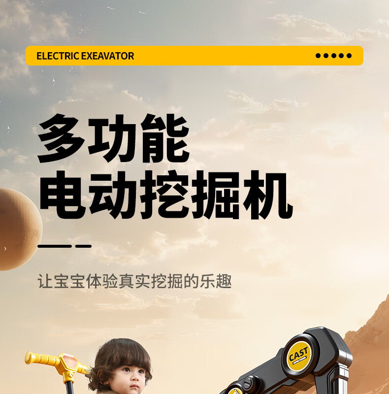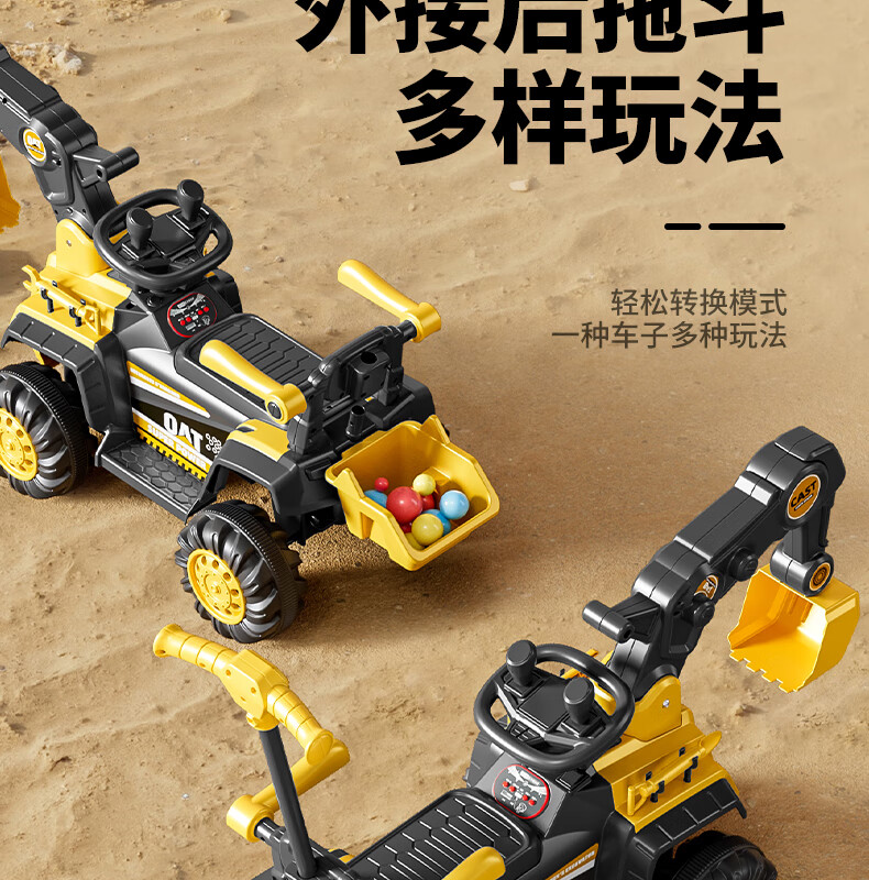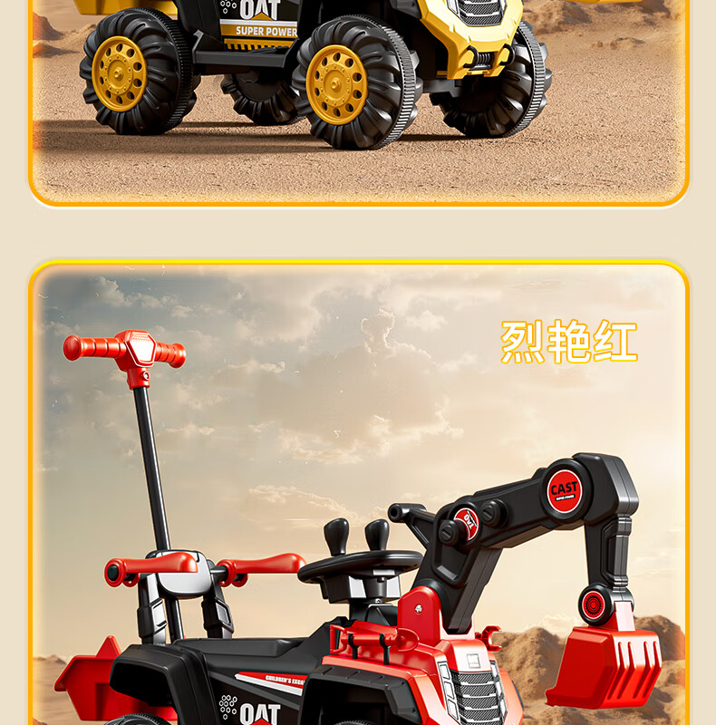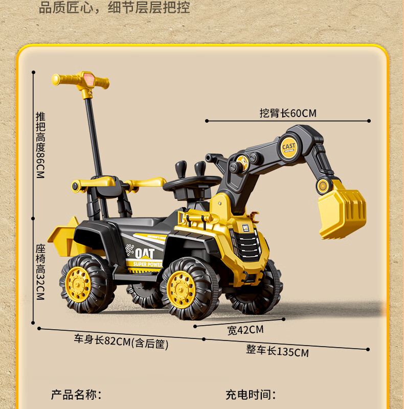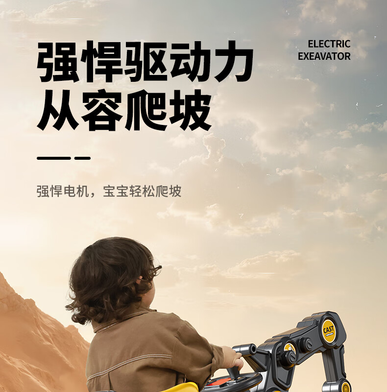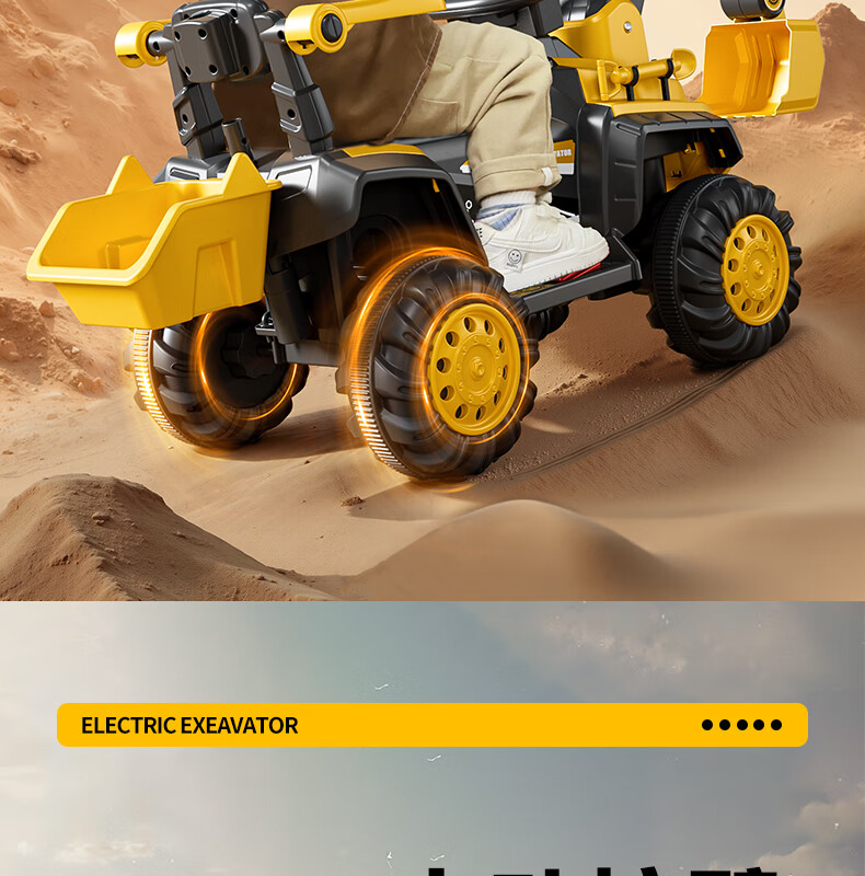 Yuezhan Kyoto children's excavator can sit on a person's remote control electric car baby excavator can ride and dig large engineering vehicle excavator yellow dual-drive remote control model electric digging arm + music + tow bucket + steering push handle + gift bag