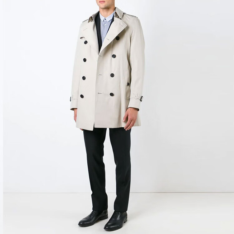 Burberry (BURBERRY) New Year's gift Burbrry solid color button mid-length windbreaker men's sisal color 50 same style for men and women
