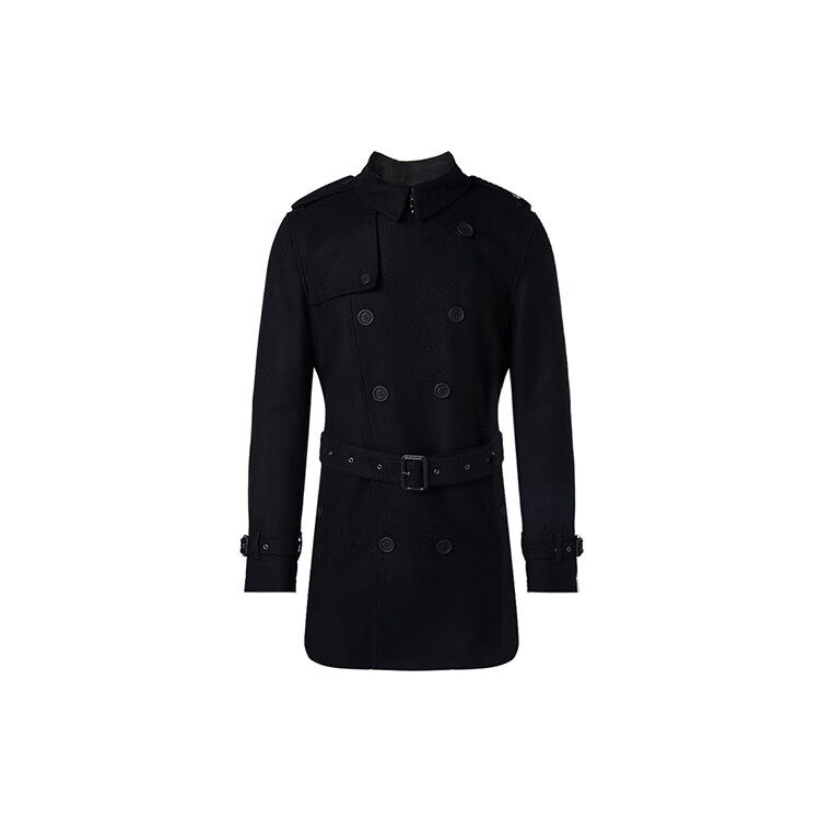 Burberry (BURBERRY) New Year's gift Burbrry wool blend belted double-breasted coat and windbreaker for men, black, black, same style for men and women 2XL