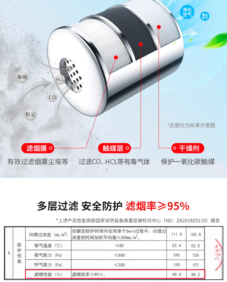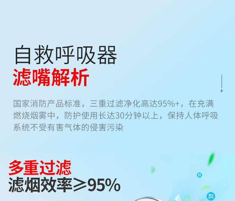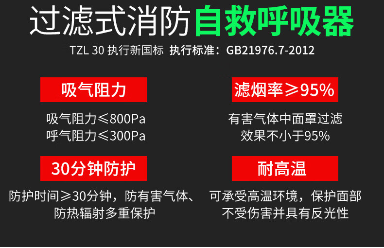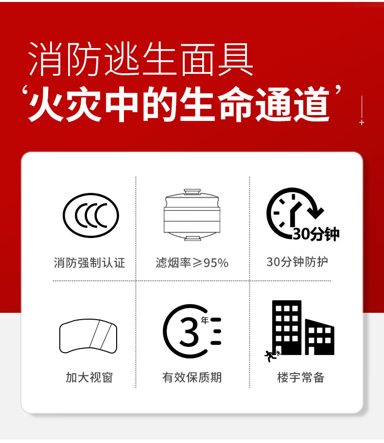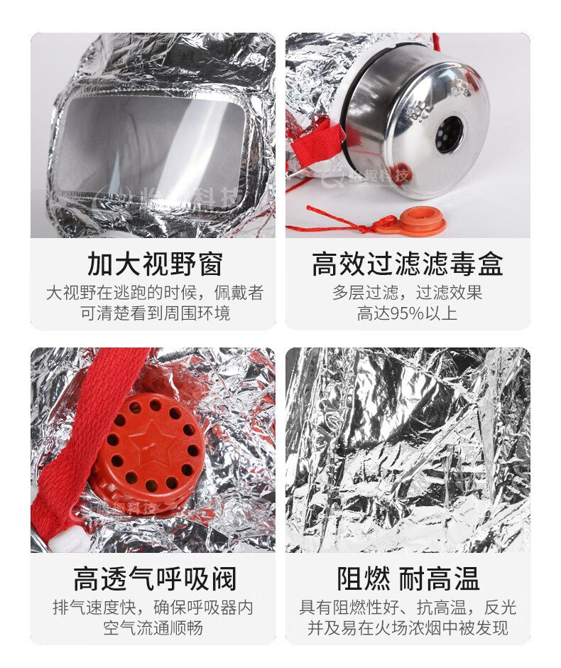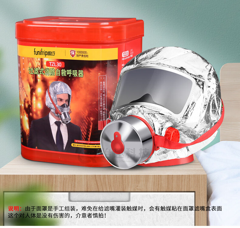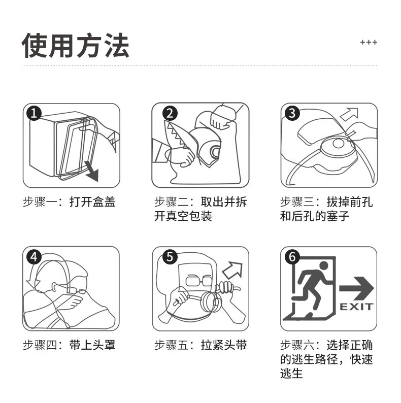 Quxing fire mask anti-smoke and anti-virus respirator safety emergency fire fire escape filter self-rescue breathing mask fire emergency kit 7-piece set