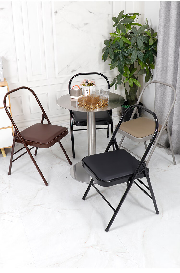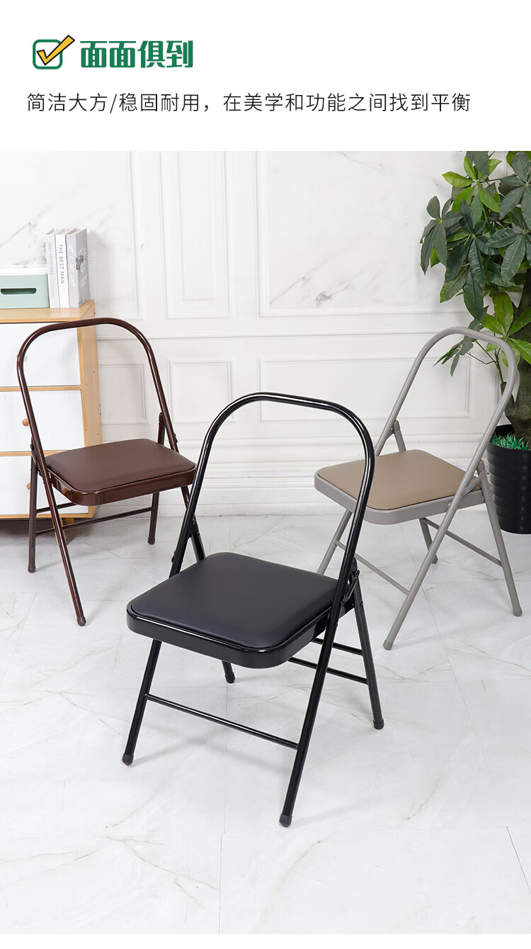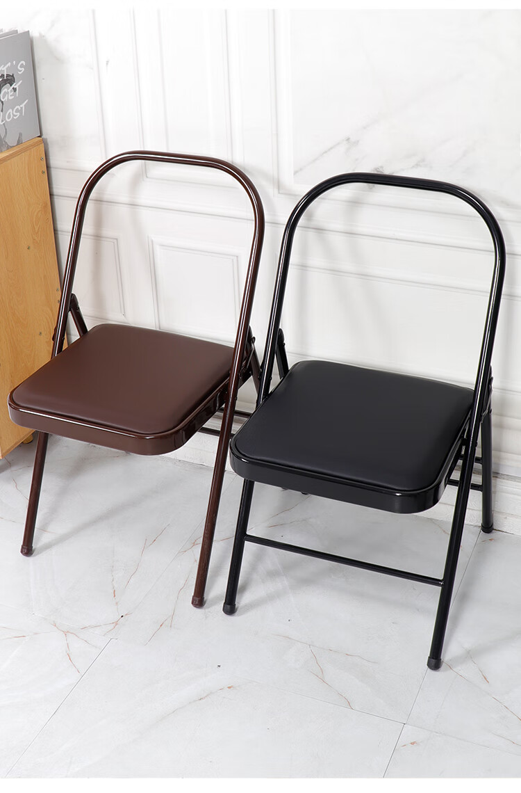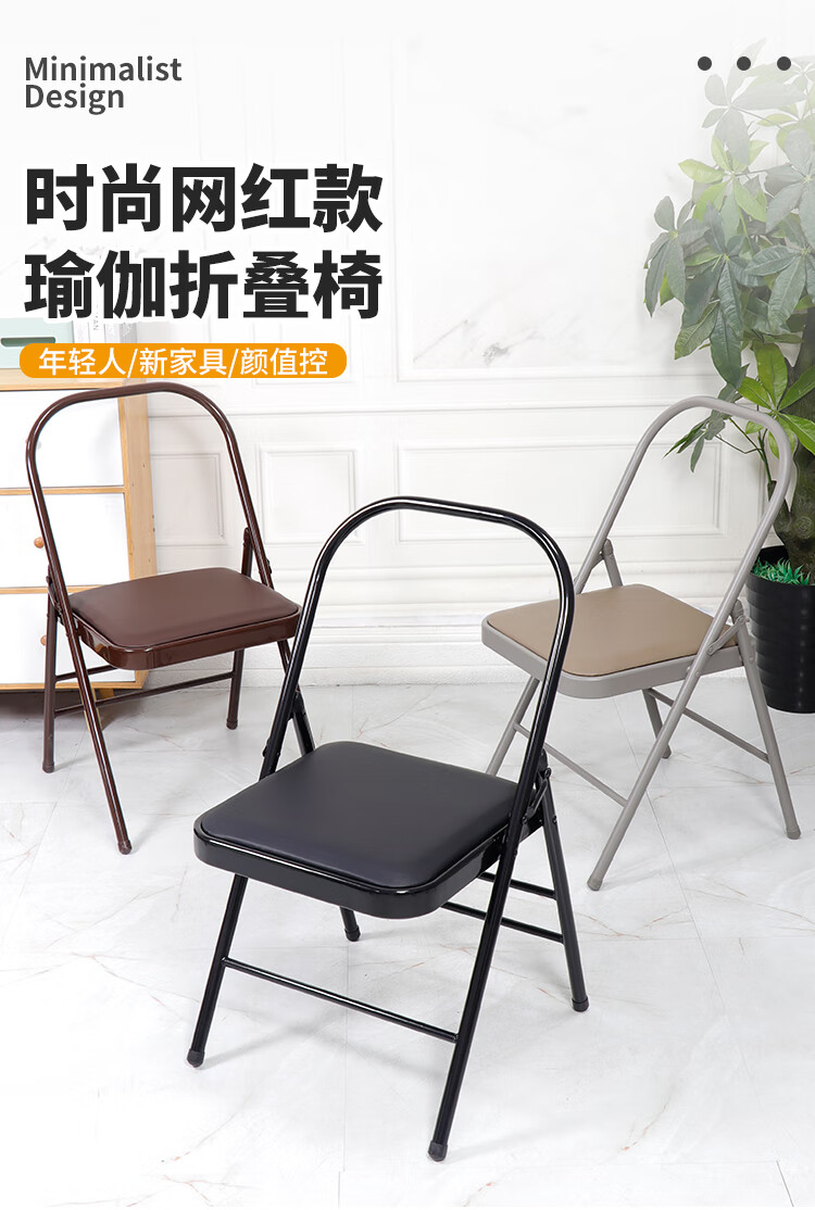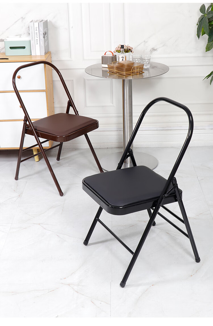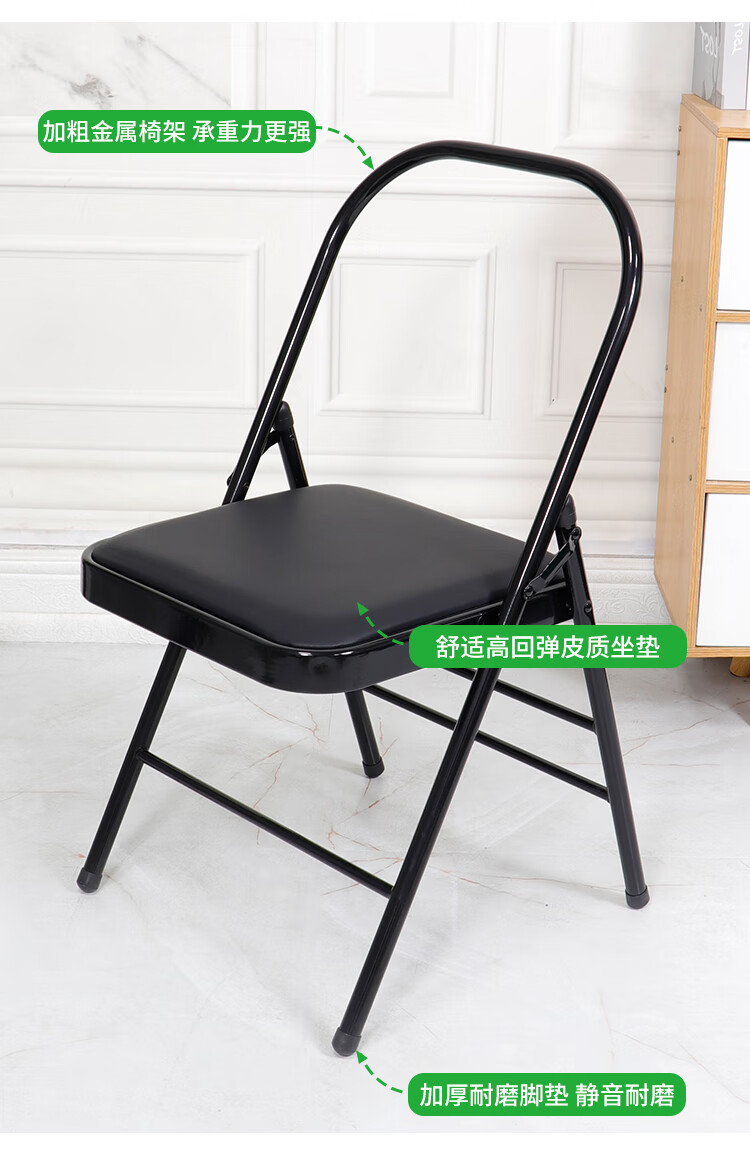 He Jiagong thickened folding chair Yoga assistive device Pilates multifunctional PU surface auxiliary folding yoga stool 22 round yoga folding chair - single beam black