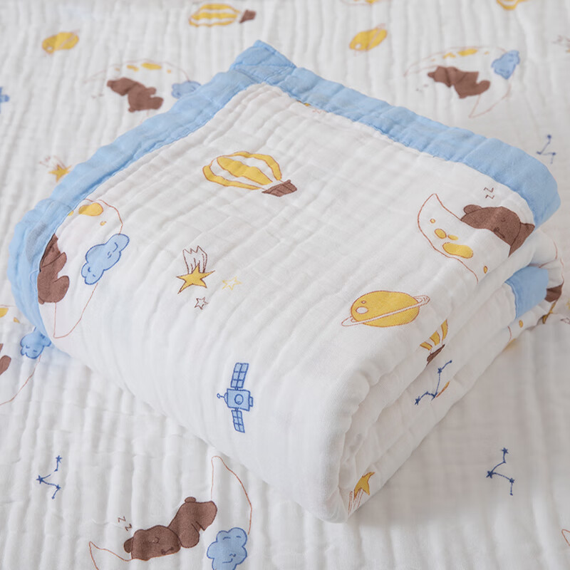 Baby outing blanket, summer gauze pure cotton towel quilt, thin summer cooling quilt, baby bath towel, stroller cover blanket, six-layer red car 120*150