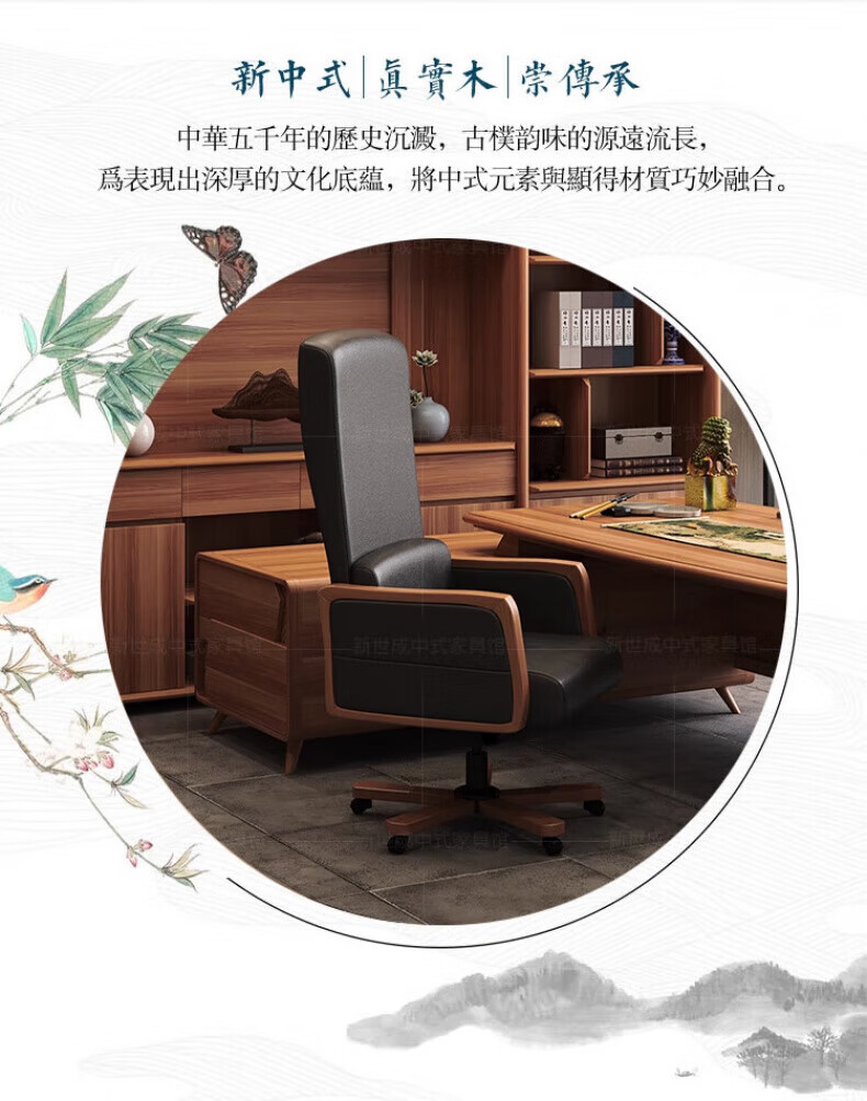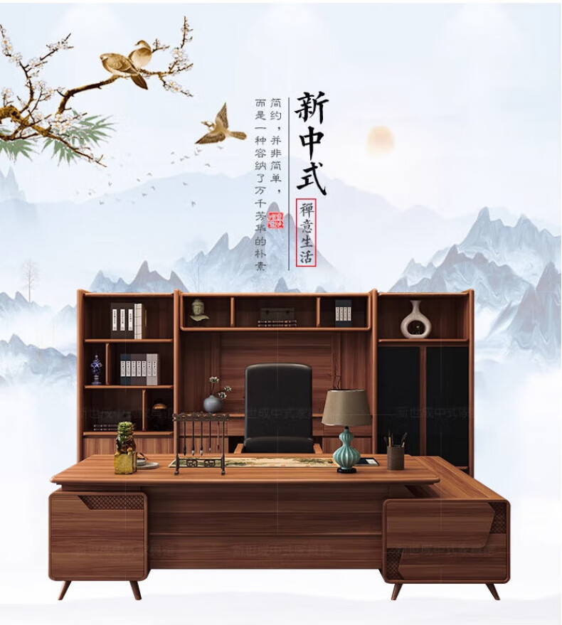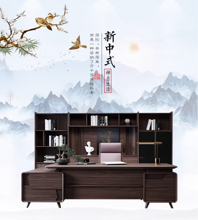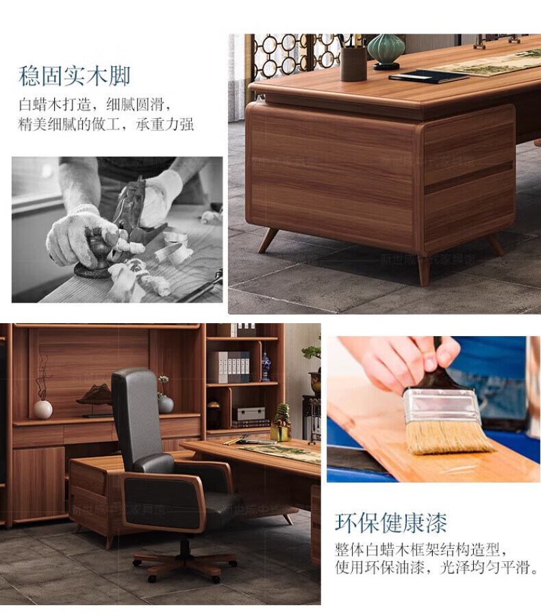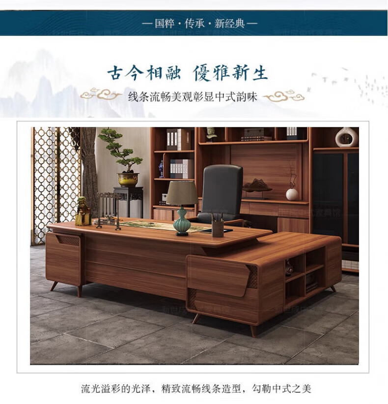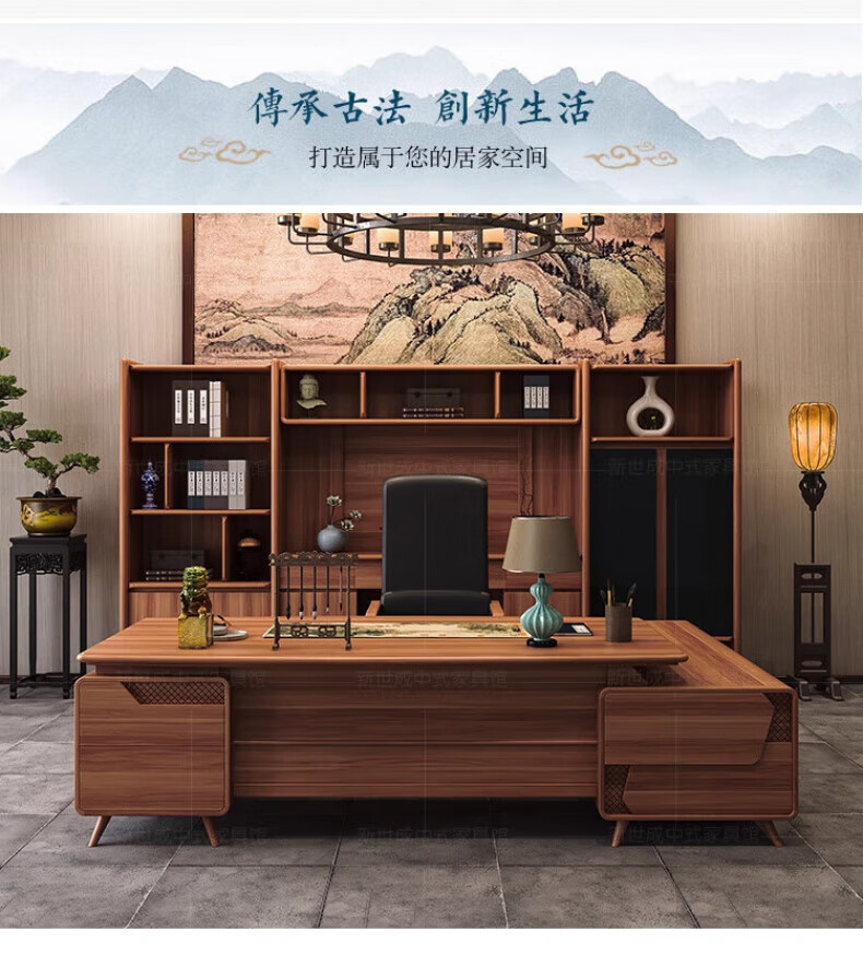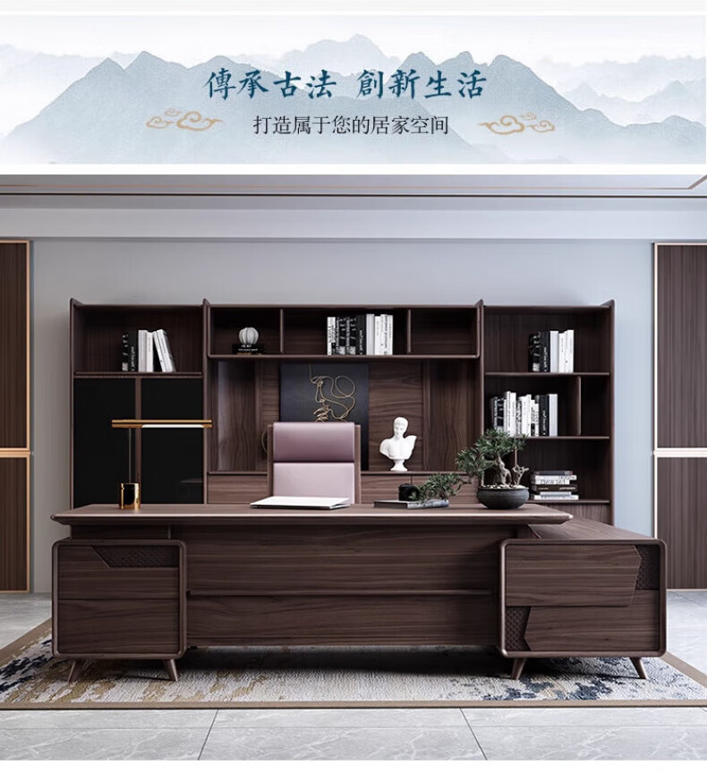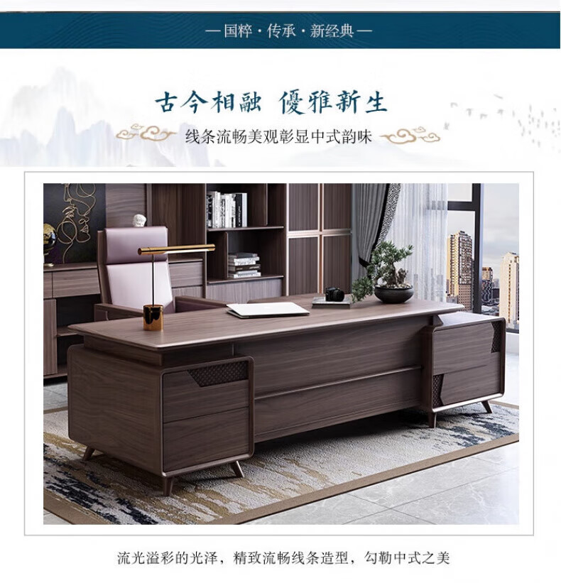 New Chinese style boss desk solid wood office desk and chair North American black walnut president desk executive desk furniture desk 2.0m desk