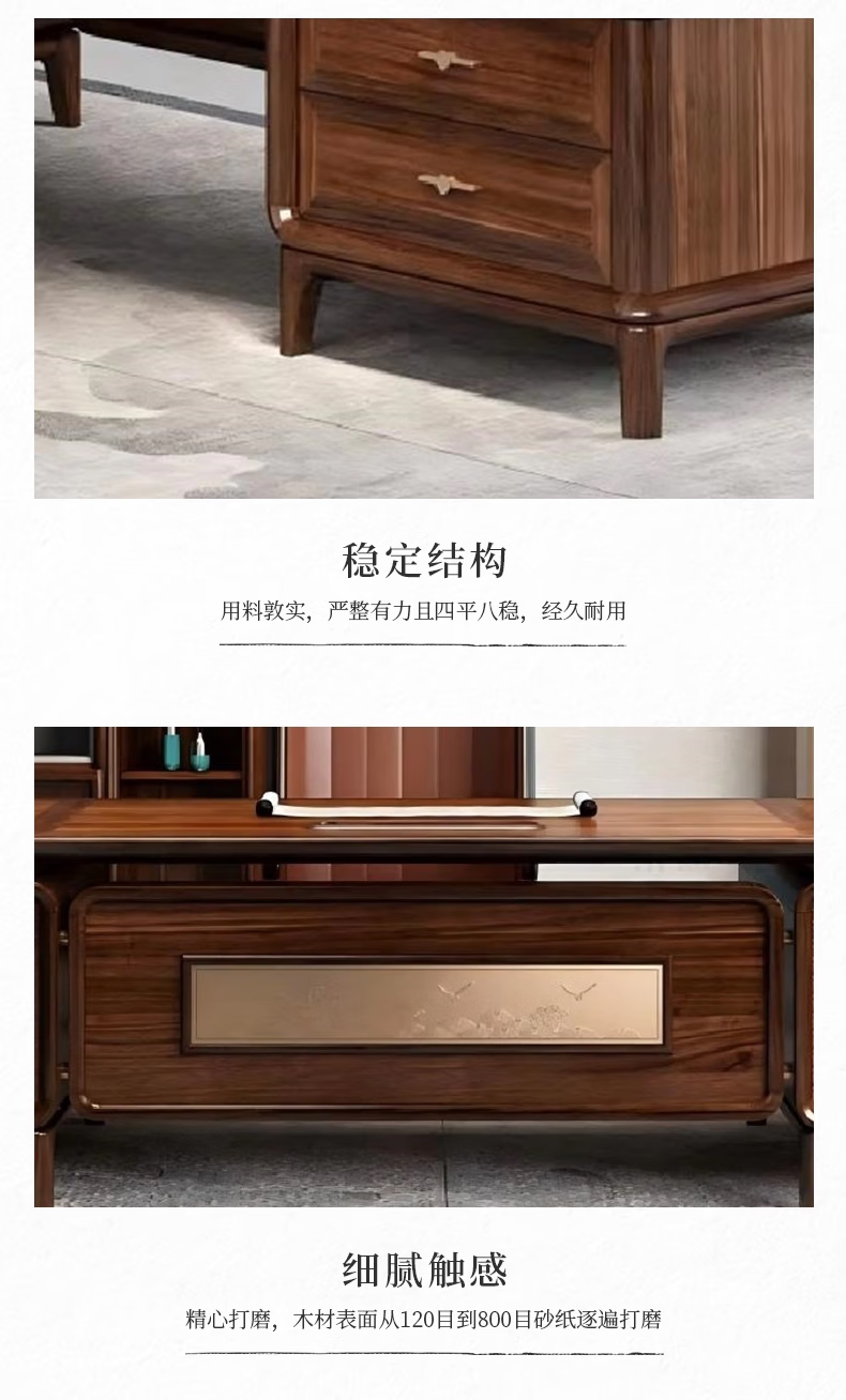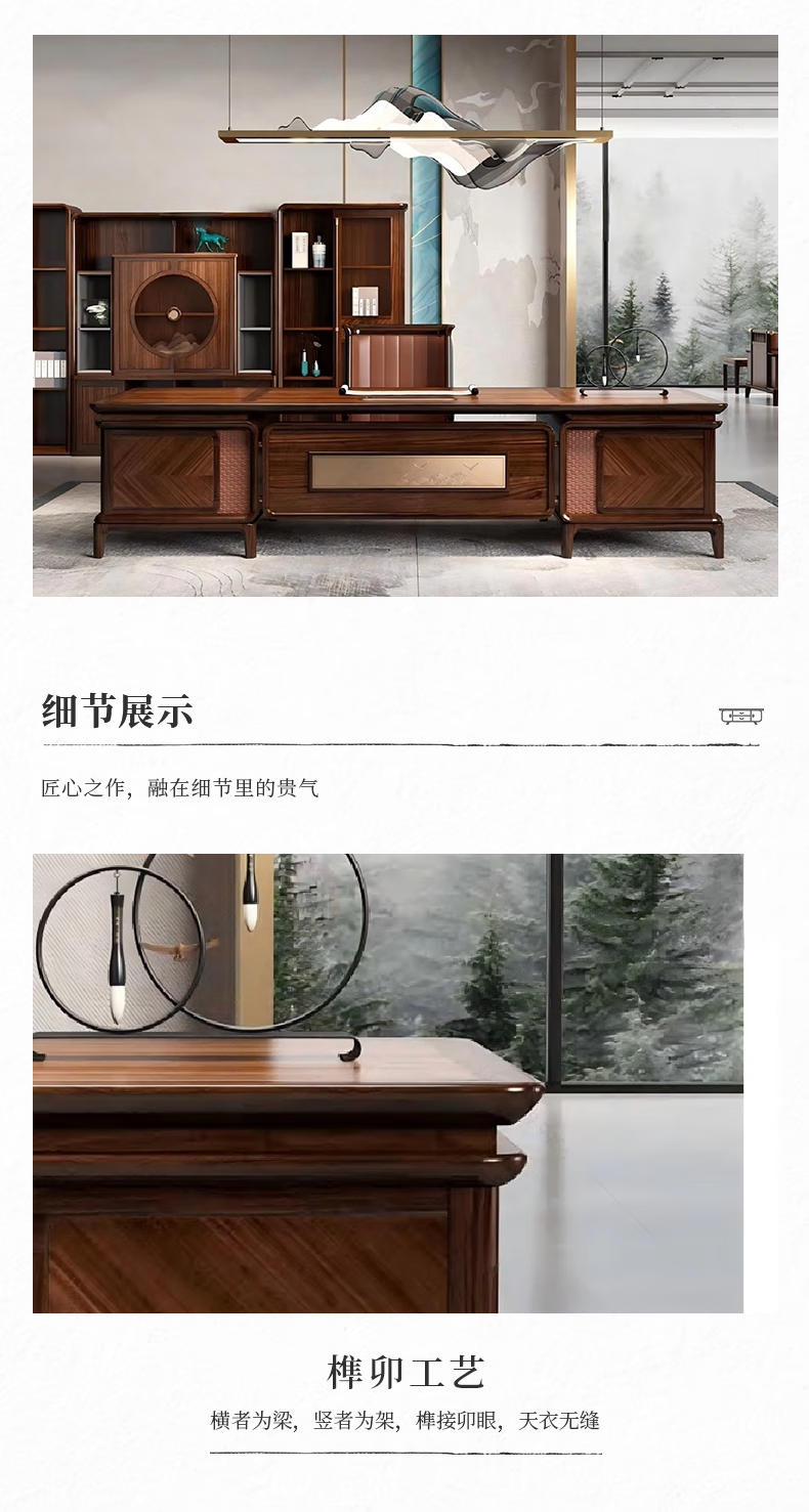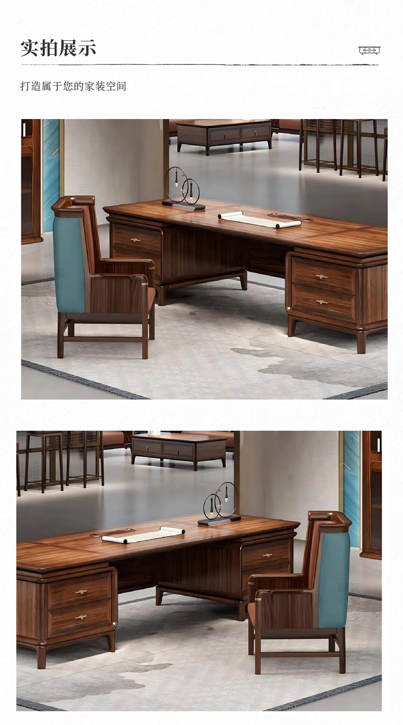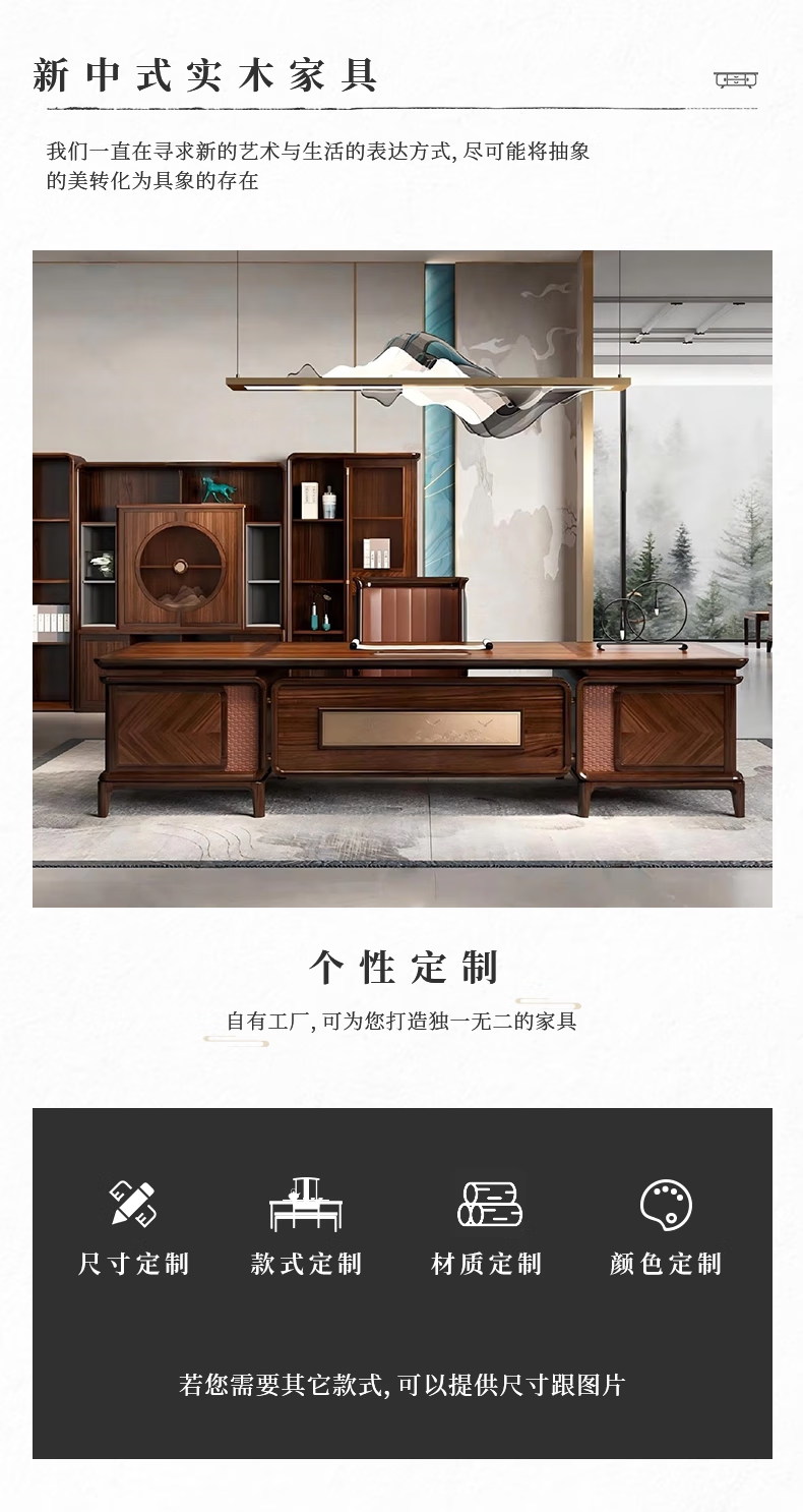 New Chinese style solid wood desk boss desk office light luxury CEO desk modern high-end executive leadership table 2.0m boss desk