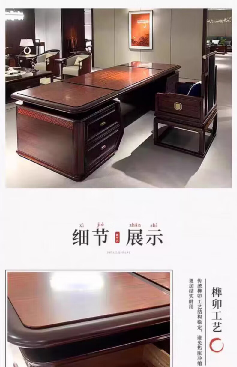 New Chinese style boss desk solid wood desk simple modern chairman desk boss desk ash wood 2.0m boss desk