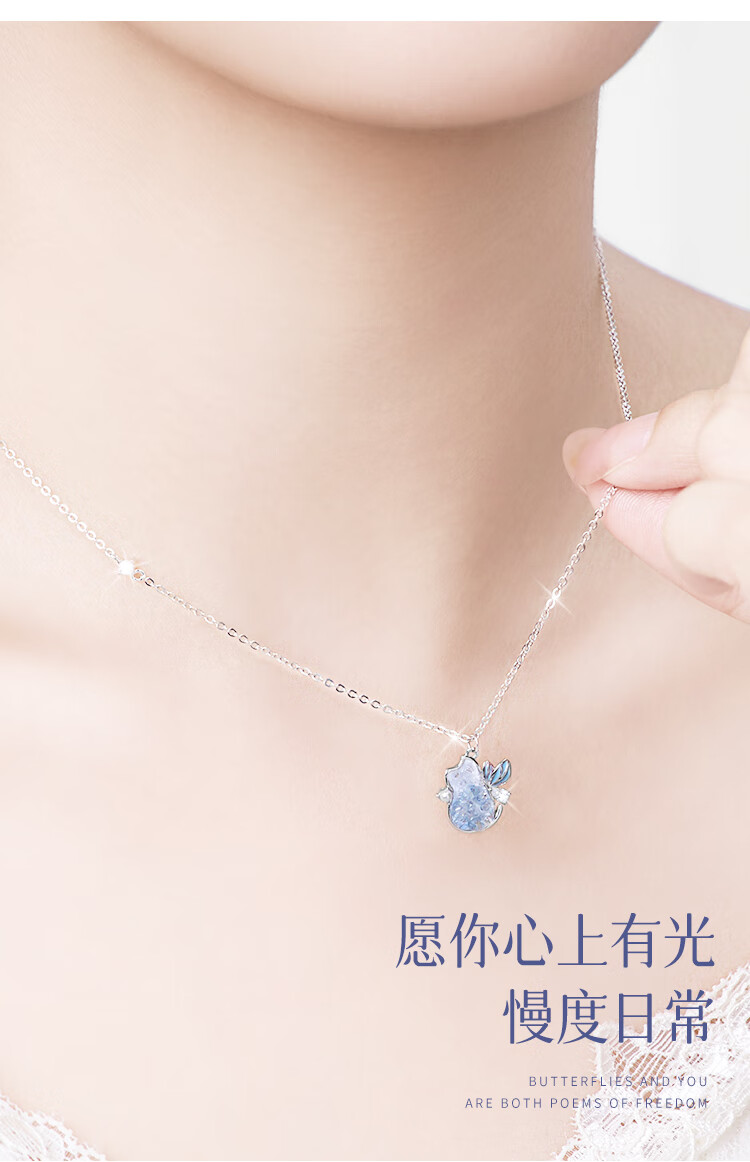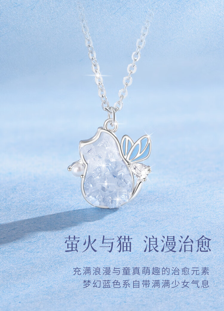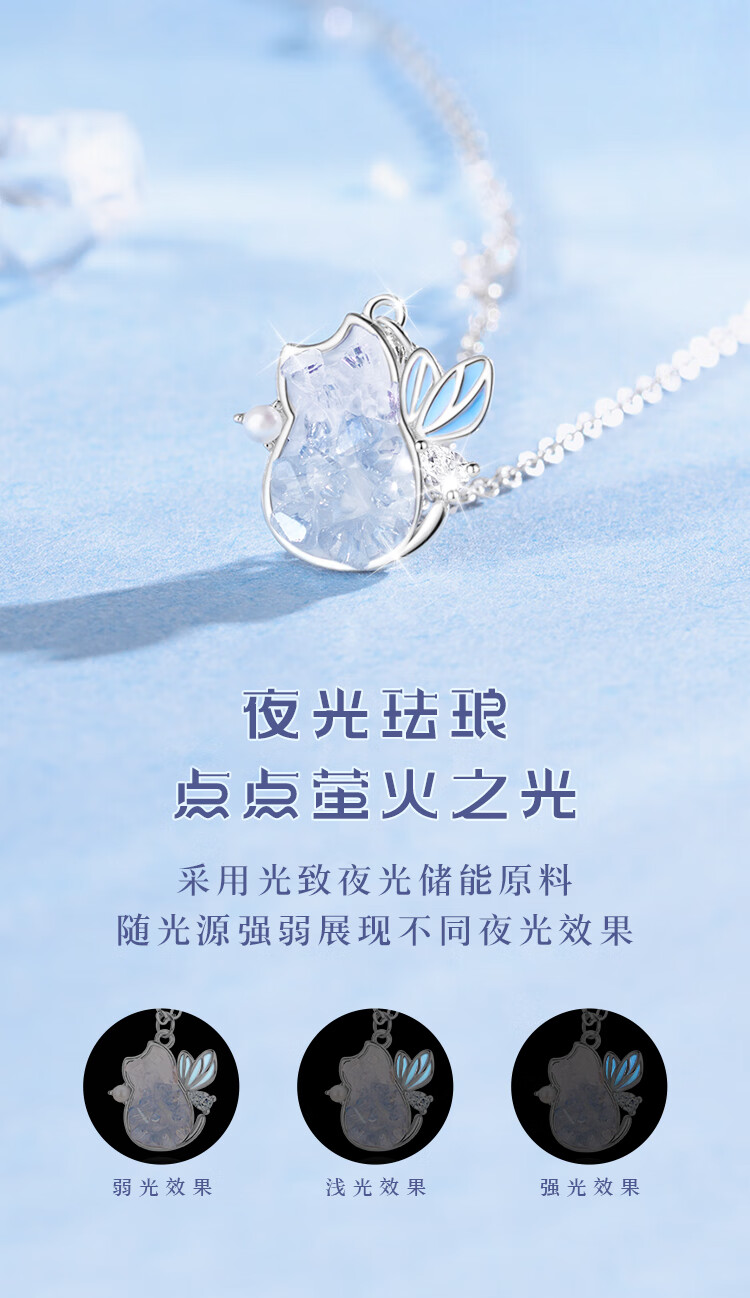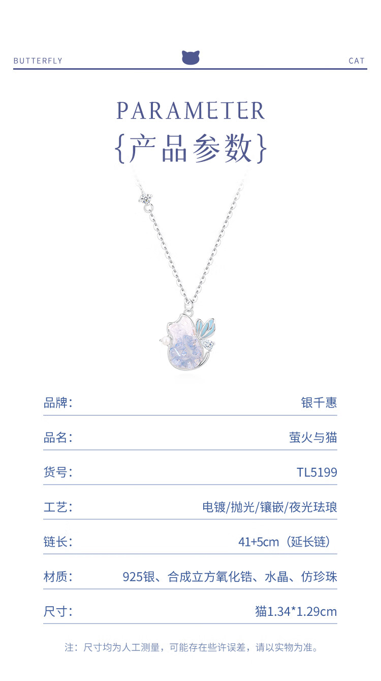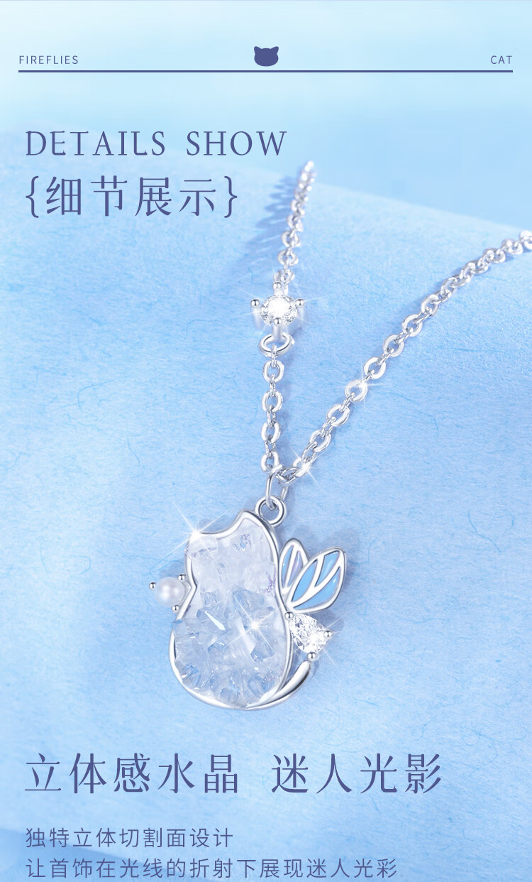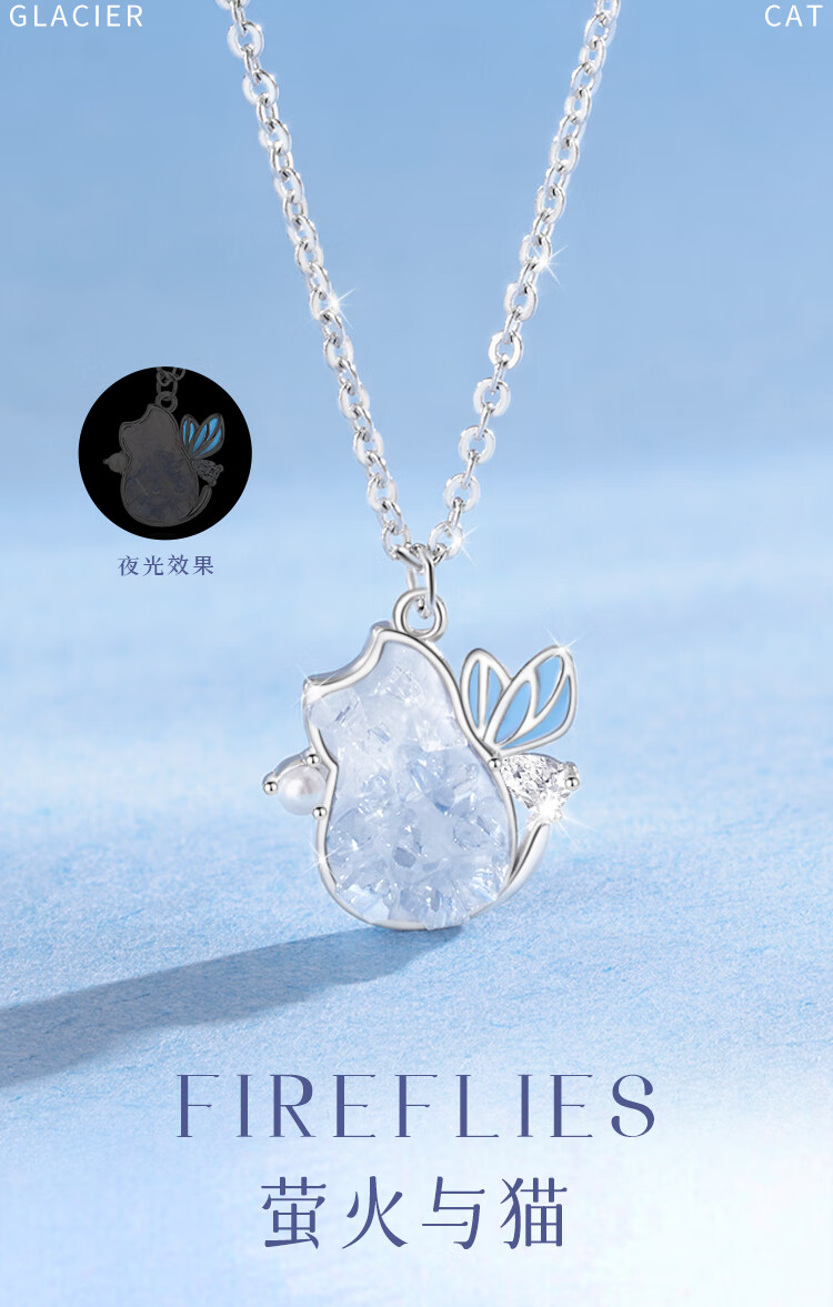 Gin Chie sterling silver crystal necklace women's cat pendant light luxury niche high-end Valentine's Day birthday gift for girlfriend Firefly and Cat Necklace (luminous)/selected crystal + birthday gift box rose gift box for wife/girl gift/with jewelry certificate