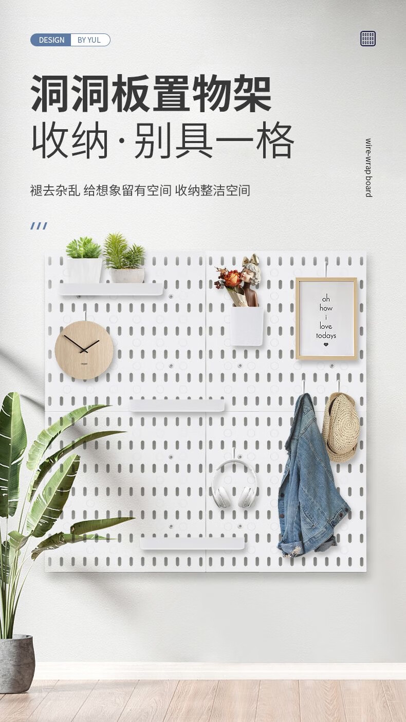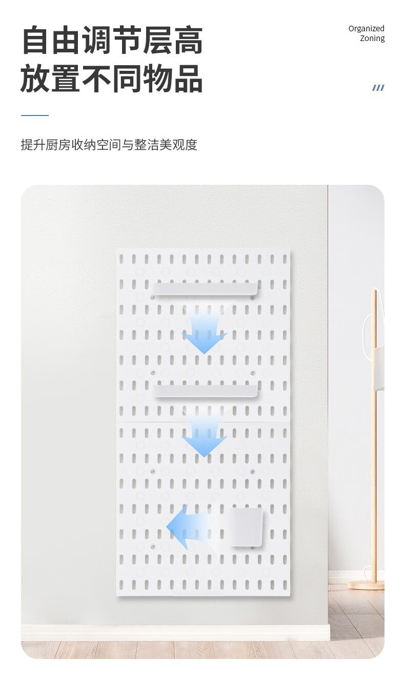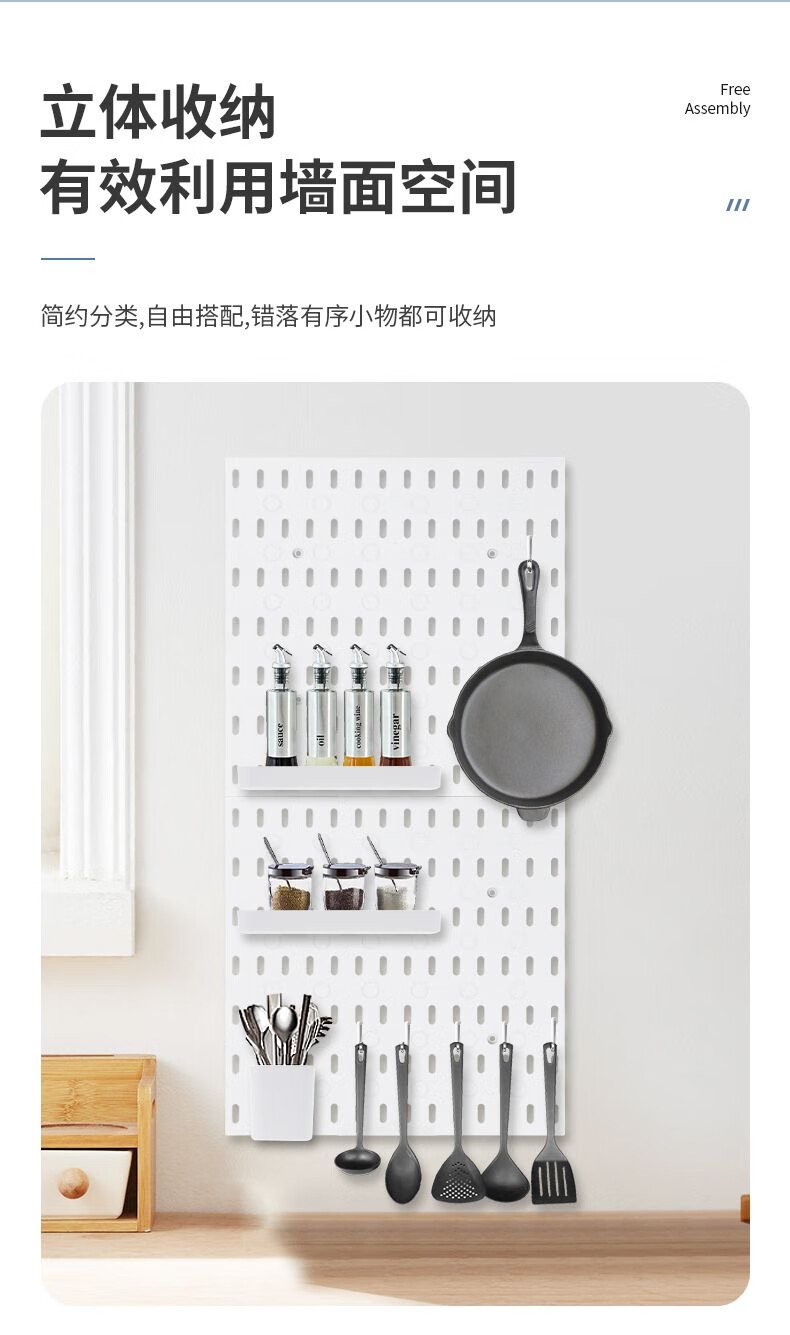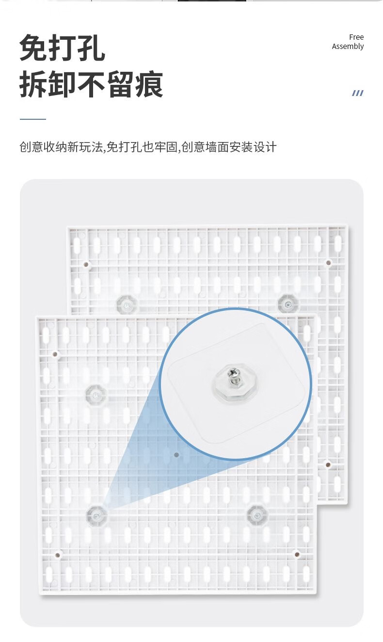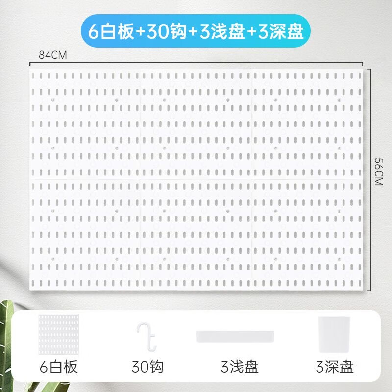 Perforated board storage rack without punching the same style wall hanging kitchen pendant study desk storage artifact bedroom neat package 2 boards + 20 hooks + 2 shallow plates + 2 deep plates 2 layers 56*28*1.5cm