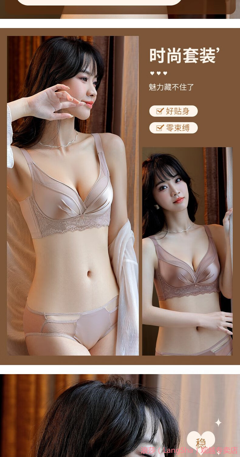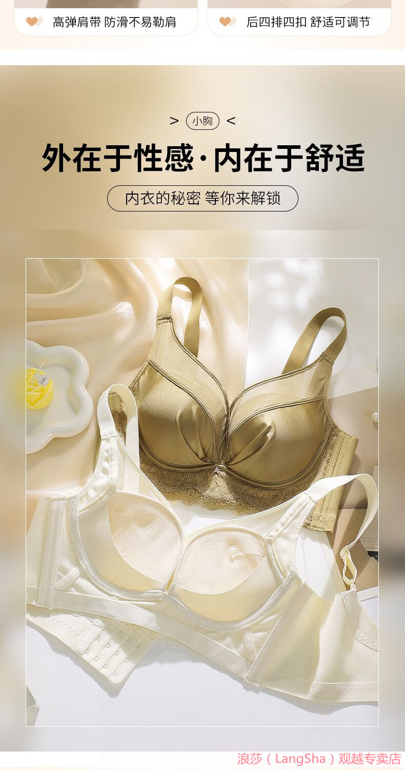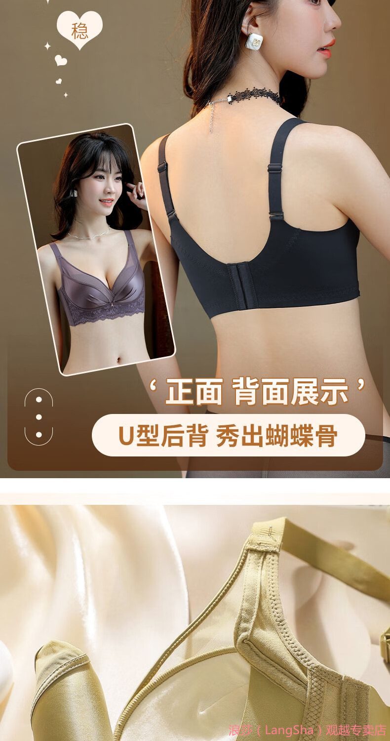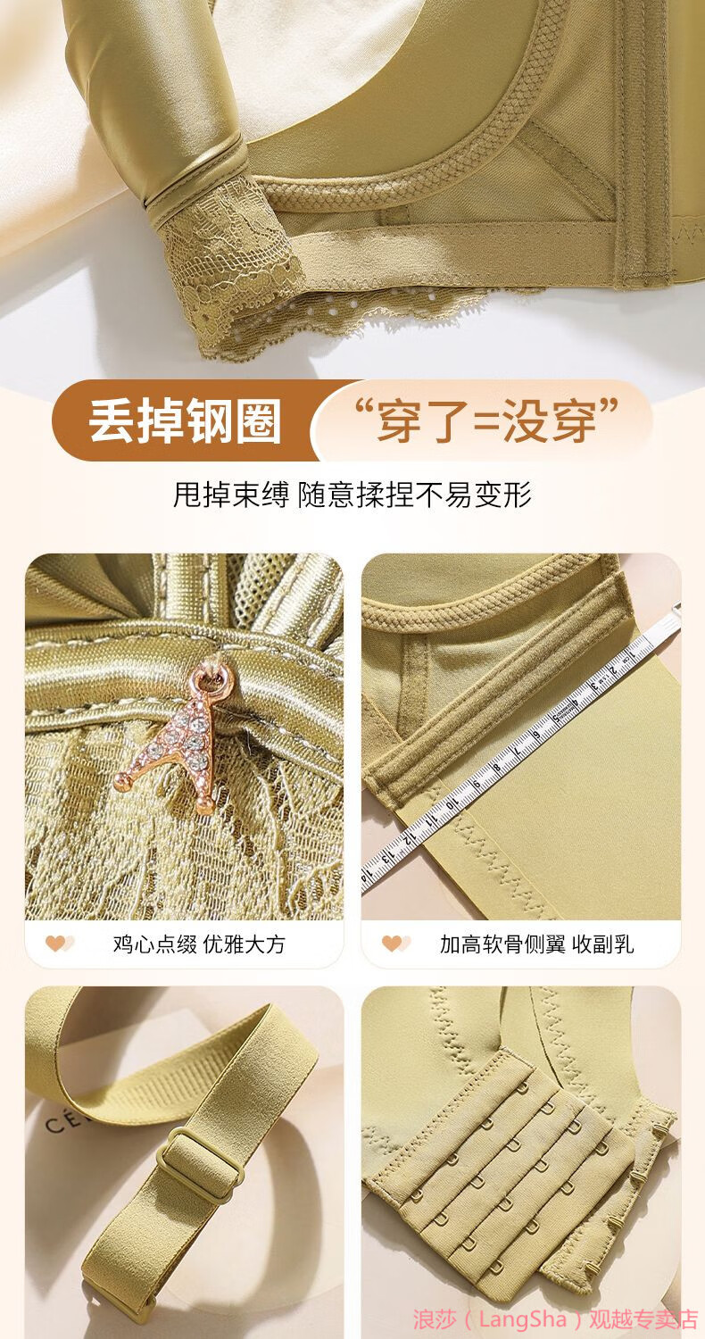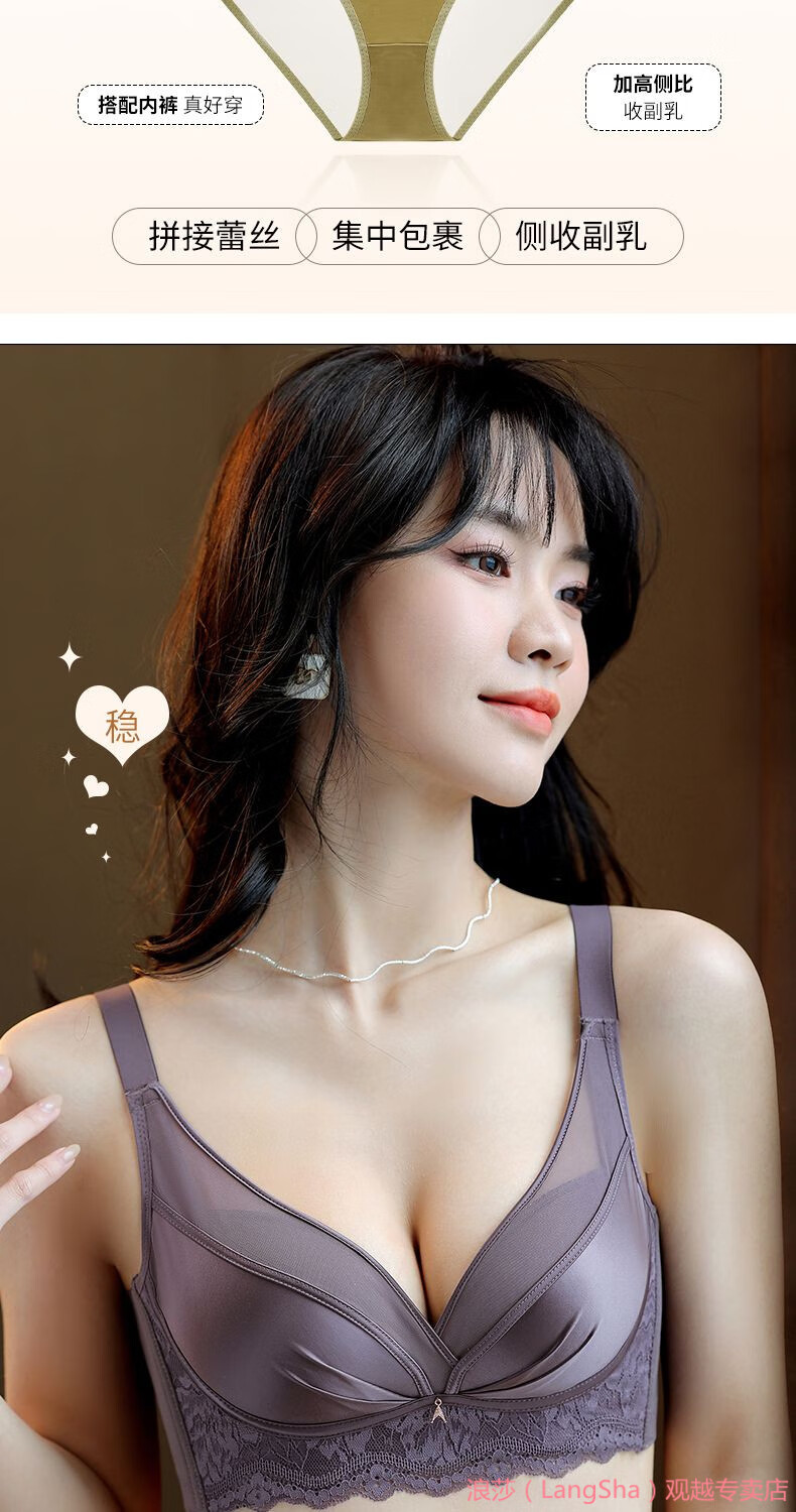 LangSha 2025 New Year Festive Anchor Red Wedding Zodiac Year Sexy Wire-free Side Breast Control Underwear Push-up Bra Anchor Red + Big Red (2 pieces) M 34/75AB (Thin at the top and thick at the bottom 2.5c)