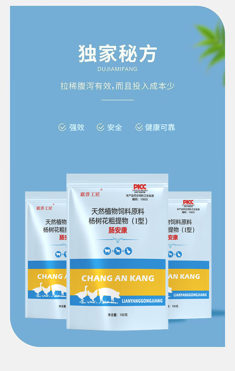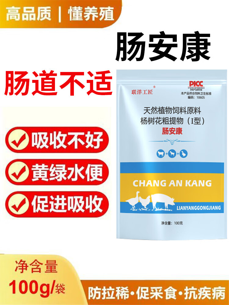 Lianyang Artisan Poultry Intestinal Health Intestinal Health Genuine Chicken, Duck, Goose, Pigeon, Quail, Pig, Beef and Sheep Yellow White Green Water Informed Feed Additive Intestinal Health Intestinal Health 100g/bag*1 bag
