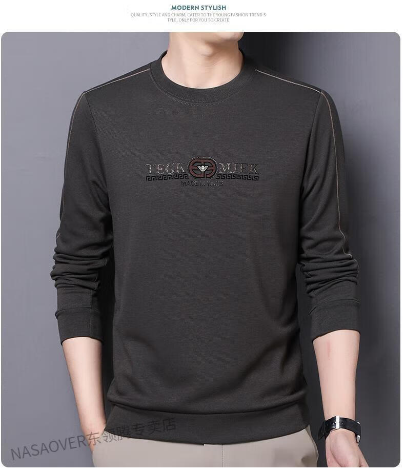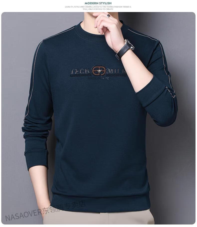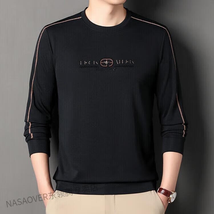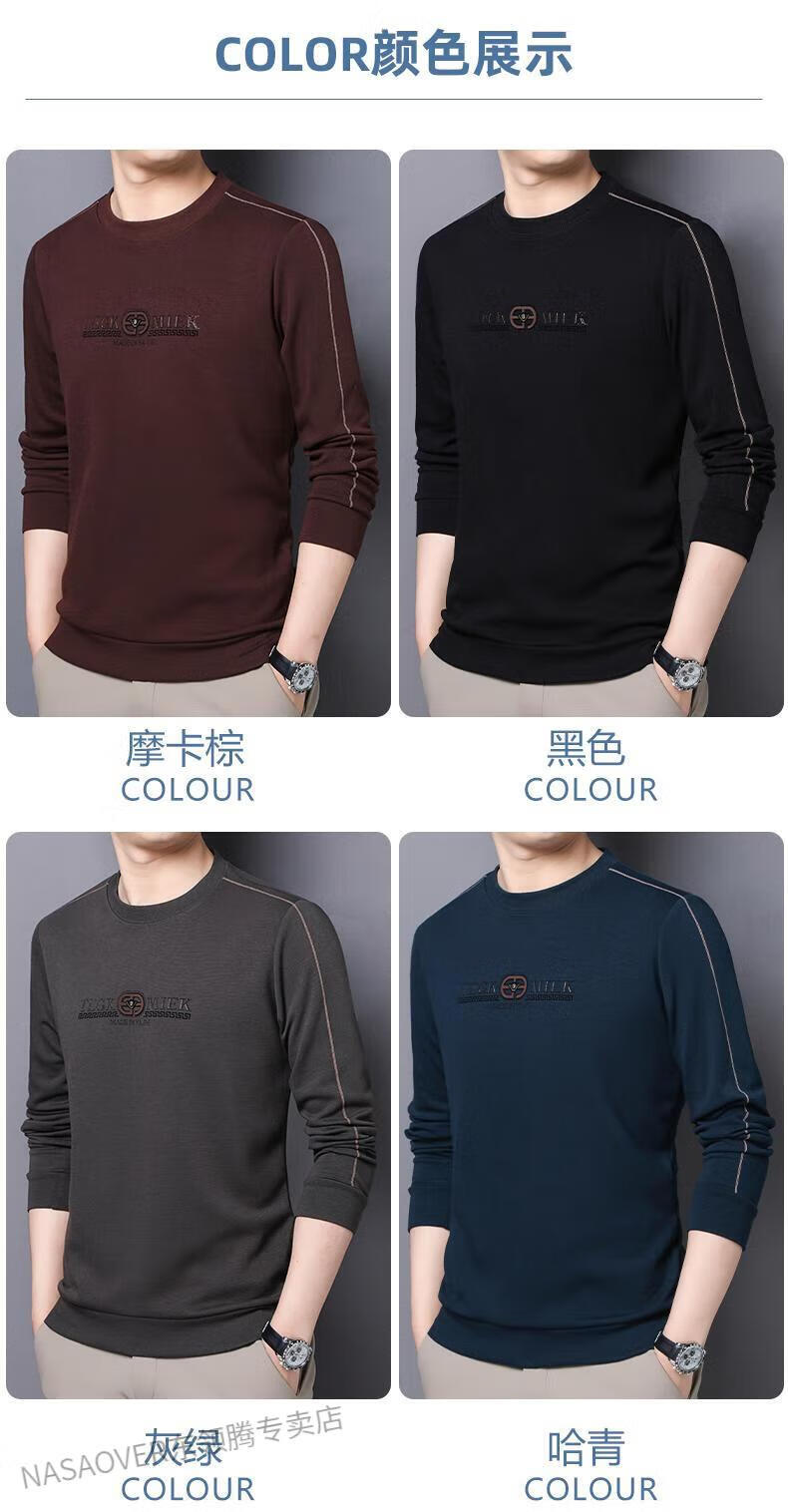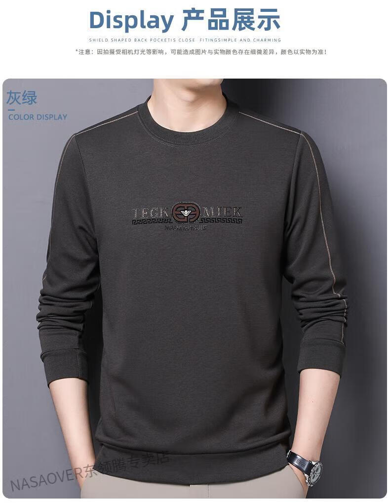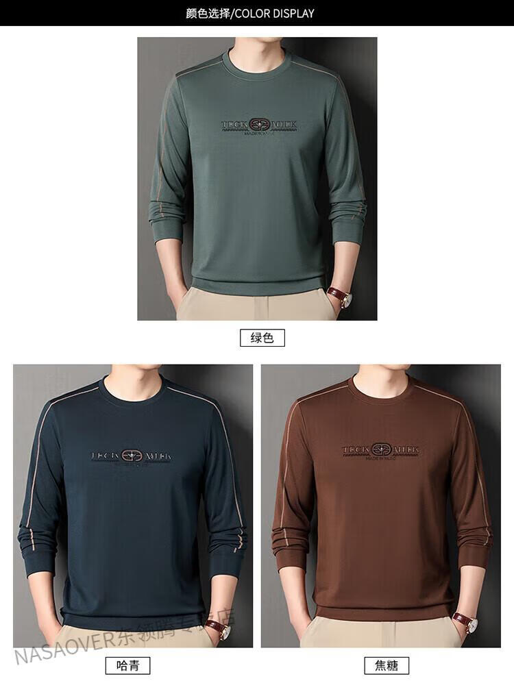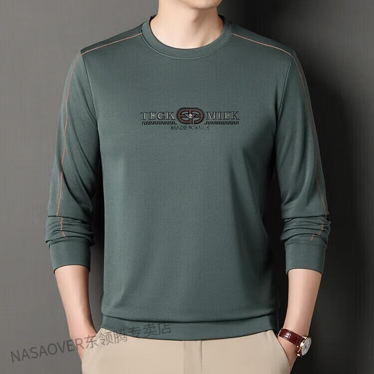 NASAOVER light luxury round neck sweatshirt long-sleeved T-shirt men's spring and autumn business elastic anti-wrinkle breathable pullover top bottoming shirt green winter plus velvet (gift box) XL (recommended 135-150Jin Jin equals 0.5 kg)